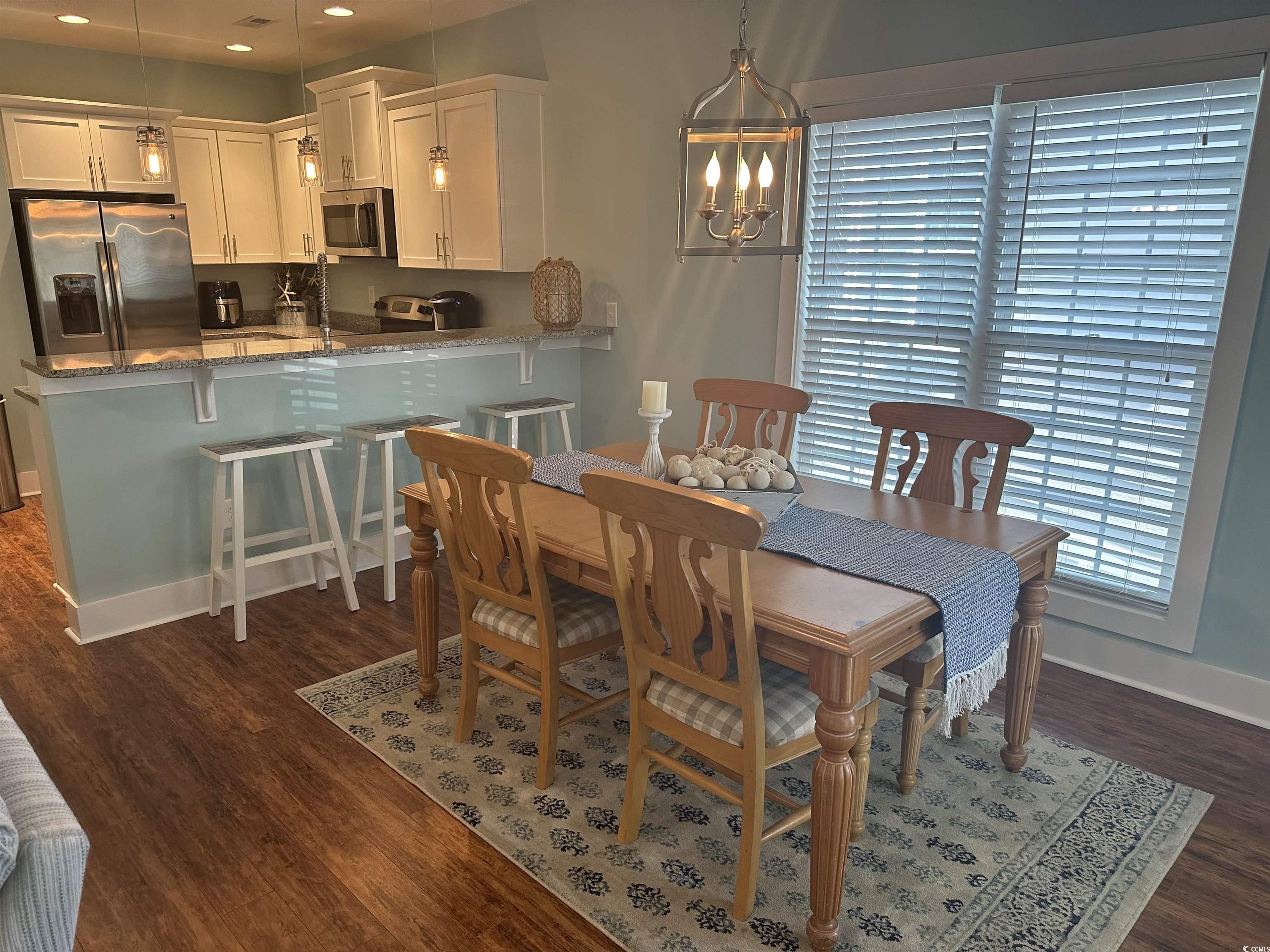 Live the Inlet lifestyle! Enjoy marsh breezes, walk or bike to world-famous restaurants, or kayak just across the street. This beautifully decorated and well-maintained coastal home features 9’ ceilings, open living and dining areas, granite countertops, stainless steel appliances, shaker cabinets, and upgraded wood laminate flooring throughout. The primary suite offers a large walk-in closet and custom tile shower with dual shower heads. The ground floor includes two spacious bedrooms with oversized walk-in closets, a full bath with subway tile and soaking tub, and a laundry room with cabinets and granite folding counter. Extra storage room near/under stairway. Relax on the large balcony or under the shade of a live oak. Carport area with covered parking and ample storage for beach gear. Many thoughtful upgrades, and meticulous care make this home the perfect coastal retreat—just minutes from Huntington Beach State Park and Garden City Beaches.