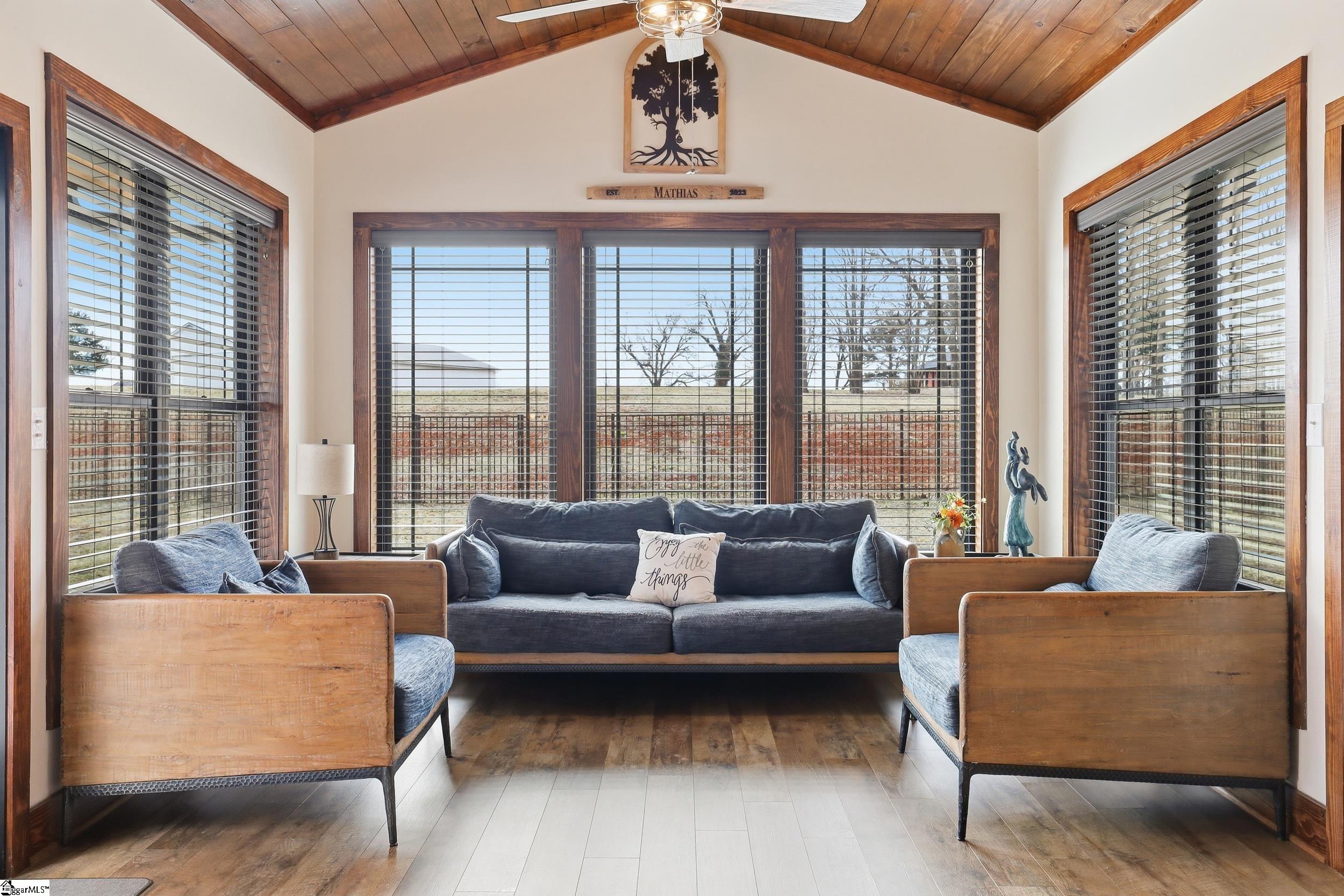 ~Freedom and luxury live here~ Built in 2023 on 1.6 acres just five minutes from Downtown Easley, this home offers refined finishes and the kind of space that lets life flow. Walk inside and the main living area opens up in a way that feels both bright and stunning. Twenty four foot ceilings rise above the living, kitchen, and dining spaces, while leathered granite countertops, a gas range, solid wood barn doors, and a wood accent wall add warmth and texture. The primary suite is spacious and thoughtfully arranged, featuring a tile shower and direct access to the laundry room, with an additional entry from the main living area. It is one of those simple design choices that makes daily routines easier. A sunroom and generous covered outdoor living areas extend the home beyond its walls, overlooking a fenced backyard with plenty of room for a pool, a detached structure, or open green space. The 1,000 square foot shop carries the same level of finish and intention, with soaring ceilings, Professionally coated garage floor by Atlas Coatings, three garage doors, and a half bath. It is a space designed to be used. Heavy insulation, tankless hot water, custom Pella Impervia windows, whole home internet wiring, and energy efficient LED lighting support comfort and efficiency without drawing attention to themselves. All of this sits just three miles from Downtown Easley, where nearly 40 restaurants, local shops, seasonal festivals, and the 8.5 mile Doodle Trail create a vibrant small town center.