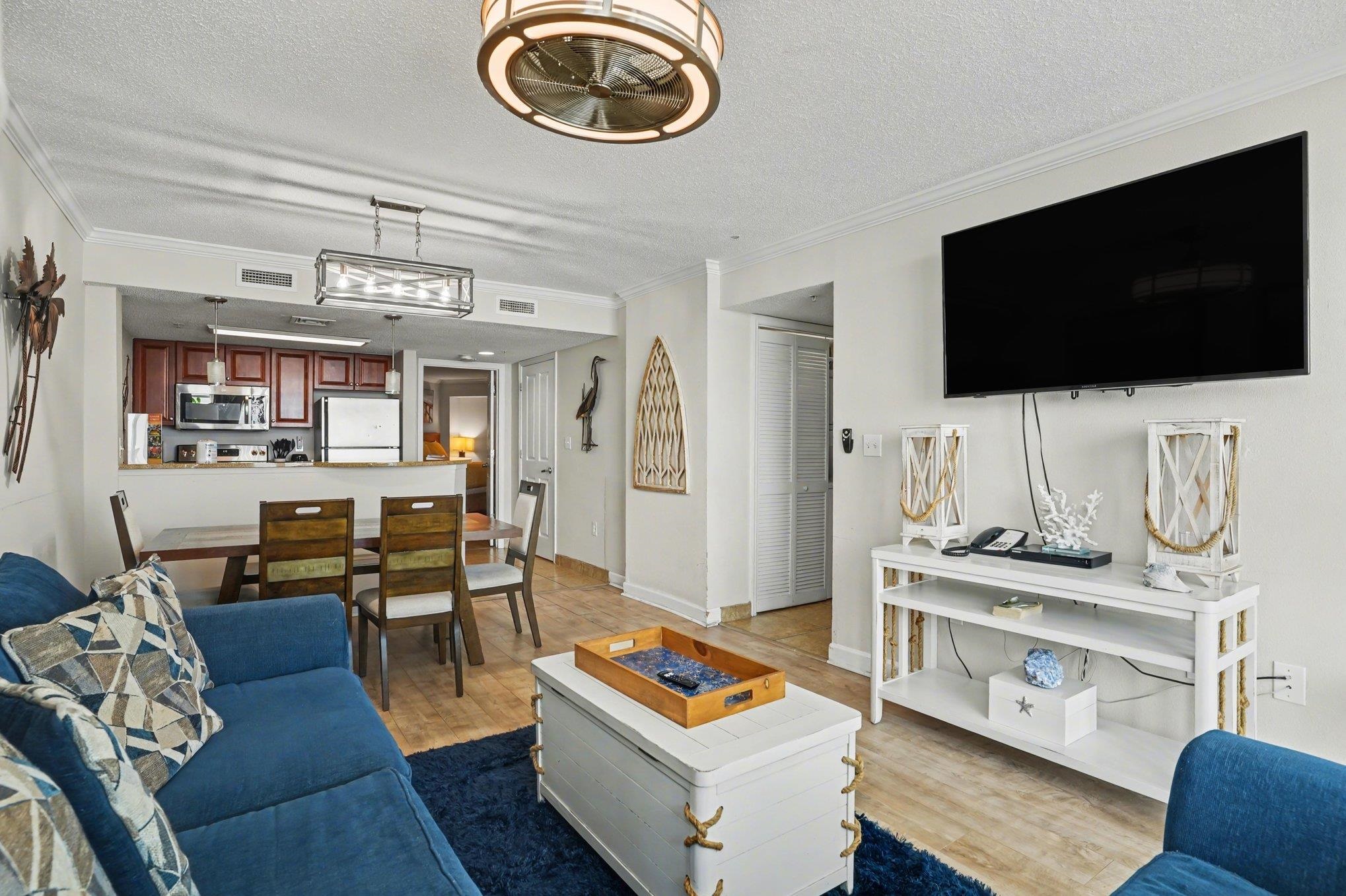 Wake up to the sound of the waves and step into your own slice of paradise! This direct oceanfront, 10th-floor condo at the highly sought-after Dunes Village Resort is perfectly positioned along the prestigious Golden Mile—one of Myrtle Beach’s most desirable stretches of coastline. Enjoy breathtaking south-facing views of the Atlantic Ocean and stunning residential shoreline… the kind of view that never gets old. This beautifully updated 2-bedroom, 2-bath condo is completely turnkey and ready to impress. Freshly renovated with all-new furnishings, the open-concept layout is bright, spacious, and designed for easy coastal living. The kitchen shines with granite countertops, stainless steel appliances, and rich wood cabinetry, while the dining area comfortably seats six—perfect for gathering after a day at the beach. The living room is all about comfort and views, offering plenty of seating (including a queen sleeper and twin sleeper) and direct access to your private oceanfront balcony—your front-row seat to sunrises, sea breezes, and endless blue water. The primary suite is a true retreat with a king bed, TV, and private bath featuring a relaxing jetted tub. The second bedroom offers two queen beds and its own TV, making this condo ideal for hosting up to nine guests. Plus, enjoy the convenience of an in-unit washer and dryer. And the amenities? Absolutely next level. Dunes Village Resort is known as one of the top family resorts in the country for a reason—featuring two indoor water parks, lazy rivers, water slides, hot tubs, splash zones, plus outdoor pools, pickleball, tennis, beach volleyball, a fitness center, on-site spa, restaurants, and even a Starbucks coffee shop. While everyone else plays, you can unwind with a massage or sneak in a workout—it’s all right here. Located just minutes from favorites like Broadway at the Beach, SkyWheel Myrtle Beach, Ripley’s Aquarium, and The Carolina Opry, you’ll have the best of both worlds—peaceful beachfront living with easy access to top attractions. Whether you’re looking for a dream vacation getaway, a high-performing investment, or both, this condo checks every box. With strong rental potential and year-round demand, opportunities like this don’t come around often. Oceanfront views, unbeatable amenities, and a prime location—this is Myrtle Beach living at its finest.