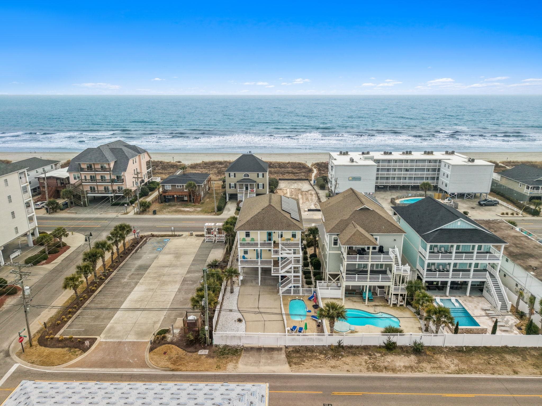 Experience coastal living at it finest 5207 N Ocean Blvd, where luxury, comfort, and breathtaking ocean and channel views come together in perfect harmony. This exceptional second row, meticulously maintained home offers the ultimate coastal lifestyle in Cherry Grove. With beach access directly across the street, you’re just steps away from sandy shores and endless seaside enjoyment. Designed with a reverse floor plan to maximize the views, the second level showcases an open-concept living area filled with natural light and coastal charm. The expansive kitchen is a showstopper and perfect for entertaining, featuring a large island, granite countertops, gas range, stainless steel appliances, pantry, craftsman trim, crown molding, and tile flooring throughout the main living area. Custom window treatments add a refined touch, while the oversized laundry room provides abundant storage. A guest bedroom with full bath is also conveniently located on this level. The first level offers a private and spacious primary suite with direct access to the front deck, perfect for enjoying peaceful ocean views each morning. The suite includes a large custom walk-in closet and a luxurious ensuite bath with double vanities and an oversized tiled walk-in shower. Three additional guest bedrooms and two full baths provide comfortable accommodations for family and visitors. Outdoor living truly shines with two front decks and two rear decks offering views of both the ocean and channel. Enjoy your own private pool with heater when needed, outdoor shower, and generous entertaining space, Perfect for grilling, relaxing, and soaking in stunning coastal sunsets with family and friends. Additional highlights include solar panels for enhanced energy efficiency and long-term savings. An elevator services all levels for added convenience, while the ground level includes garage, a dedicated storage room for all your beach and boating essentials, and plenty of parking. Located just a short drive from dining, shopping, and entertainment options, with a public boat launch just around the corner, this home offers the best of beach and boating lifestyles. 5207 N Ocean Blvd is more than a home: it’s a coastal retreat. Don’t miss this rare opportunity to own a slice of paradise in Cherry Grove where every day feels like a vacation.