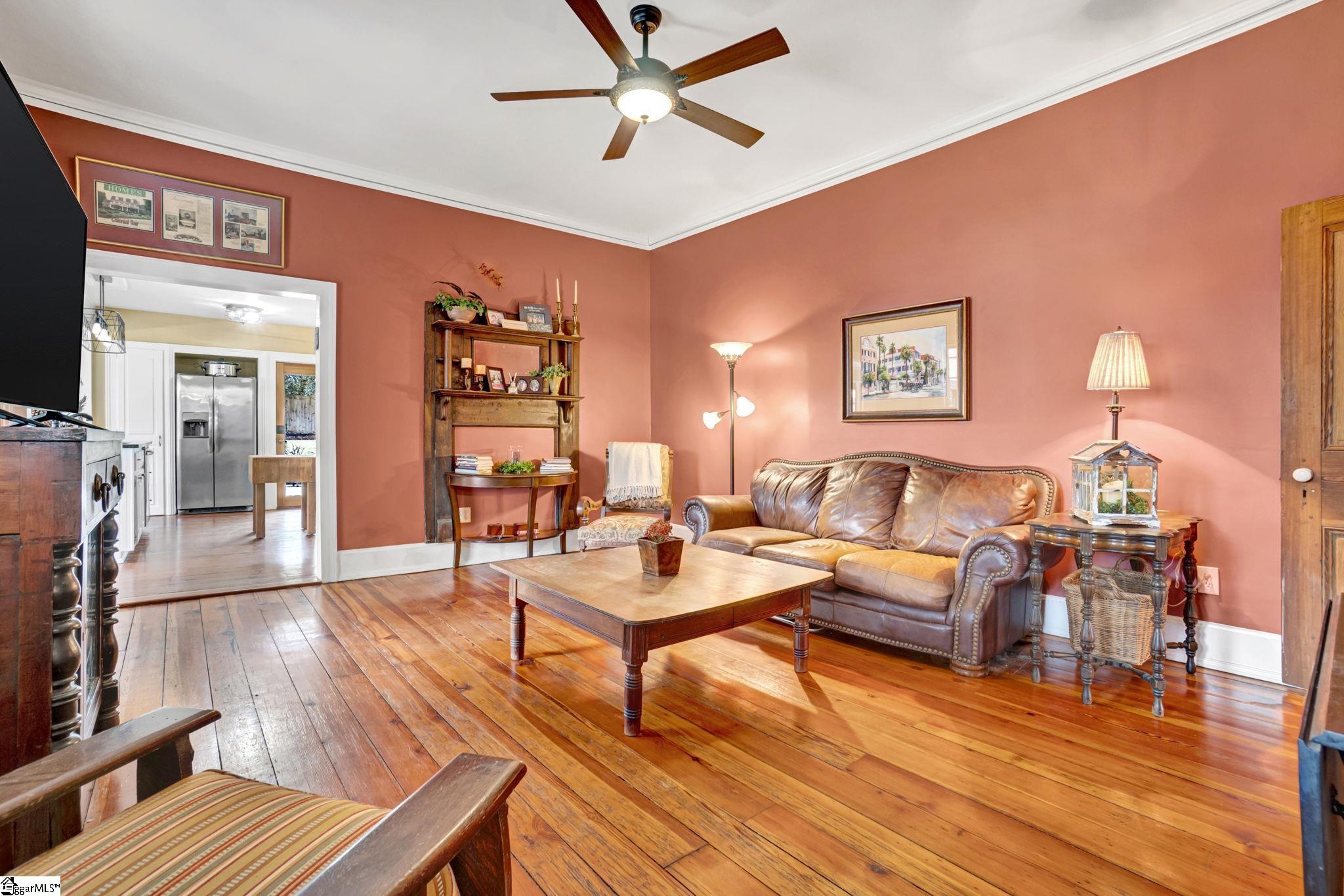 Step into a piece of Greenville history, Judson Cottage, home of Dr. Charles Judson, a Furman University professor and interim president of Furman University. The house was built prior to 1860 when it appeared in the 1860 census. After the house was relocated in approximately 1908, about two blocks down the road, the main house and the kitchen house were connected and became the home of another Furman professor. The house is located in the prestigious Alta Vista neighborhood with beautiful homes and massive trees, approximately 1 mile from downtown Greenville, close to great places to eat and shop, churches, and cultural events. The YMCA is a short walk down the road and easy access to the Swamp Rabbit Trail. Inside you will find beautiful hardwood floors throughout the downstairs and upstairs of the main house, with the exception of the bathrooms and the brick floor in the keeping room. One through the front door, you will find a massive room on each side of the entrance hall, currently being used for a formal living room and dining room. Also you will find a half bath, a study, a cozy den, and a kitchen with a keeping room, complete with a fireplace, a master bedroom and master bathroom. Upstairs you will find 2 bedrooms (one is huge) a full bathroom, and a room referred to as the chapel. From the chapel, you can step onto a balcony that overlooks Cleveland Street. Upstairs over the kitchen and master bedroom are two additional rooms and a full bathroom. These rooms would be great for additional bedrooms, craft room, offfice or storage. Stepping outside from the kitchen, you will find a covered porch and the detached garage, which has an area for a workshop or additional storage. An additional porch is located on the side of the house. The entire backyard is fenced with an electric gate on the driveway leading to the garage and a walkthrough gate on the other side of the house. Upgrades to house Insulation under house and attic December 2021 Washer, dryer, stove June 2020 Dishwasher July 2025 Heat/air (downstairs) and mini splits January 2022 installed by Carolina heat/air Service and maintained by authorized heating and air contractor. New roof on garage July 2025 New garage door opener June 2024 Termite inspection and quarterly pest control provided by Clear Defense Pest Control Gutter guards have been added Remodeled master shower and added granite countertops to master bath and kitchen June 2021 New double paned windows on all glass doors July 2025 Dehumidifier added summer 2024
