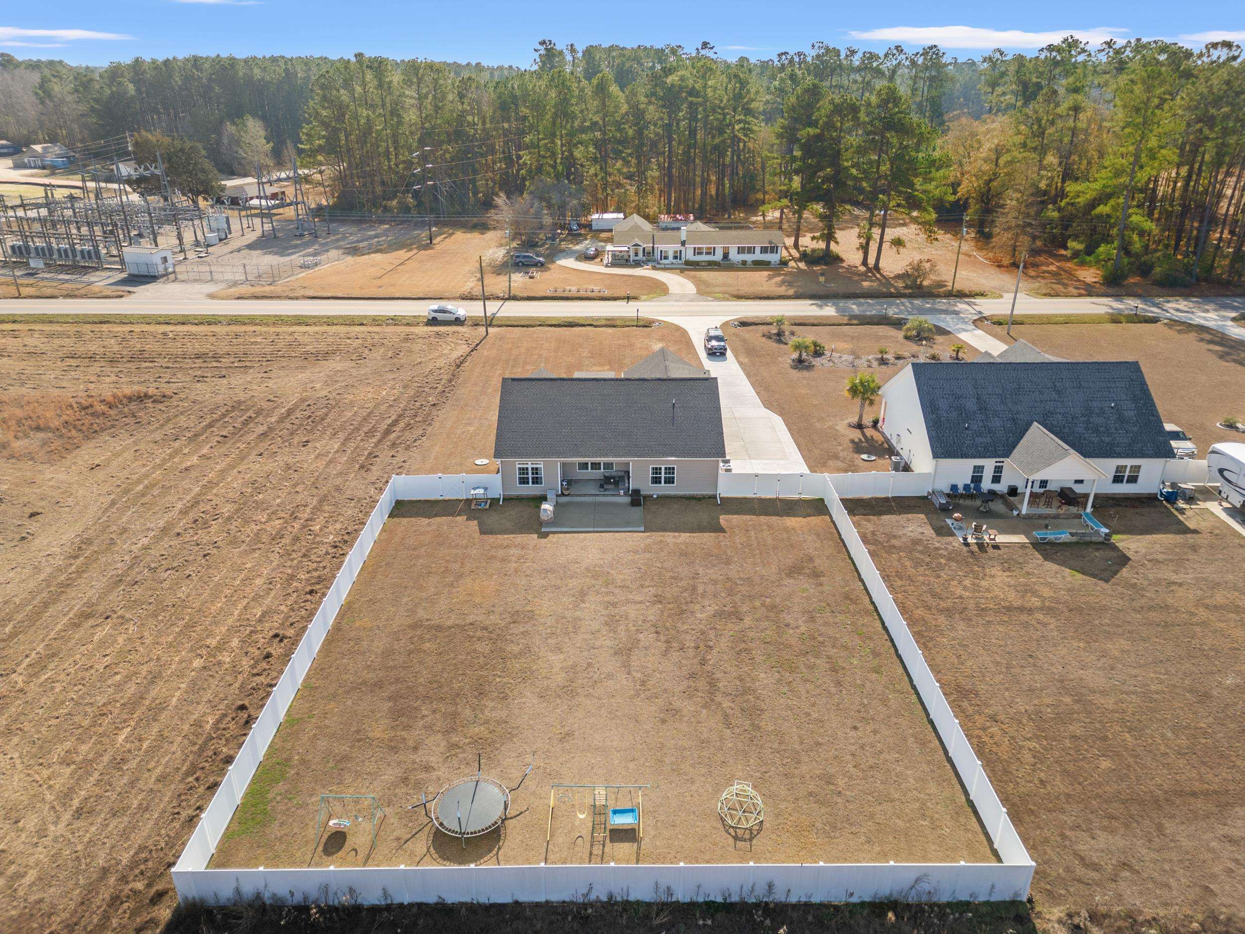 Welcome to this like-new, 3-year-old home situated on a .56-acre lot just outside the city limits, offering space, privacy, and convenience. Featuring 4 bedrooms and 3.5 baths, this home boasts a desirable open floor plan with vaulted ceilings in the living area and foyer, creating a bright, airy atmosphere perfect for everyday living and entertaining. The master has tray ceilings, double sinks, 2 linen closets and large walk-in shower. The bonus/bedroom upstairs has its own closet and full bath. The kitchen is a true highlight with granite countertops, a breakfast bar, and a large pantry, providing both style and functionality. A spacious laundry room adds everyday convenience, while the 2-car side-load garage enhances curb appeal. Enjoy multiple outdoor living spaces, including a front porch, back porch, and patio, all overlooking a fenced-in backyard ideal for relaxing, pets, or gatherings. Additional features include a camera and security system and a timer on the water heater for added efficiency and peace of mind. The owner added extra concrete for additional parking. Located just minutes from downtown Conway and less than an hour to the beach, this move-in-ready home delivers the best of quiet living with easy access to shopping, dining, and coastal destinations. Schedule your private showing today!