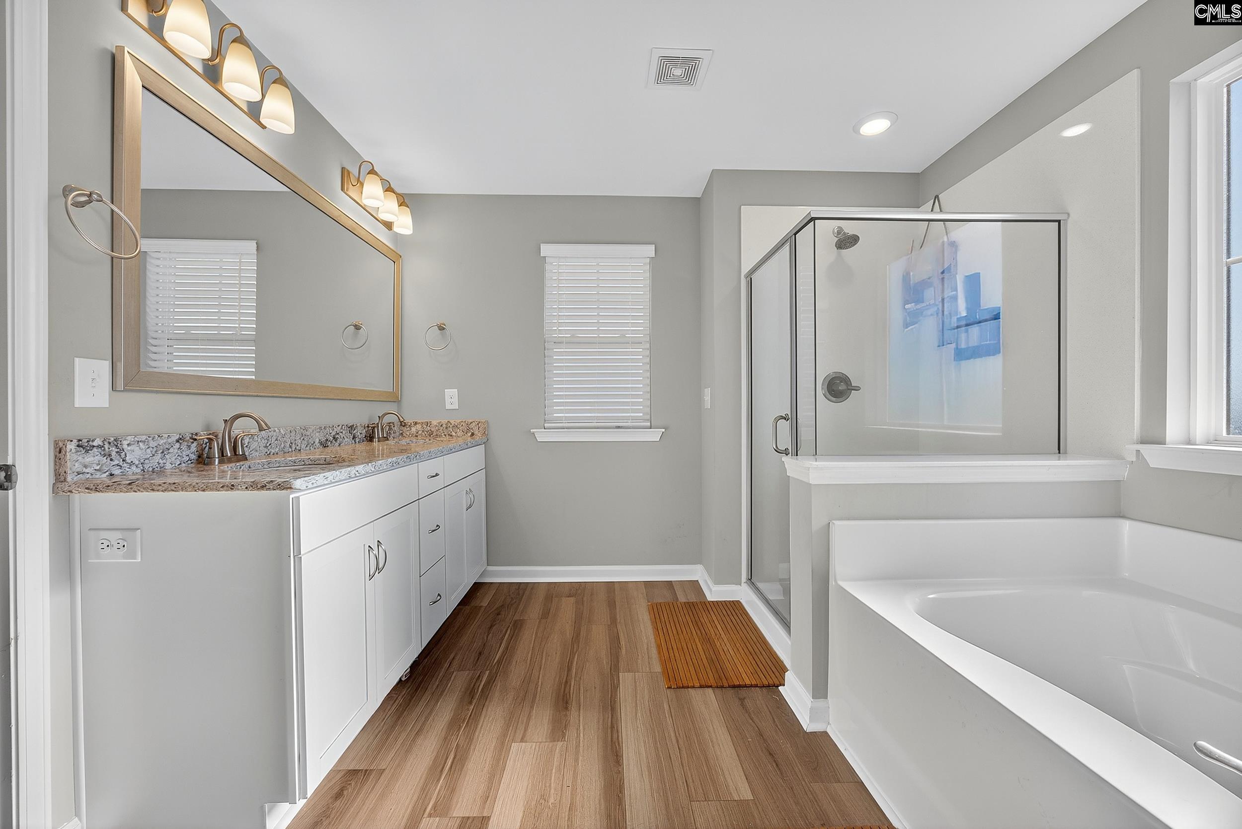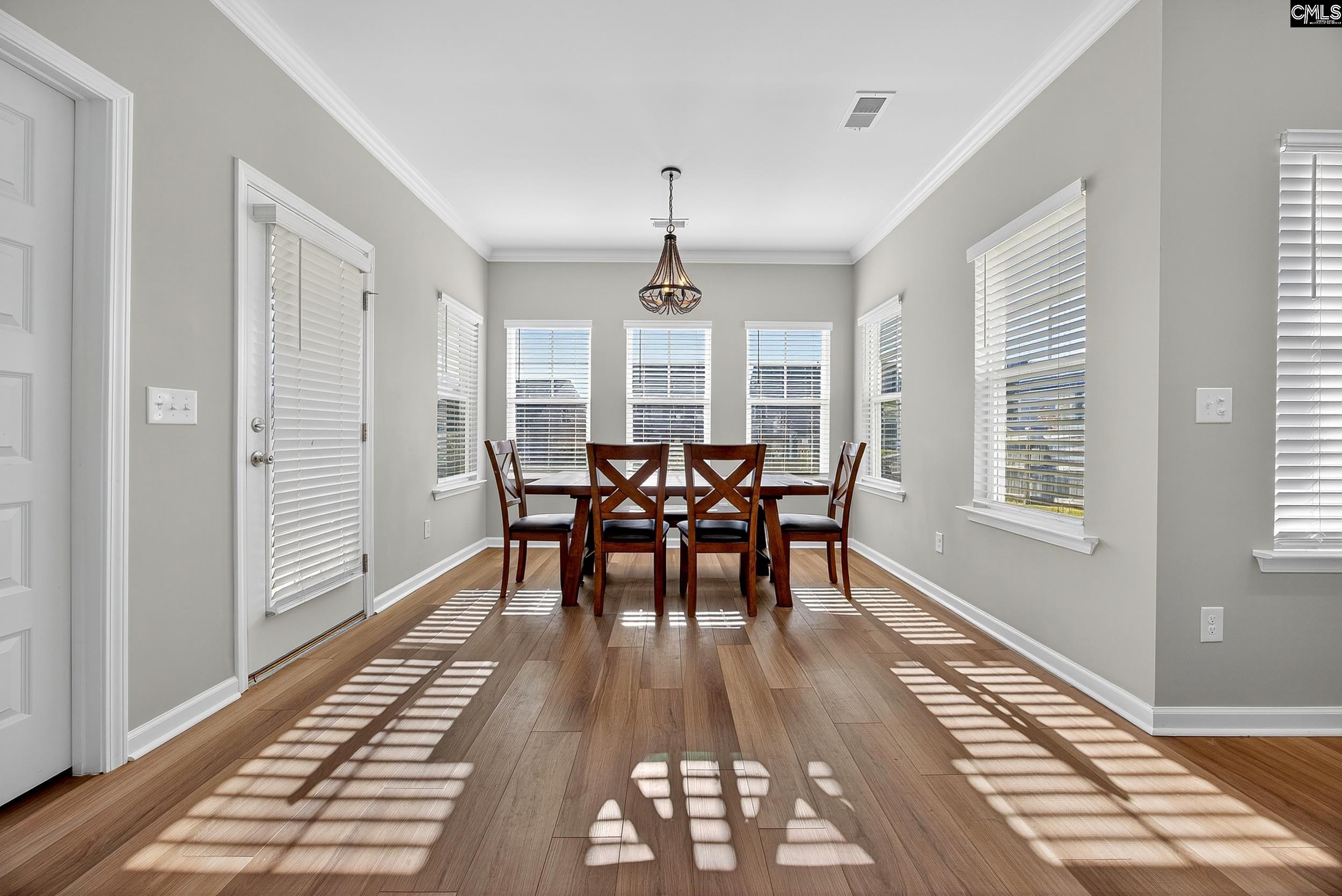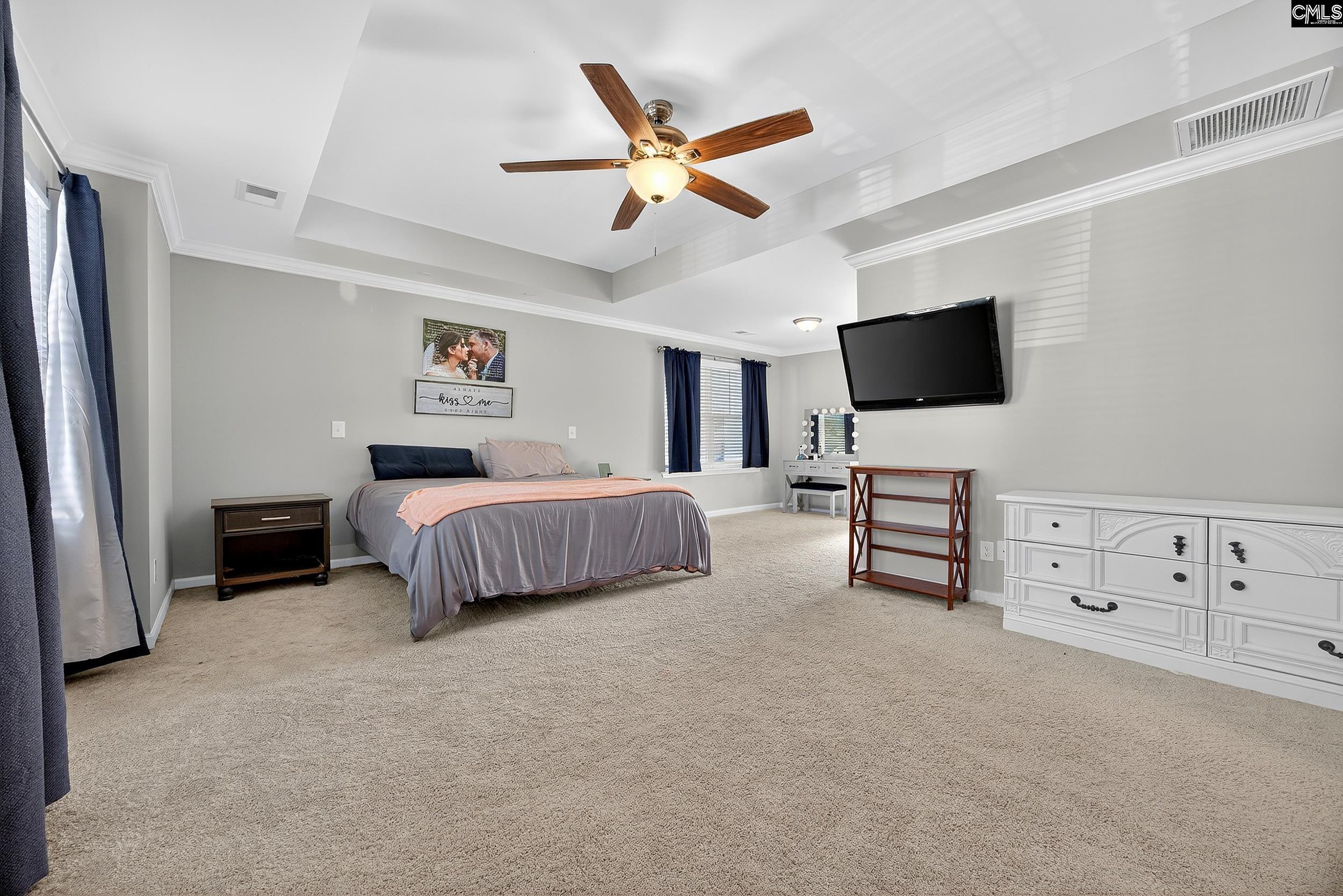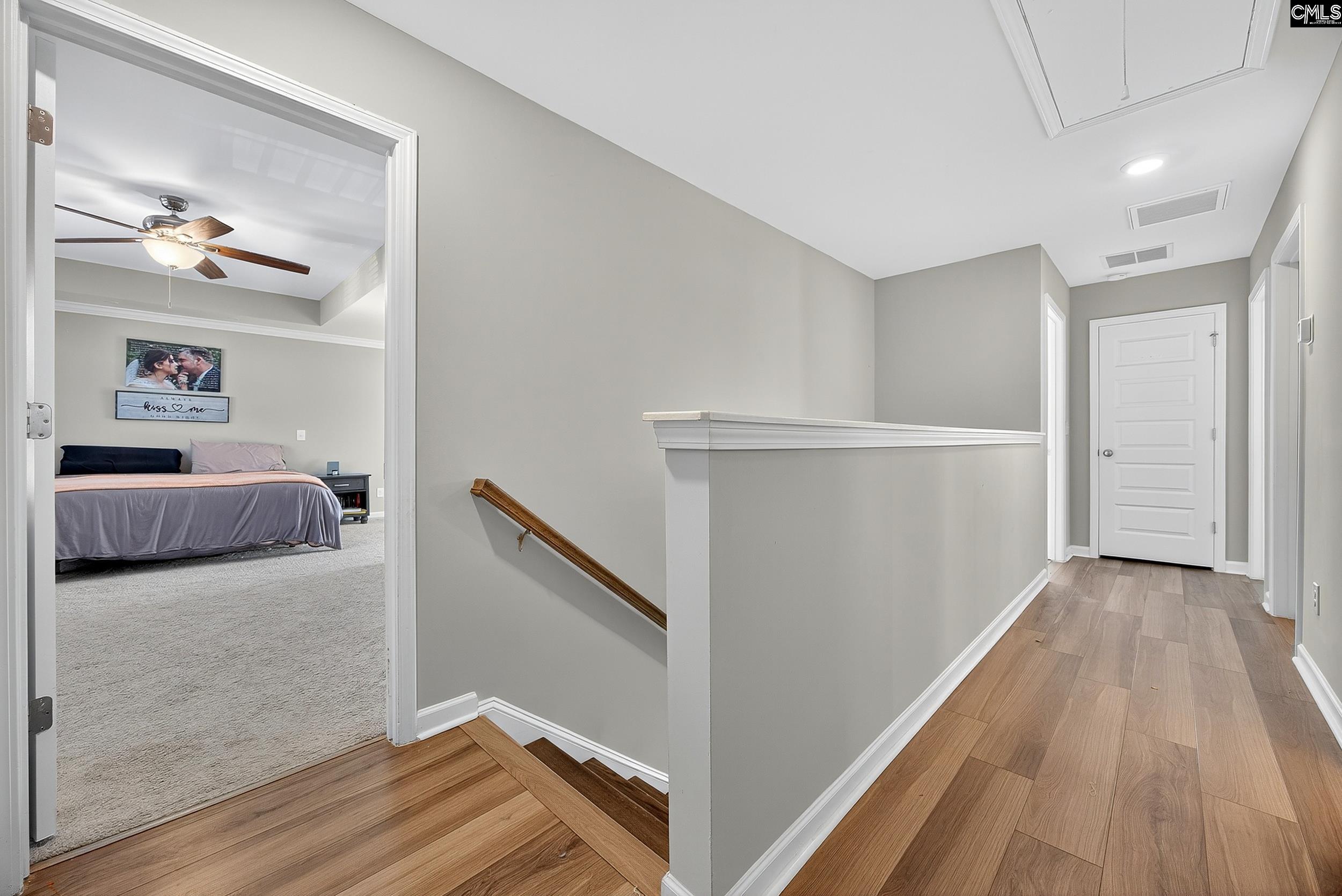 This 5-bedroom, 2.5-bath home blends modern finishes with comfortable, functional living spaces. The main level features LVP flooring throughout the open living areas, a spacious great room with built-in bookshelves and a cozy gas log fireplace, and a bright kitchen with white cabinetry, marbled quartz countertops, a tile backsplash, and a large pantry. The adjoining dining area opens to a relaxing sunroom and a 12x10 patio. A flexible bedroom on the main floor offers options for a guest room, home office, or gym (the current owners have it set up as a gym with foam mat flooring, which can stay or be replaced with carpet at the buyer’s preference). Upstairs, you’ll find four additional bedrooms including a spacious primary suite with a private sitting area, a large walk-in closet, and a bath featuring a soaking tub, separate shower, and dual vanities. The laundry room is conveniently located upstairs as well. Enjoy the large, fenced backyard with plenty of room to play, garden, or relax in privacy. Woodleigh Park residents have access to neighborhood amenities including a pool, playground, and clubhouse—all within the Lake Carolina community, known for its walking trails, community events, and award-winning schools. Disclaimer: CMLS has not reviewed and, therefore, does not endorse vendors who may appear in listings.