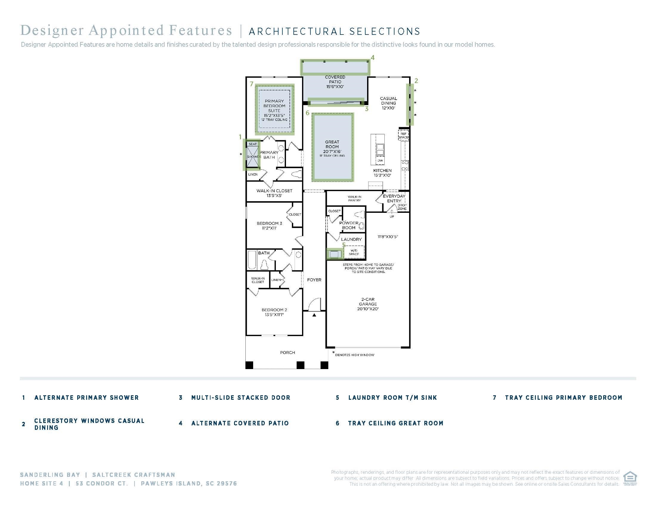 Welcome to the Saltcreek Craftsman under construction in Sanderling Bay. This thoughtfully designed home blends coastal charm with modern livability, featuring open-concept living spaces and elevated architectural details throughout slated to be completed just in time for the Fall season. Highlights include a spacious expanded covered patio accessed through impressive multi-slide stacking doors, creating seamless indoor-outdoor living ideal for entertaining or relaxing. Inside, the home showcases ceiling detail in both the great room and primary bedroom, adding character and visual interest, while clerestory windows in the casual dining area invite abundant natural light and enhance the airy coastal feel. Practical luxury continues in the utility room with cabinetry and sink, offering added functionality and organization for everyday living. Best of all, this stunning home comes complete with thoughtfully selected designer finishes and generous builder incentives that offer significant added savings. *Images shown are of a similar completed home and may reflect options not included in the home price.