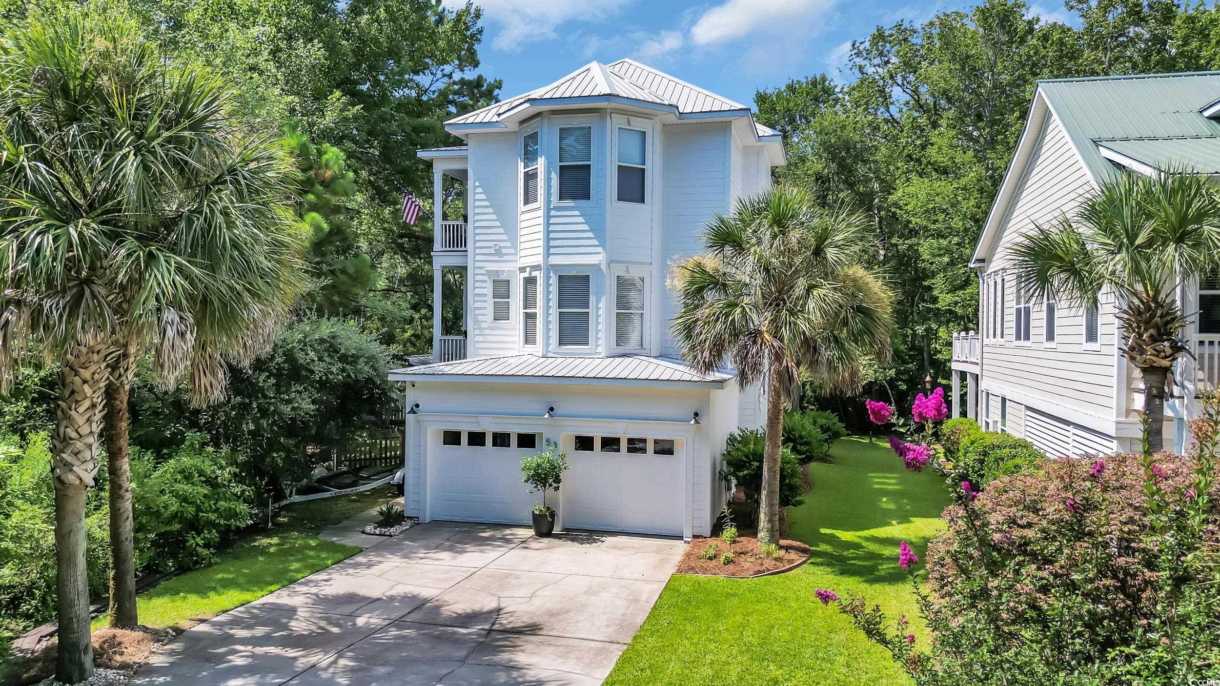 Welcome to your spacious coastal retreat in the beautiful Pawleys Island, South Carolina! Nestled in a quiet cul-de-sac just minutes from both Litchfield and Pawleys beaches, this expansive 3,705 heated sq ft home offers the perfect blend of comfort, space, and convenience. Enjoy being close to all the area’s top restaurants, shopping, and golf courses while still tucked away in a peaceful neighborhood. This three-story home features 4 bedrooms, 4 full bathrooms, and a dedicated office space — ideal for working from home or managing busy family life. The main level opens into a bright foyer and cozy family room with plantation shutters, along with a private guest suite featuring its own full bath — perfect for in-laws, visitors, or teens needing their own space. Sliding doors lead to a fenced backyard with a patio and a large storage shed, plus a two-car garage for even more storage. Upstairs, the second floor boasts an open-concept with a large beautiful kitchen offering stainless steel appliances, solid surface counter tops and stunning tile back splash made in Italy and a new induction range which boils water faster than gas. The kitchen brings a fresh twist on classic coastal design, featuring bold green cabinetry that adds personality and warmth while still complementing the home's breezy, light filled spaces. The kitchen is open to the main living area which is filled with natural light from surrounding windows and sliding doors that lead to the first of two oversized wraparound decks — perfect for entertaining or relaxing with a treehouse-like feel. This level also includes the home office, a full bathroom, and a laundry room. The third floor offers three more bedrooms and two full baths, including a spacious primary suite with its own ensuite bathroom and access to the second wraparound deck, creating the perfect private escape. This home is truly a gem and one of the best price-per-square-foot values in Pawleys Island, this home is an incredible opportunity for families, second-home buyers, or anyone looking for space near the beach. Sellers are offer a home warranty through American Home Shield. Don’t miss your chance — schedule your showing today!