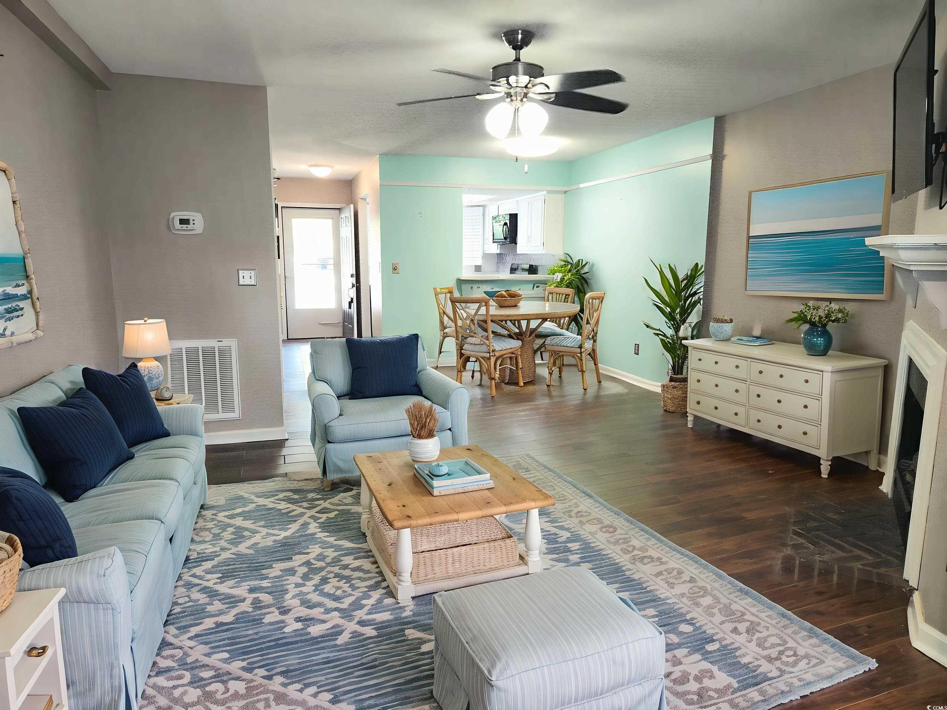 Price Improvement! Perfect Location in the Heart of North Myrtle Beach! Must see this Beautiful 2 Bedroom, 1 & 1/2 Bath Townhome with a private Balcony. This property is in the highly sought after, gated community of Shadow Moss in North Myrtle Beach that is just a short Golf Cart ride to the Beach, Dining, Shopping, and Festivals on Main Street! When walking through the front door you will notice how inviting the spacious living room with fireplace (electric insert) and gorgeous tile floors are. This bright kitchen features impressive Quartz countertops, white cabinets, tile floors, large window over kitchen sink, pull down sink faucet, pantry, breakfast bar and a dining area. There is a cozy Carolina Room that could be used as an office, fitness room or a sitting area for relaxing while looking out of the newly installed sliding glass doors. You will look forward to enjoying your morning coffee on the front or back patio. The second floor features two bedrooms with a full bathroom, closets, laundry area, linen closet, attic with pull down stairs, and your very own Balcony (off of primary bedroom) for peaceful relaxation while listening to the birds sing. Shadow Moss is in a small and quiet community that you will love calling it your home. Shadow Moss is a Pet & Golf Cart friendly community that includes a Clubhouse with a huge outdoor Pool, Sidewalks, Childs Play area, a pond with gazebo & benches to relax and enjoy nature. Shadow Moss is perfectly located close to Restaurants, Shopping, Golf Courses, Marinas, Medical facilities, Post Office, and all the Entertainment the Beach has to offer. View Today, this one will not last! ***Photos may have been virtually staged for representation purposes only.*** Listing information is deemed reliable, but not guaranteed. All measurements are approximate and listing information is the responsibility of the buyers and their agent to verify accuracy.