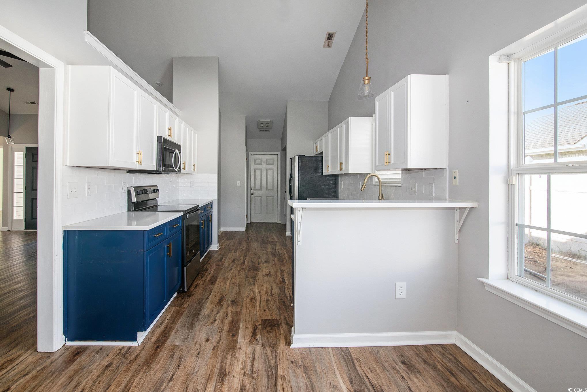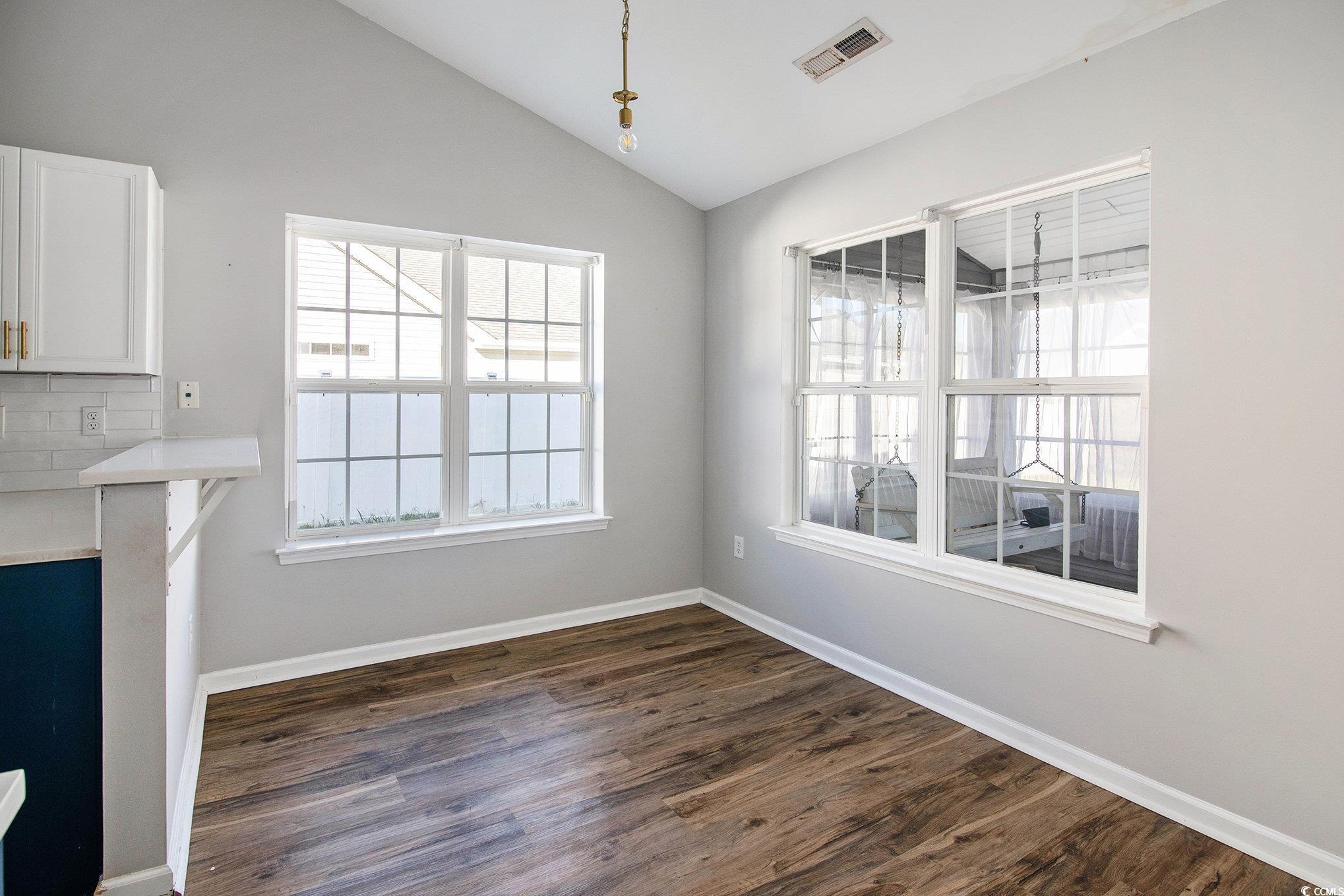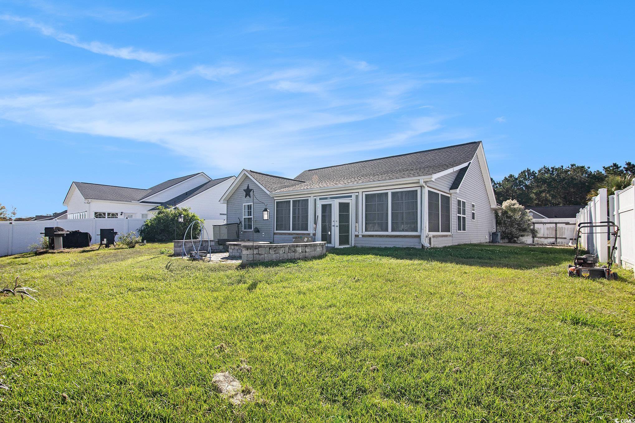Welcome to this stunning 3 bedroom, 2 bath home in the sought-after Carolina Woods subdivision of Myrtle Beach! Thoughtfully updated throughout, this home blends modern comfort with stylish coastal charm. Step inside to find vaulted ceilings that create an airy, open feel across the main living area, complemented by updated lighting and fixtures that add a touch of sophistication. The kitchen is sure to impress with stainless steel appliances, a custom tiled backsplash, and contrasting cabinetry that perfectly balances warmth and elegance. The primary suite offers a relaxing retreat with decorative wainscoting details, adding texture and character to the space. You’ll also enjoy a large walk-in closet and a private en suite bath featuring a walk-in shower and modern vanity. Two additional bedrooms and another full bath provide ample space for family, guests, or a home office. A light-filled Carolina room extends your living area, ideal for morning coffee or evening gatherings. Outside, a stone patio overlooks the spacious fenced-in backyard, perfect for entertaining or enjoying quiet coastal evenings. Nestled in a friendly, well-established neighborhood, Carolina Woods offers convenience and charm just minutes from great restaurants, shops, and Highway 31, providing easy access to everything along the Grand Strand. Also conveniently close to Murrells Inlet, this updated home is the perfect blend of comfort, style, and location—ready for you to move in and enjoy the Myrtle Beach lifestyle.