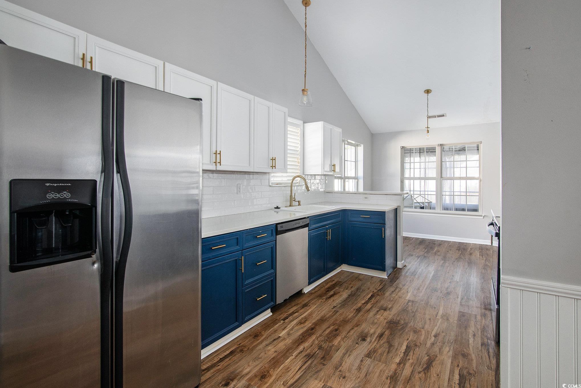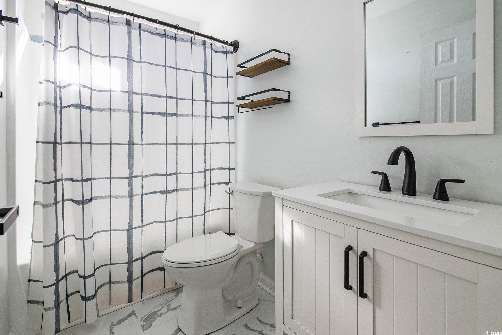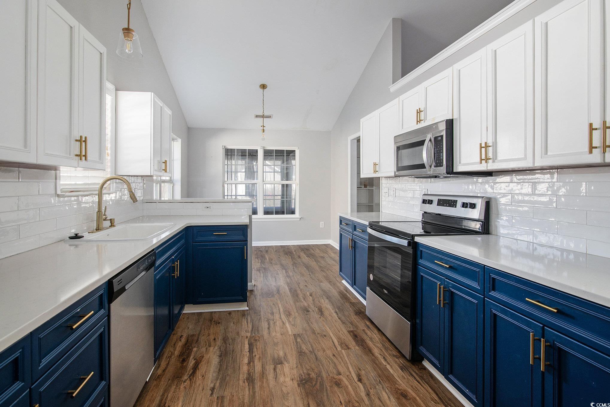 Welcome to this stunning 3 bedroom, 2 bath home in the sought-after Carolina Woods subdivision of Myrtle Beach! Thoughtfully updated throughout, this home blends modern comfort with stylish coastal charm. Step inside to find vaulted ceilings that create an airy, open feel across the main living area, complemented by updated lighting and fixtures that add a touch of sophistication. The kitchen is sure to impress with stainless steel appliances, a custom tiled backsplash, and contrasting cabinetry that perfectly balances warmth and elegance. The primary suite offers a relaxing retreat with decorative wainscoting details, adding texture and character to the space. You’ll also enjoy a large walk-in closet and a private en suite bath featuring a walk-in shower and modern vanity. Two additional bedrooms and another full bath provide ample space for family, guests, or a home office. A light-filled Carolina room extends your living area, ideal for morning coffee or evening gatherings. Outside, a stone patio overlooks the spacious fenced-in backyard, perfect for entertaining or enjoying quiet coastal evenings. Nestled in a friendly, well-established neighborhood, Carolina Woods offers convenience and charm just minutes from great restaurants, shops, and Highway 31, providing easy access to everything along the Grand Strand. Also conveniently close to Murrells Inlet, this updated home is the perfect blend of comfort, style, and location—ready for you to move in and enjoy the Myrtle Beach lifestyle.