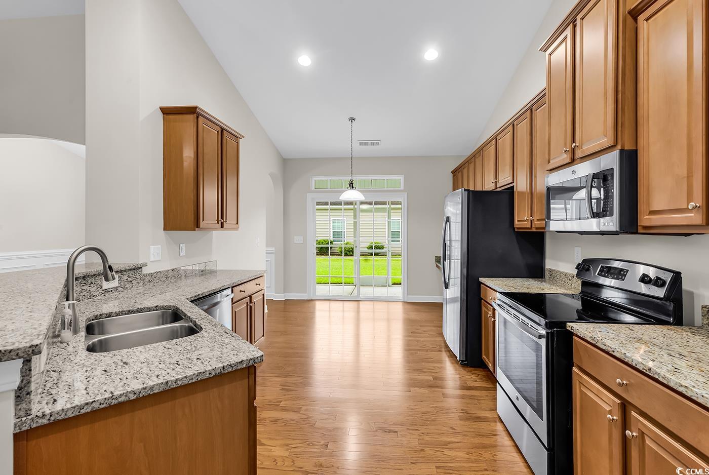 Ask about seller provided closing costs assistance and home warranty! Welcome to 530 Martinsville Drive, a spacious and beautifully maintained four-bedroom, three-bath home located in the desirable Brookfield Estates community located in Murrells Inlet, known as “The Seafood Capitol of South Carolina”. Stroll along the waterfront Marsh Walk and enjoy a variety of live music and entertainment then dine on the “right off the boat” seafood. This thoughtfully designed home offers an open concept living area filled with natural light, a well-appointed kitchen with modern stainless steel appliances with plenty of cabinets, a pantry and ample counter space. The open living area features a cathedral ceiling and a comfortable natural gas fireplace with plenty of room for family movie nights. The primary suite located on the ground floor features a trey ceiling and large walk-in closet and a private bath with a dual sink vanity, a soaking tub for that spa experience and step in shower. Also on the ground floor are two guest bedrooms which share a full bath plus there is a built-in fireproof safe to store treasured family photos, important papers and family valuables. Upstairs is a spacious private Ensuite with a walk-in closet. This flexible floor plan is ideal for families and guests. Enjoy the coastal lifestyle with a screened-in porch and a beautifully landscaped backyard perfect for entertaining or relaxing. Meet all your friends and neighbors at the spacious community pool and clubhouse. Brookfield Estates offers easy access to area beaches, golf courses, dining, and all the charm that makes Murrells Inlet one of the most sought-after communities along the Grand Strand. Murrells Inlet is located just north of Brookgreen Gardens, the largest outdoor sculpture garden in the world, and Huntington Beach State Park a great place to enjoy its private beach access. Myrtle Beach, one of the country's top tourist destinations, is only a twenty-minute drive to the north and historic Charleston is just 75 miles to the south. Make this part of South Carolina your new destination to create your own treasured family memories.