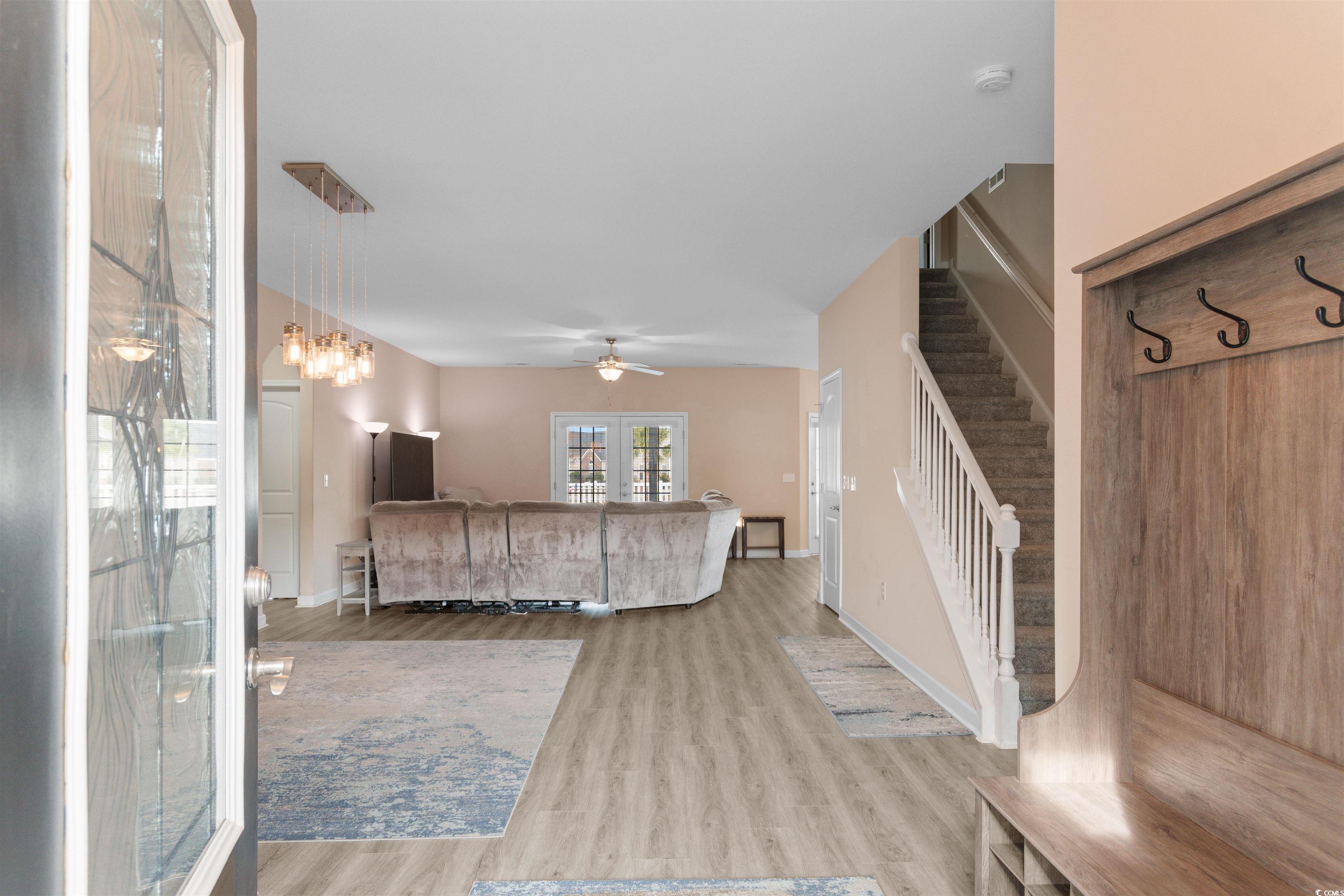Discover the perfect blend of luxury and tranquility in this meticulously well-kept 3 bedroom, 2 bathroom property located in the North Village community! Step inside and enjoy seamless living with the open concept floor plan, featuring beautiful LVP flooring that flows throughout the main living areas, all accentuated by abundant natural light. The great room and dining room are adjacent to the gourmet kitchen which is a true highlight, offering a gas range, stainless steel appliances, granite countertops, breakfast bar, breakfast nook, large corner pantry and upgraded cabinetry. For ultimate efficiency, this home also boasts a Rinnai tankless hot water heater! The spacious main-floor primary suite is a true retreat, complete with a walk-in closet, dual vanity, and a relaxing soaking tub. Upstairs you will find the massive bonus room, offering incredible flexibility. This space can easily serve as a 4th bedroom, craft studio, game room, or home office, providing endless possibilities. This is a true split bedroom home with the 2 additional bedrooms and bath on the opposite side of the house. Enjoy morning coffee or relaxing evenings on the screened porch with custom shades (a must-have for bug-free enjoyment near the coast!) or move outdoors to enjoy your own backyard oasis with a salt water pool and fenced yard making entertaining a breeze, there is even a dedicated propane hook-up for grilling right beside the pool deck. For the car enthusiast, there is a rare over-sized garage featuring an epoxy floor. The added space here also provides extra storage and access to the attic storage. Perfectly situated for convenience and leisure, you're close to shopping, dining, entertainment, and top-tier golf courses, all while being only a quick 6-mile drive to the Beach.