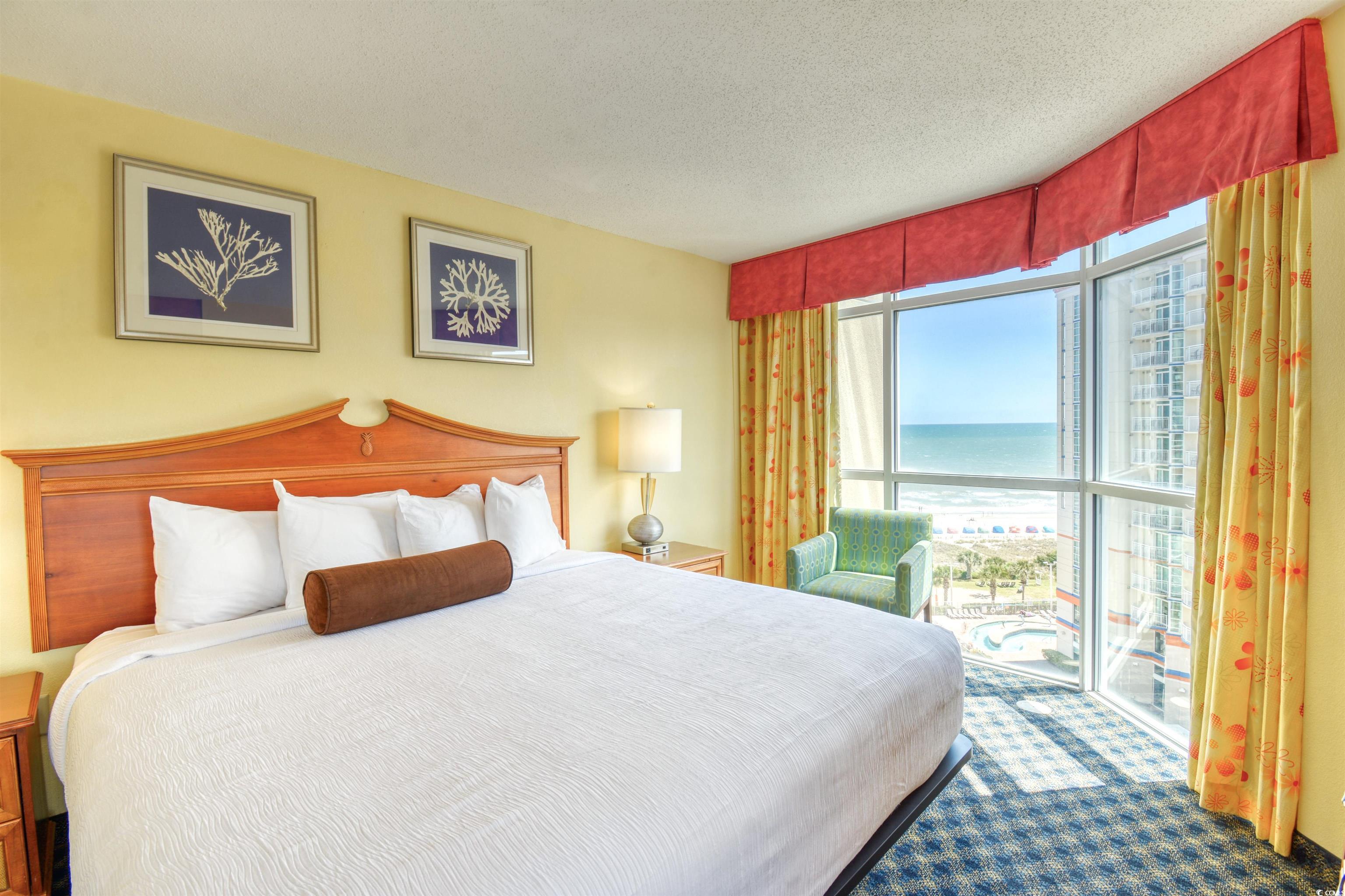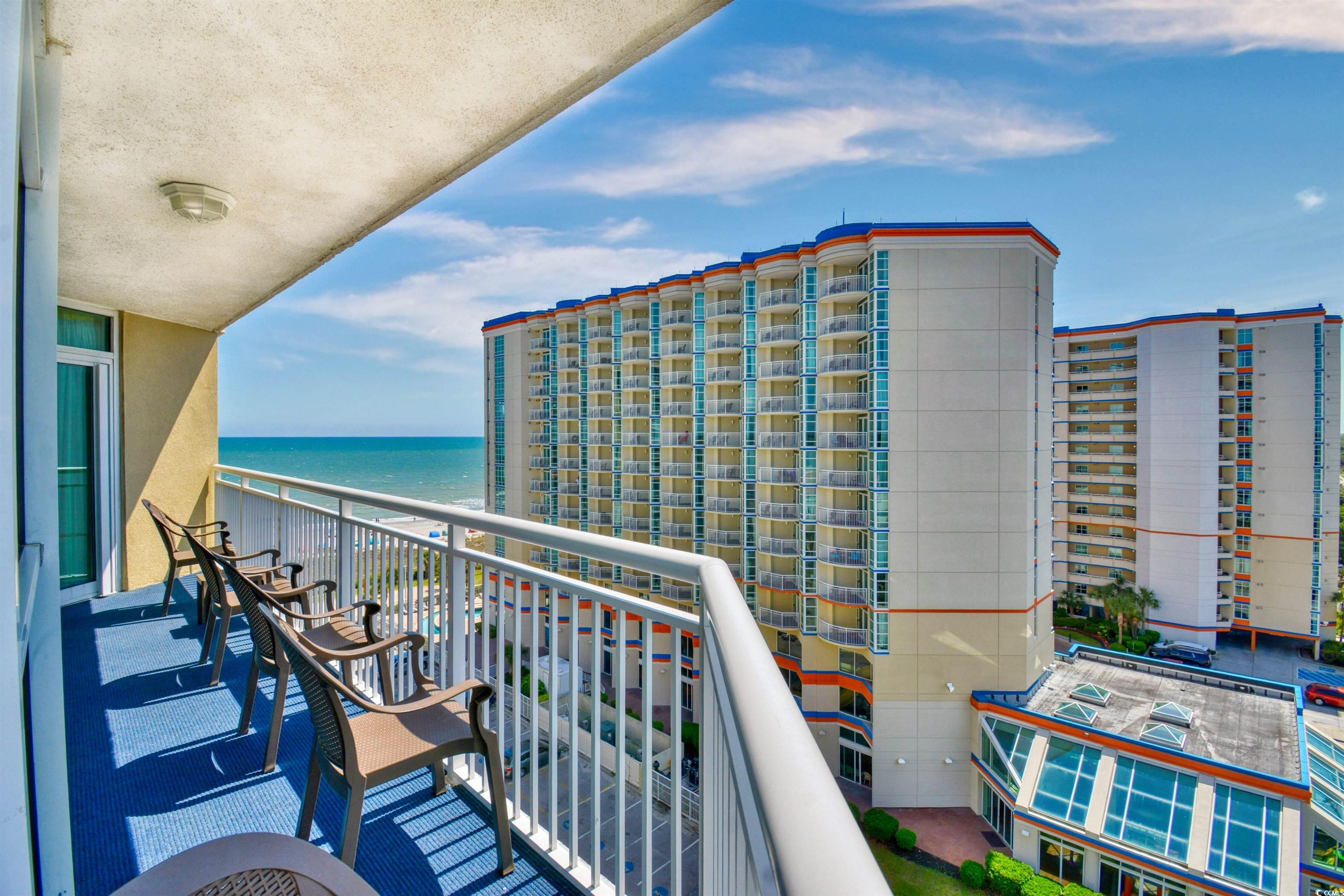 Rare 2bed/2ba END UNIT oceanfront condo in the coveted Dunes Village Resort in the Golden Mile Section of Myrtle Beach. See more at https://storybookviewer.com/91810-114399 This unit is gorgeous and spacious with a HUGE wrap-around balcony (there are 3 doors inside the condo to access the balcony - 2 from the large living room and 1 in the primary suite). Gorgeous views from all living area and Primary! Inside you'll have a full kitchen with granite counter tops, upgrades appliances, raised-panel cabinets and a pantry. Both bedrooms are large with the guest suite having 2 double beds and the primary suite having a king bed. Both bedrooms have their own en-suite bathroom with granite sink tops, large mirrors, decorative lighting, & tiled floors. The primary suite bath has a tiled shower as well as a jetted tub. There is also a sleeper sofa in the living room so you can sleep 8 comfortably! Owner's closet where you can keep your personal belongings. The best part is the entire western side of the condo is a complete floor-to-ceiling wall of glass with amazing views of the ocean, beach, and the northern part of the city of Myrtle Beach. Dunes Village features every amenity you're looking for in your new condo including: TWO indoor heated WATER PARKS (including pools, hot tubs, sport pools, lazy river, and water slides); outdoor pools, hot tubs, and lazy river; fitness center; onsite Day Spa; onsite breakfast restaurant; onsite bar/lounge and lunch & dinner restaurant; coffee bar; tennis court; basketball court; a secured/gated parking garage; and an onsite Kids Club (in season) providing tons of activities for the little ones throughout each day. As if all of this wasn't enough, Dunes Village is a "Rental Machine" and generates over sixty thousand per year in gross rent. #922 next door is also for sale so this is a rare opportunity to get side-by-side units. Dunes Village is a short drive to everything Myrtle Beach has to offer including: Myrtle Beach International Airport, Broadway At The Beach, Barefoot Landing, The Market Common, Myrtle Beach State Park, Coastal Grande Mall, 2-Tanger Outlets, and Coastal Carolina University (CCU),marinas, public docks, landings, restaurants, golf courses, shops, entertainment. Also, only 90 miles south to beautiful Charleston, SC