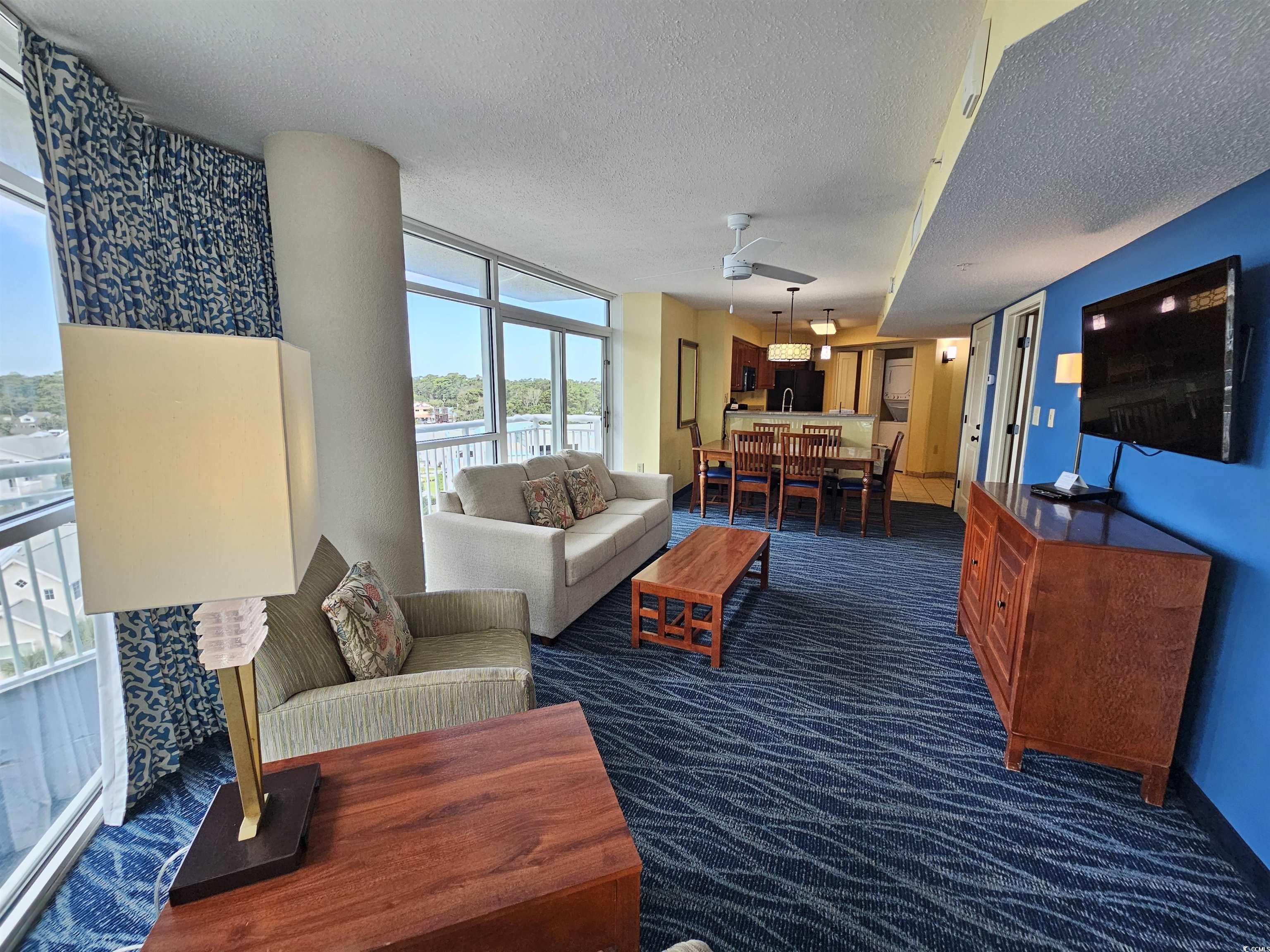 This unit offers amazing views of the ocean and city with a large wrap around balcony and floor to ceiling windows in the living room and main bedroom. This 2-bedroom/2-bath condo enjoys all the year-round benefits of Dunes Village Resort. With plenty of room this unit will sleep 8, featuring two queen beds in the guest room, and a king in the primary suite plus a queen size sofa sleeper in the living room. The villa also offers a full kitchen with full size stove, microwave, dishwasher, garbage disposal and granite counter tops. There is also a washer and dryer in the villa. The fun continues with a year-round activities department, tennis courts, basketball courts, beach volleyball court, putt putt course and playground. While the family enjoys the water parks, tennis and basketball courts, relax and get a massage in the onsite Spa or workout in the exercise room. The resort also offers two restaurants and a Starbucks Coffee Shop. The Dunes Village Resort has just been awarded the #1family resort in Myrtle Beach, as well as the #4 family resort in the entire U.S by the Today Show and TripAdvisor. If you ever find time to leave this amazing property you will find many of Myrtle Beach's top attractions just moments away. Don't miss out on this property, make sure you stop in for a viewing.
