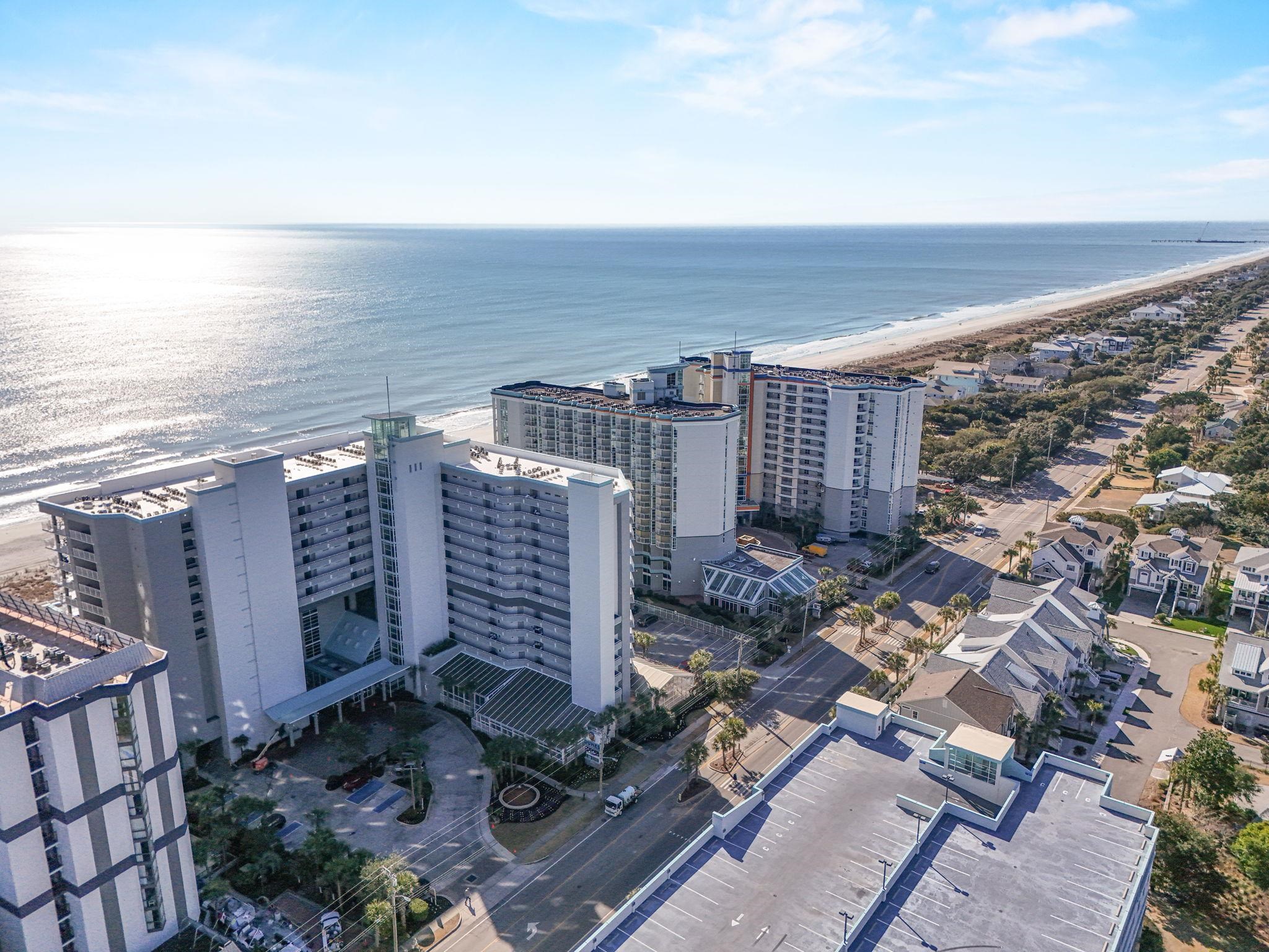 Located in the highly desirable Golden Mile section of Myrtle Beach, this spacious and beautifully appointed 2-bedroom, 2-bath ocean view condo in the award-winning Dunes Village Resort offers the perfect blend of coastal living and strong investment potential. The unit features an oversized wrap-around balcony with three access points - two from the large living room and one from the primary suite - showcasing stunning ocean and city views, along with floor-to-ceiling windows that fill the living area and primary bedroom with natural light. Designed to comfortably sleep eight, the condo includes a king bed in the primary suite, two queen beds in the guest room, and a queen sleeper sofa in the living room. The full kitchen is equipped with granite countertops, full-size stove, microwave, dishwasher, garbage disposal, and ample cabinetry, and the unit also includes an in-unit washer and dryer. Dunes Village Resort offers extensive year-round amenities including two indoor heated water parks with pools, hot tubs, lazy rivers, water slides, and sport pools, as well as outdoor pools, hot tubs, lazy river, fitness center, on-site spa, restaurants, bar/lounge, coffee bar, tennis and basketball courts, beach volleyball, playground, seasonal kids club, and secured gated parking garage. This property has a strong rental history! Conveniently located just minutes from Myrtle Beach International Airport, Broadway at the Beach, Barefoot Landing, Market Common, Myrtle Beach State Park, Coastal Grande Mall, Tanger Outlets, Coastal Carolina University, golf courses, dining, shopping, entertainment, marinas, and public docks, and approximately 90 miles from Charleston, SC. Schedule your showing today.