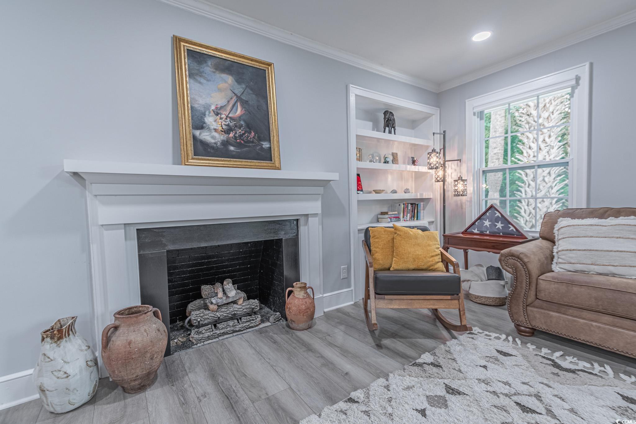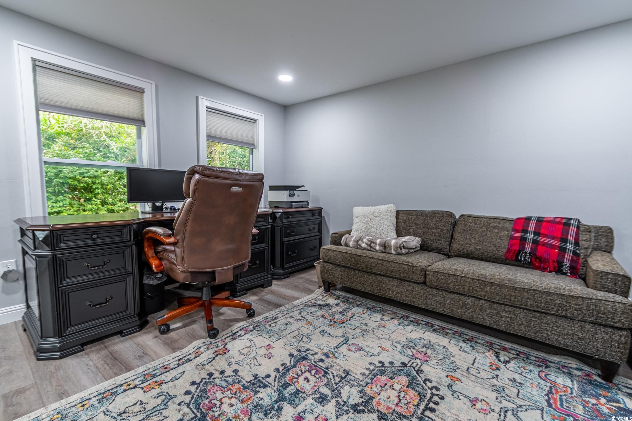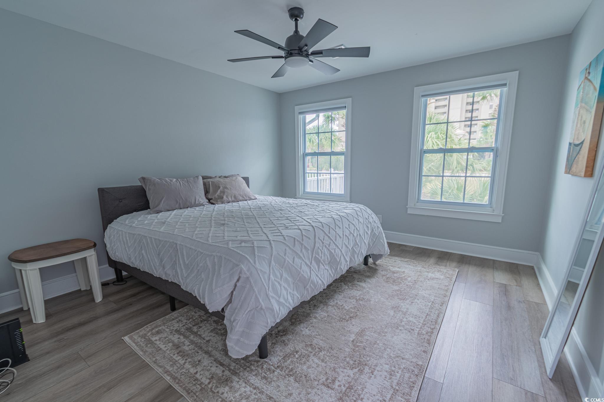 This stunning single-level 4-bedroom, 4-bath home sits on nearly half an acre just across the street from the beach. Nestled beside scenic Dunes Lake and surrounded by palm trees, this coastal oasis offers serenity and privacy—with no HOA. Step inside through the foyer to a cozy living room featuring picture windows, recessed lighting, and a charming natural gas fireplace. The dining area is accented with wainscoting and wall sconces, creating a warm and inviting atmosphere. The kitchen is a showstopper with tall white cabinets, dark hardware, quartz countertops, a tile backsplash, stainless steel appliances, a deep sink, and a pantry for extra storage. The primary suite includes a ceiling fan, private deck overlooking the lake, and an en-suite bath with double sinks, a large mirror, and a custom-tiled shower with a glass door. The second bedroom also features lake and backyard views, a ceiling fan, and a private bath with vanity and a custom tile shower. The remaining two bedrooms each have ceiling fans and share a hall bath with a vanity and tub/shower combo. A spacious Carolina room at the back of the home provides additional living space and beautiful views. The large laundry room includes an additional bathroom for convenience. Outside, enjoy a large front deck, a 1-car garage, and ample parking for vehicles, a boat, or an RV. Experience coastal living at its finest in this exceptional second-row beach home. Square footage is approximate and should be verified by buyers.