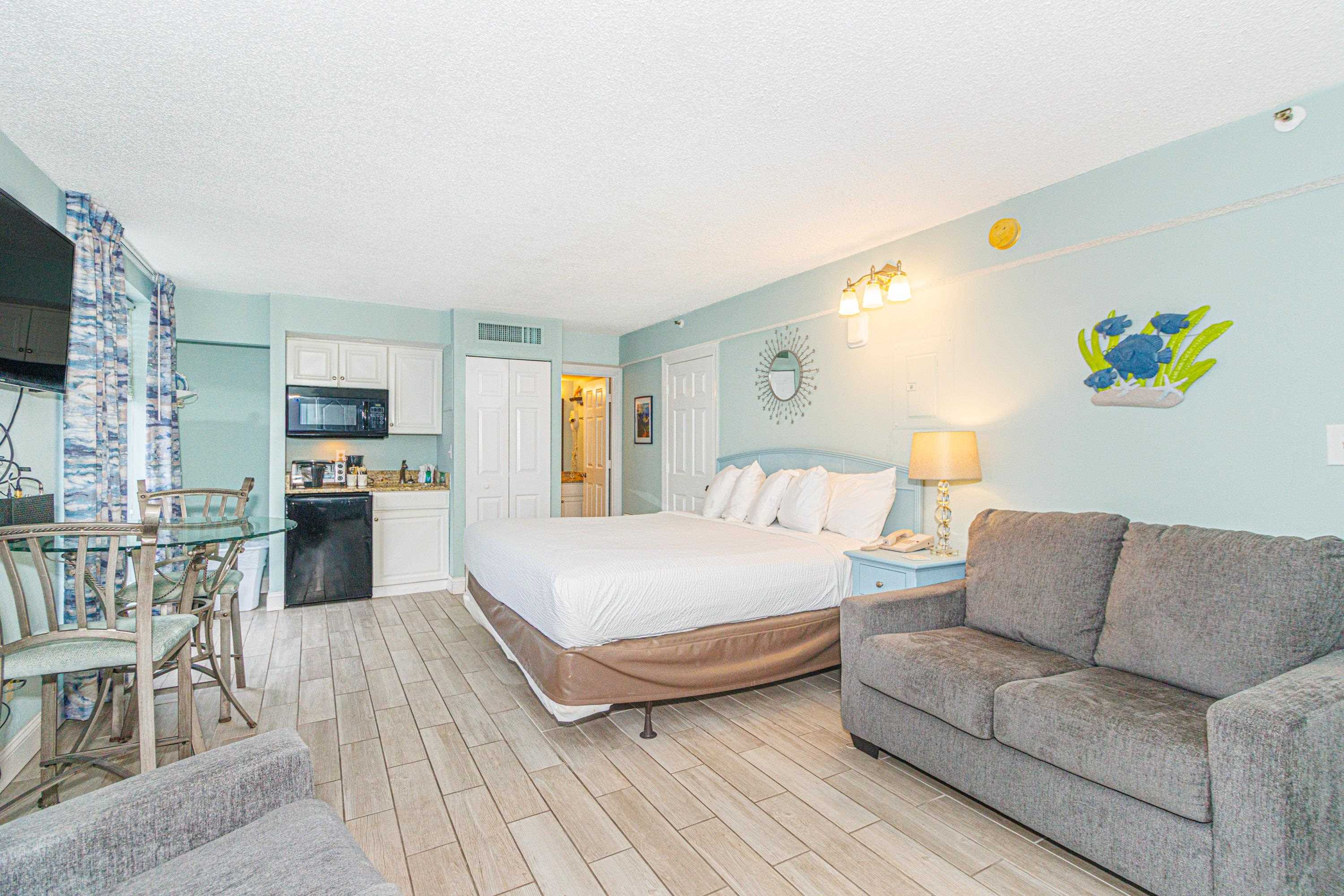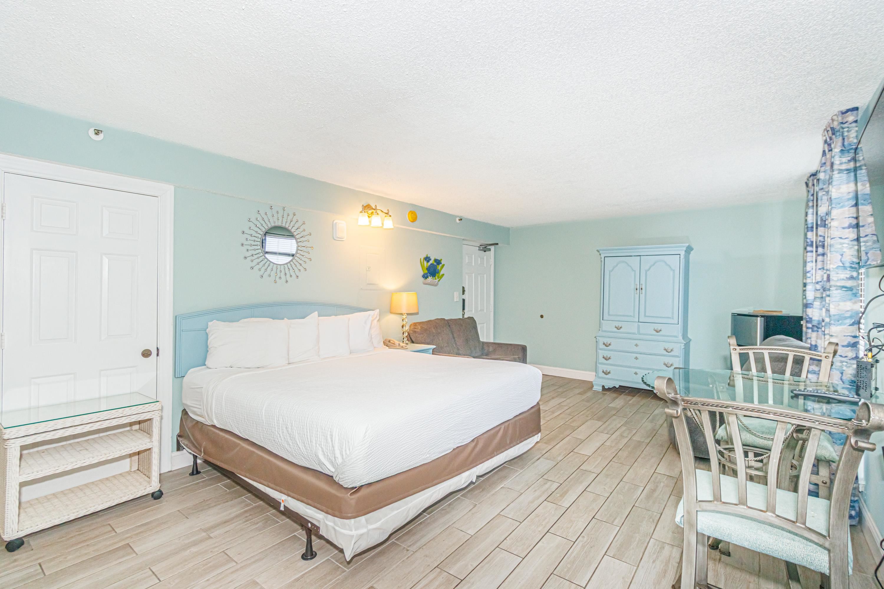 Rare Find a Diamond! Looking for your next Myrtle Beach investment property or vacation home? Well, look no further. This newly renovated efficiency unit is ready for a new family to enjoy! Featuring a small kitchenette, a king-size bed, a full bathroom with a shower and tub, and facing an ocean view that is just perfect for watching the sun rise daily. Beach Colony Resort is located in the highly desirable "Golden Mile" area of northern Myrtle Beach. With multiple indoor and outdoor pools, hot tubs, a game room, an exercise room, and an onsite restaurant and bar, there is something for everyone to enjoy.