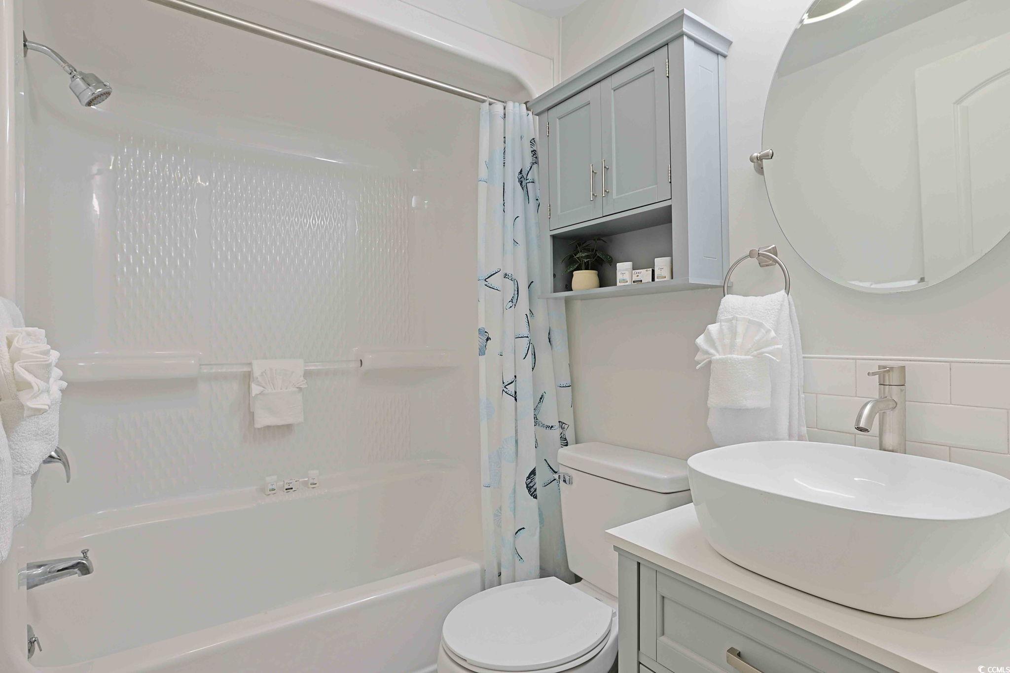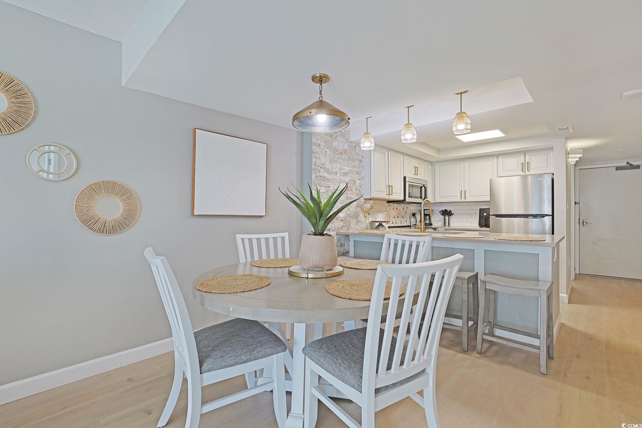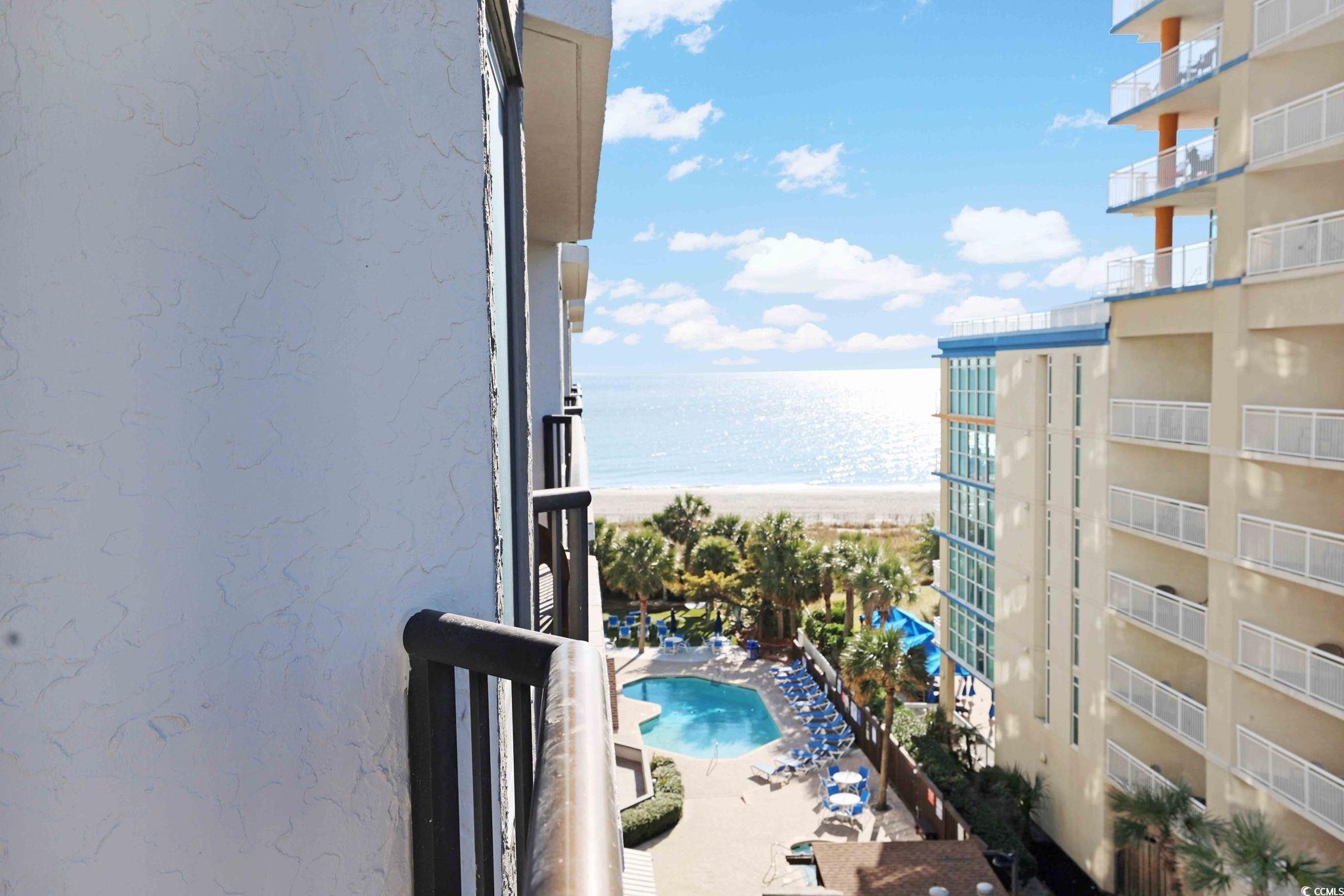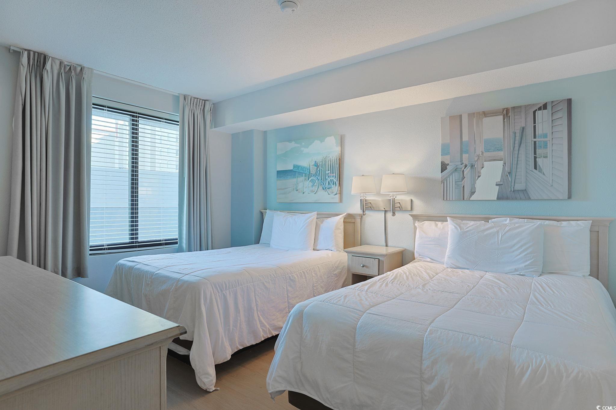 Presenting this welcoming & renovated 2 bedroom 2 bath condo that will be the gem you have been looking for in a place at the beach. This piece of paradise is located in the popular Beach Colony Resort complex. Take the elevator up to to this open floor plan condo that includes wood look LVP flooring, stylish furnishing, and a classic living/dining room combo that showcases a sliding glass door that opens up to the relaxing balcony with views & sounds of the waves breaking. The family-friendly kitchen is equipped with a stainless steel appliance package, granite counter tops, ample cabinet spaces, and a delight breakfast bar. The primary suite offers a double bi-fold door closet, a sliding glass door that leads out to the balcony, private access to the primary bath hosting a single sink vanity, a comfort station, a laundry closet with a stackable washer & dryer, and a timeless step-in shower. This delightful condo is finished with an additional bedroom and a full guest bath. This condo affords you easy access to the beach and golfing along with all of the other activities and happenings in Myrtle Beach including fun eateries, award winning off-Broadway shows, public fishing piers, and intriguing shopping adventures along the Grand Strand. Conveniently located to your everyday needs, including grocery stores, banks, post offices, medical centers, doctors’ offices, and pharmacies. Check out our state of the art 3-D Virtual Tour.