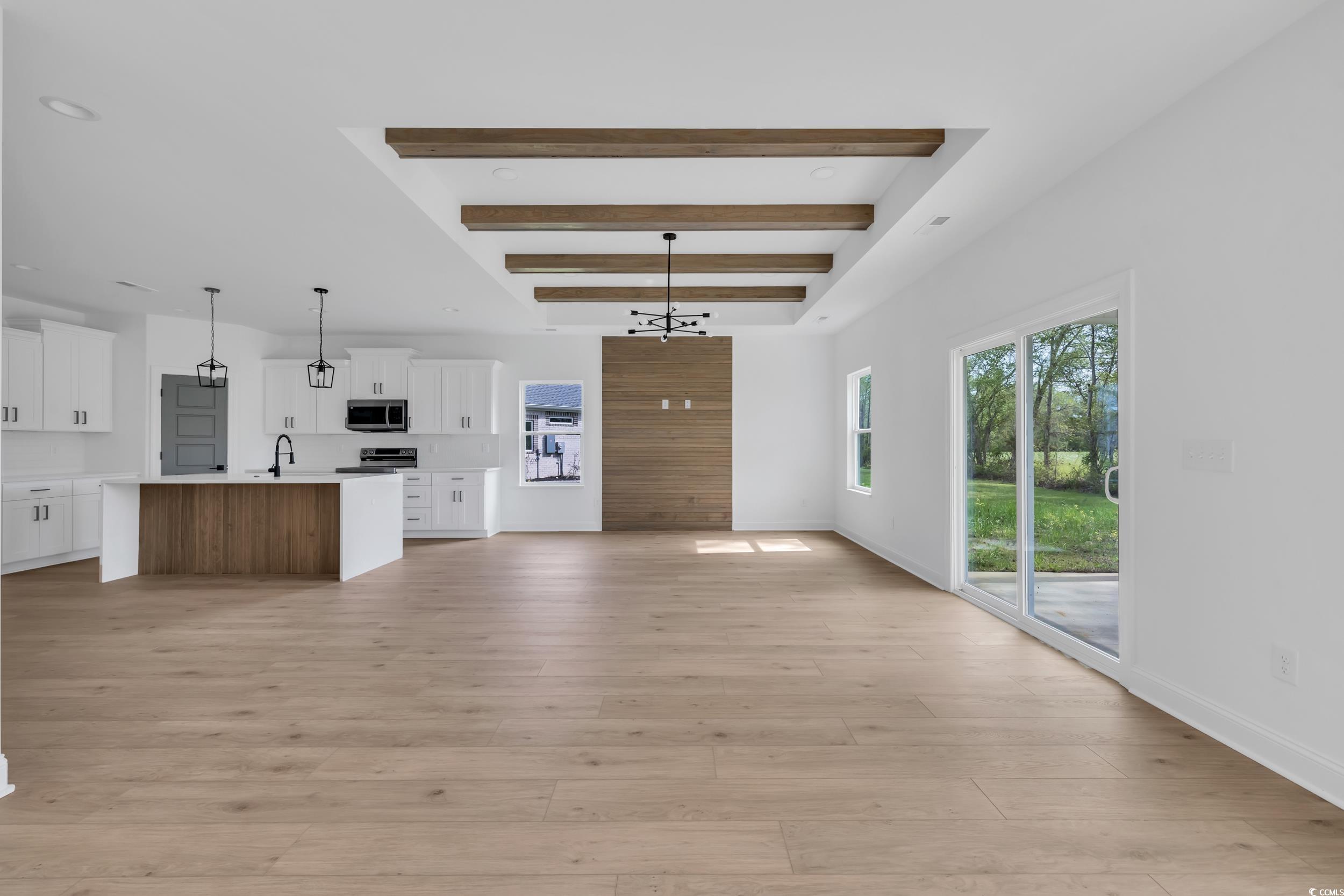 This Custom style MOVE IN READY 3 bedroom plus office 2 bathroom RANCH floor plan exudes elegance and modern upgrades. Home features an open floor plan with beautiful beams in ceiling, granite waterfall kitchen island, custom interior doors painted a darker tint to stand out, LVP Flooring throughout the home, custom upgraded tile in bathrooms and laundry room, front two bedrooms have carpet, elegant and modern lighting fixtures and plumbing fixtures throughout, custom wall trim outs, covered porch and more! Come see this home! Centrally located close to major highways, minutes from shopping, grocery, fast food, gas stations, schooling, golfing, etc. LOW HOA!