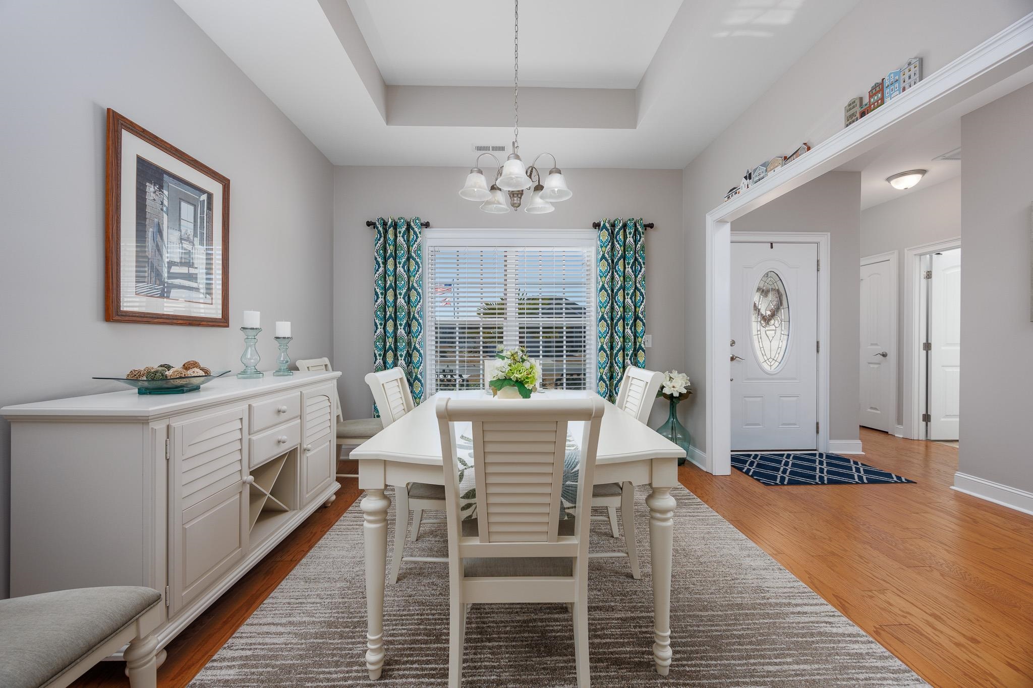 This exceptional home is located in Conway's beautiful Hillsborough Community and reflects the owners' meticulous care and attention to detail. From the moment you arrive, you'll notice the beautifully landscaped yard with its well-manicured lawn and shrubbery, maintained effortlessly by an automatic sprinkler system. The driveway, walkway, and front porch welcome you with their attractive surface coatings. Step inside to discover a thoughtfully designed split bedroom floor plan that provides privacy and functionality. The inviting foyer leads to two comfortable guest bedrooms and a full bathroom, perfect for family, visitors, or a home office. Throughout the home, you'll find quality flooring including beautiful hardwood in the main living areas, durable vinyl in the kitchen, bathrooms, and laundry room, and tile in the Carolina room. The spacious Great Room is the heart of the home, featuring a stunning vaulted cathedral ceiling and ceiling fan that creates an open and airy atmosphere ideal for relaxation and entertaining. The kitchen is a chef's delight with stainless steel appliances and solid surface countertops throughout. It features a convenient breakfast bar for casual dining and a charming breakfast nook—perfect for enjoying your morning coffee. When it's time to entertain, move the meal to the formal dining room with its elegant tray ceiling, providing the perfect setting for hosting dinner parties and special occasions. The Carolina room is a true bonus space, heated and cooled by an efficient mini-split system for year-round comfort. It features specialty shades that block direct sun while maintaining your view and privacy—allowing you to see out while preventing others from seeing in. With its abundant afternoon sun, this room is perfect for relaxing, entertaining, or enjoying your favorite hobbies. The spacious primary suite offers generous space and comfort, enhanced by an elegant tray ceiling. It features both a walk-in closet and an additional storage closet for all your needs. The ensuite bathroom is thoughtfully designed with double sinks, a walk-in shower, and a convenient linen closet. Practical features abound throughout this home. The spacious laundry room is both functional and well-organized, featuring cabinets over the washer and dryer area, an ample broom closet for storage, and a convenient drop zone as you enter from the garage—perfect for keeping everything tidy. The spacious 23x24 garage is a dream for hobbyists and organizers alike, equipped with a workbench, cabinets, and multiple shelving units for ample storage. It also features a lifestyle pull-down screen, adding versatility to this well-appointed space. Step outside to your backyard oasis, where the back patio—finished with surface coatings—provides a perfect spot for outdoor dining, relaxing, or entertaining guests. The Hillsborough Community offers wonderful amenities, including a clubhouse, pool, and a versatile multi-purpose court that accommodates pickleball, basketball, bocce ball, cornhole, and tennis—providing endless opportunities for recreation and social activities. This meticulously maintained home combines style, comfort, and convenience in one of Conway's most desirable communities. Don't miss the opportunity to make it yours—schedule your showing today!