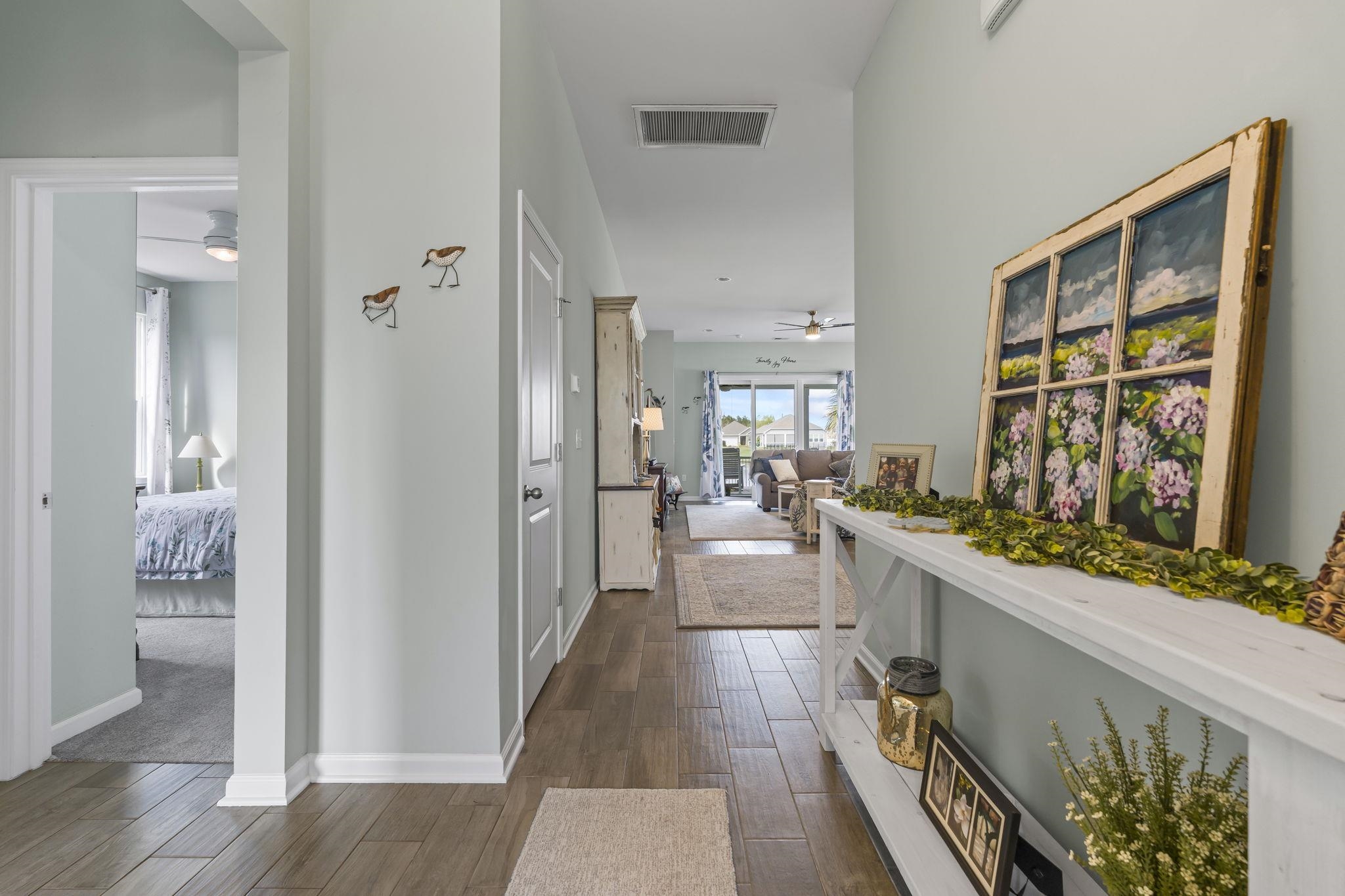Welcome to your dream home in The Farm at Timberlake, where comfort, style, and location come together beautifully. This meticulously upgraded Eaton floor plan offers 3 bedrooms, 2 full bathrooms, and a bright open-concept layout designed for modern living. The main living areas feature wood-look tile flooring, adding both durability and elegance. The gourmet kitchen is a chef's delight, complete with stainless steel appliances, beautiful countertops, ample cabinetry, and convenient pull-out drawers for easy access and organization. Relax and take in peaceful lake views from the large, screened porch, the perfect setting for morning coffee or evening unwinding. The fenced backyard provides both privacy and space for outdoor enjoyment enhanced by custom stone landscaping. Additional upgrades include new carpeting, plantation shutters, a garage door screen, a Rinnai tankless water heater, and a spacious two-car garage. Located just minutes from shopping, dining, and a short drive to the beautiful beaches of Myrtle Beach, this home offers the perfect balance of a friendly community atmosphere and convenient coastal living.
