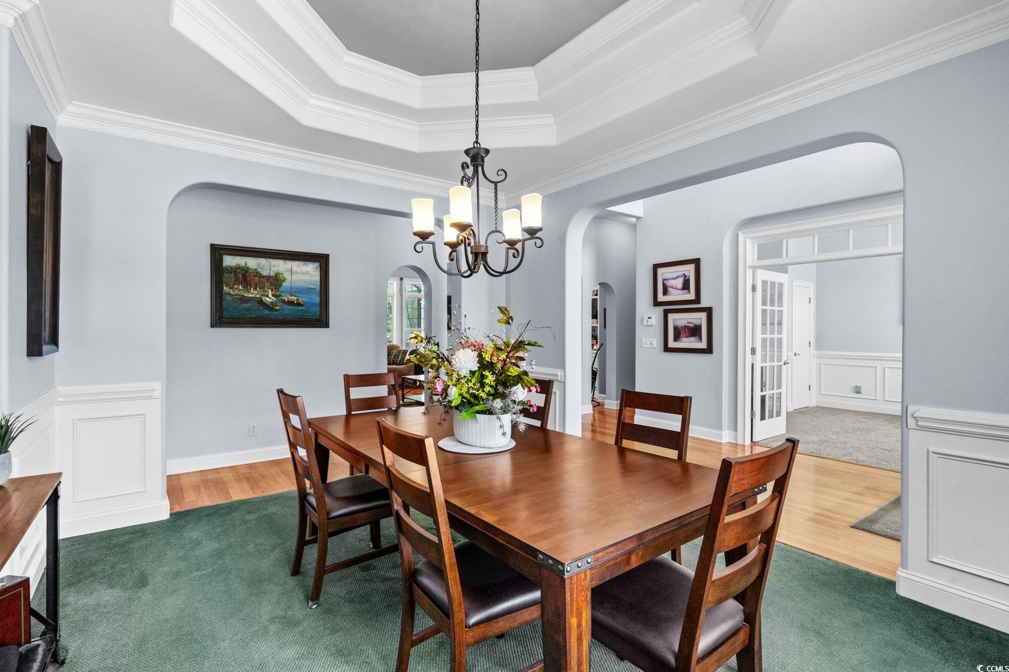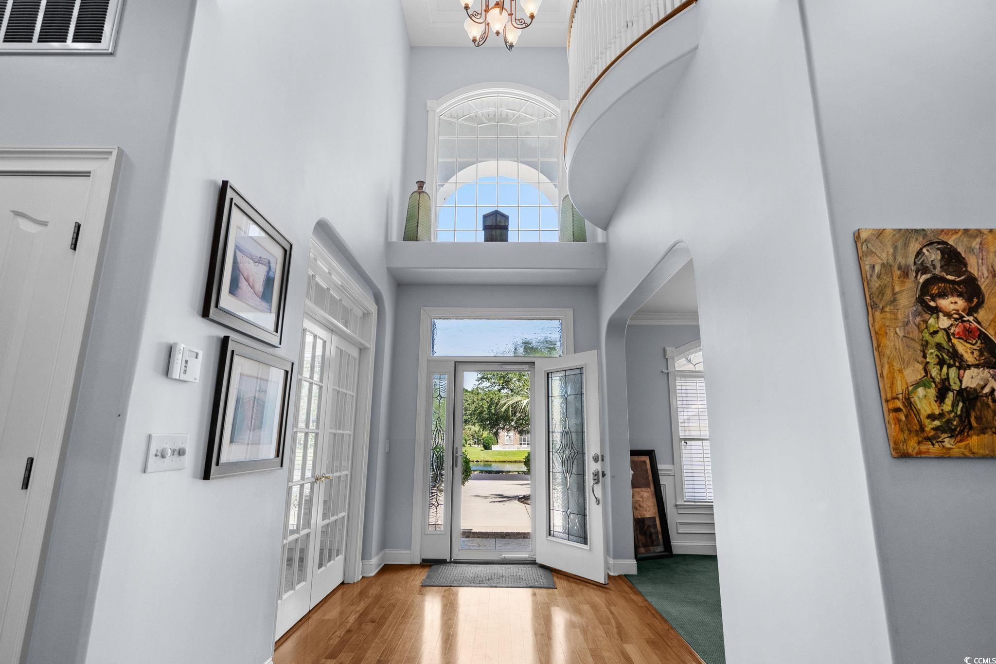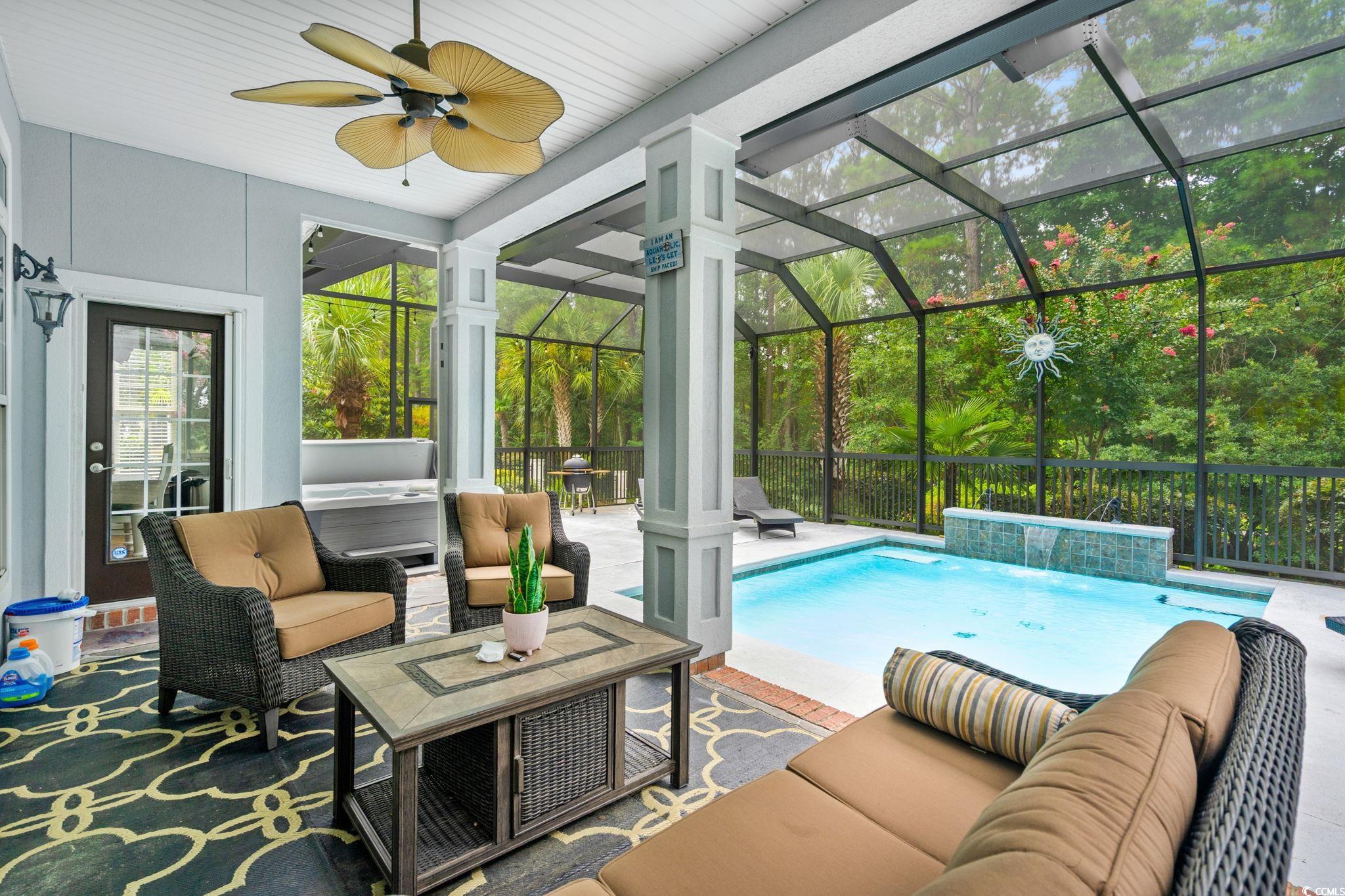 Welcome to this stunning two-story home situated on a premium golf course lot in the exclusive gated community of Leatherleaf, within the prestigious Barefoot Resort. This beautiful home offers the perfect blend of space, comfort and resort-style living. This home features 4 bedrooms / 3.5 bathrooms, den/office, formal dining room with tray ceiling, large eat-in kitchen with breakfast bar and work island that is open to the family room, plus your very own backyard oasis, with private inground pool, hot tub and covered Liani. Retreat to your first-floor primary bedroom with its own en-suite and walk-in closet. Your family and guests will enjoy their privacy on the 2nd floor where bedrooms two and three share a convenient Jack and Jill bathroom, while bedroom four enjoys the luxury of its own ensuite. There is also an oversized bonus room on the second level, perfect for a game room, home theater or additional living space. Plenty of storage is provided in the oversized side load garage. A TRANSFERABLE GOLF MEMBERSHIP is attached to the property for a small fee. Barefoot HOA fees are among the best on the Grand Strand. They include access to the Residence Club with a full-time activities director as well as an exercise facility, large outdoor swimming pool, tennis/pickleball, basketball courts and playground for kids. The HOA dues also cover basic cable, wireless internet and the best part is Barefoot's very own Private Beach Cabana for owners only with gated parking and seasonal shuttle service, and much more. Barefoot is located just minutes from the ocean and close to all that North Myrtle Beach and the surrounding area has to offer. Here you will find endless choices of activities, including golf, restaurants, shopping and entertainment for the whole family!