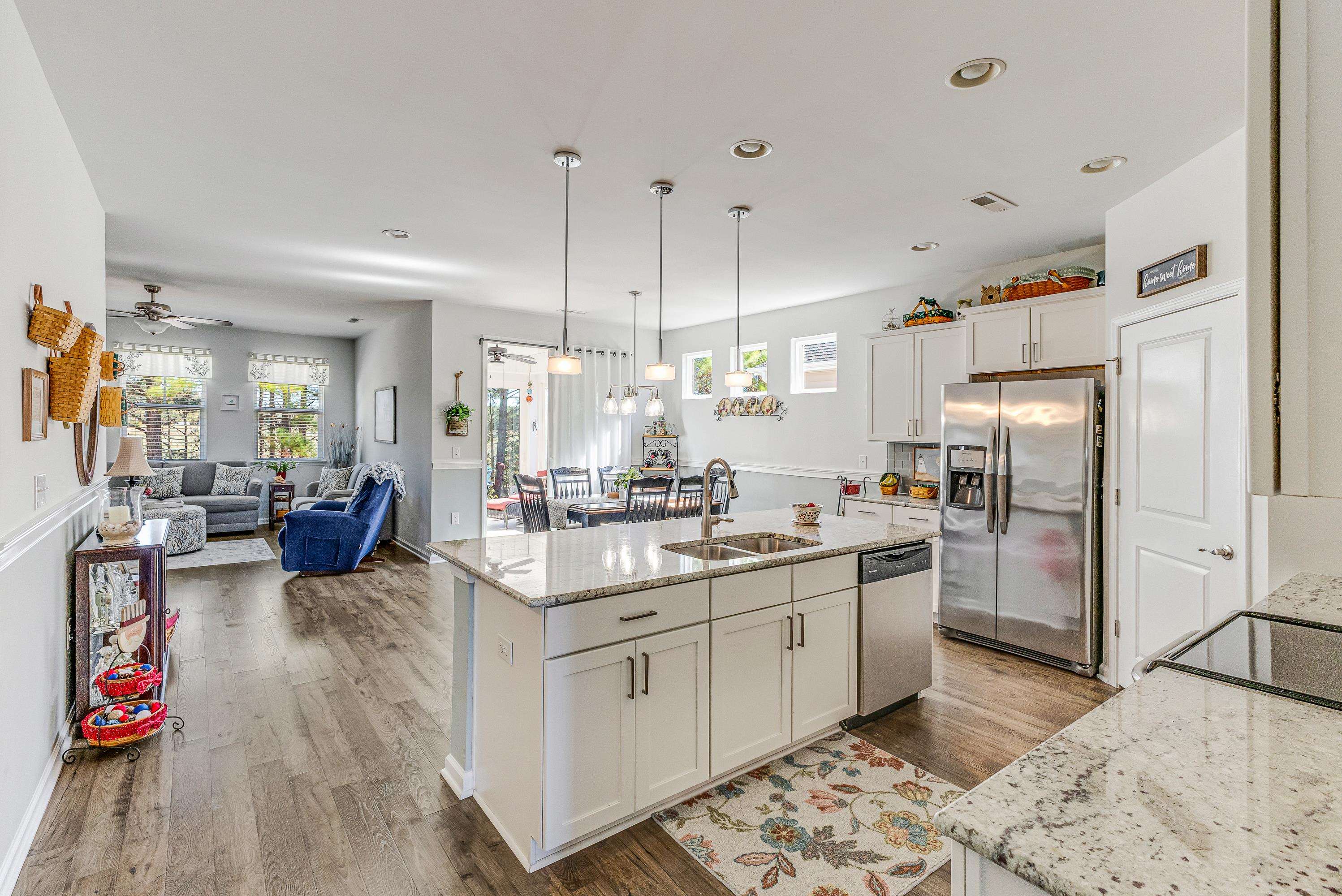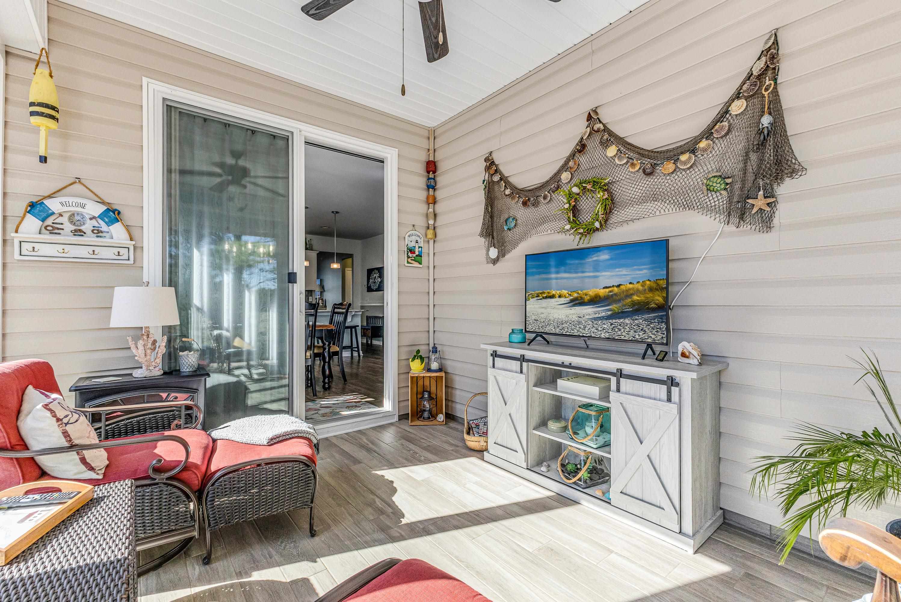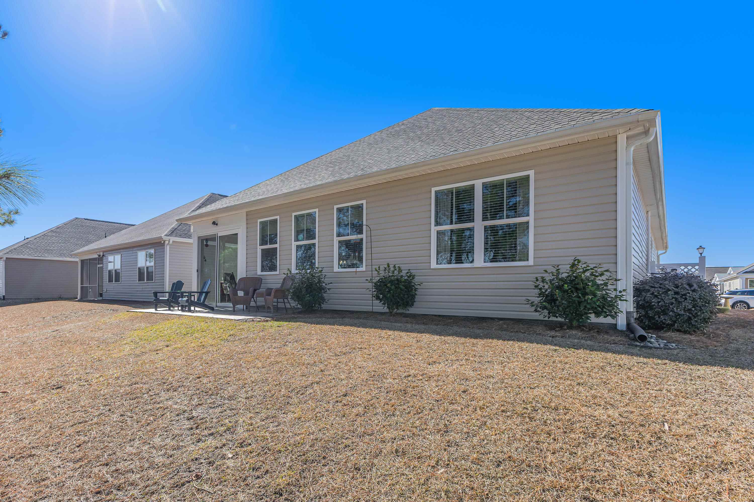Better than new and beautifully maintained, this exceptional 3 bedroom, 2 bath home is located in the desirable Freedom Homes section of The Farm. Designed for comfort and easy living, the home features a bright, open floor plan with a spacious kitchen offering abundant cabinetry, granite countertops, tiled backsplash, work island with a breakfast bar, a huge walk-in pantry, and a welcoming dining area...perfect for everyday living and entertainment. Enjoy carefree laminate flooring throughout the living area and the master bedroom, with comfortable carpet in the guest bedrooms and tile flooring in the bathrooms and laundry room. A versatile flex room provides the ideal space for a home office, den, hobby room or an optional 4th bedroom (no closet). A beautiful, light-filled Carolina room is the perfect spot for morning coffee, a good book or just enjoying the tranquil backyard setting. The split bedroom floor plan has spacious guest rooms and a wonderful master bathroom. Cozy living room with gas log fireplace and a spacious dining area. The large rear patio offers cool breezes and evening shade for outdoor get-togethers. This move-in ready home combines modern features, functional design, and low-maintenance living in a highly sought after community. Affordable HOA fees include pool, cabana area, fitness room, internet, lawn maintenance, pruning of trees and shrubs and lawn irrigation. Low taxes and utilities. Home is perfectly located near the area's beaches, shopping, dining, golf courses and schools!