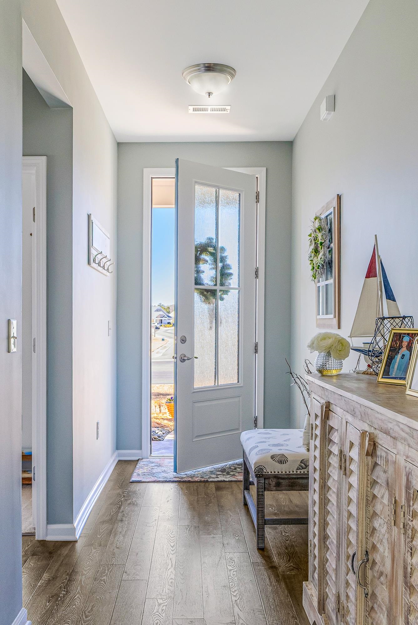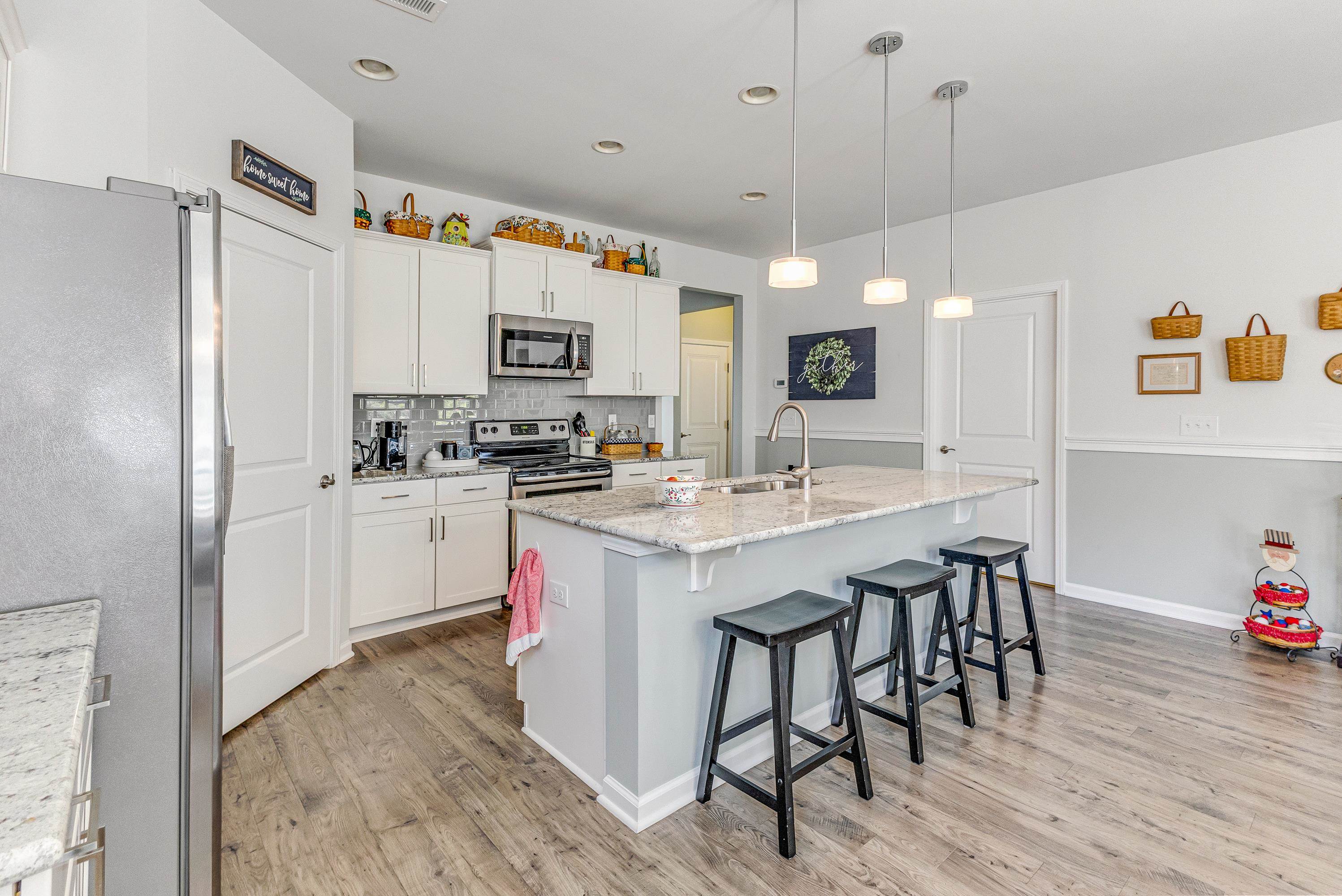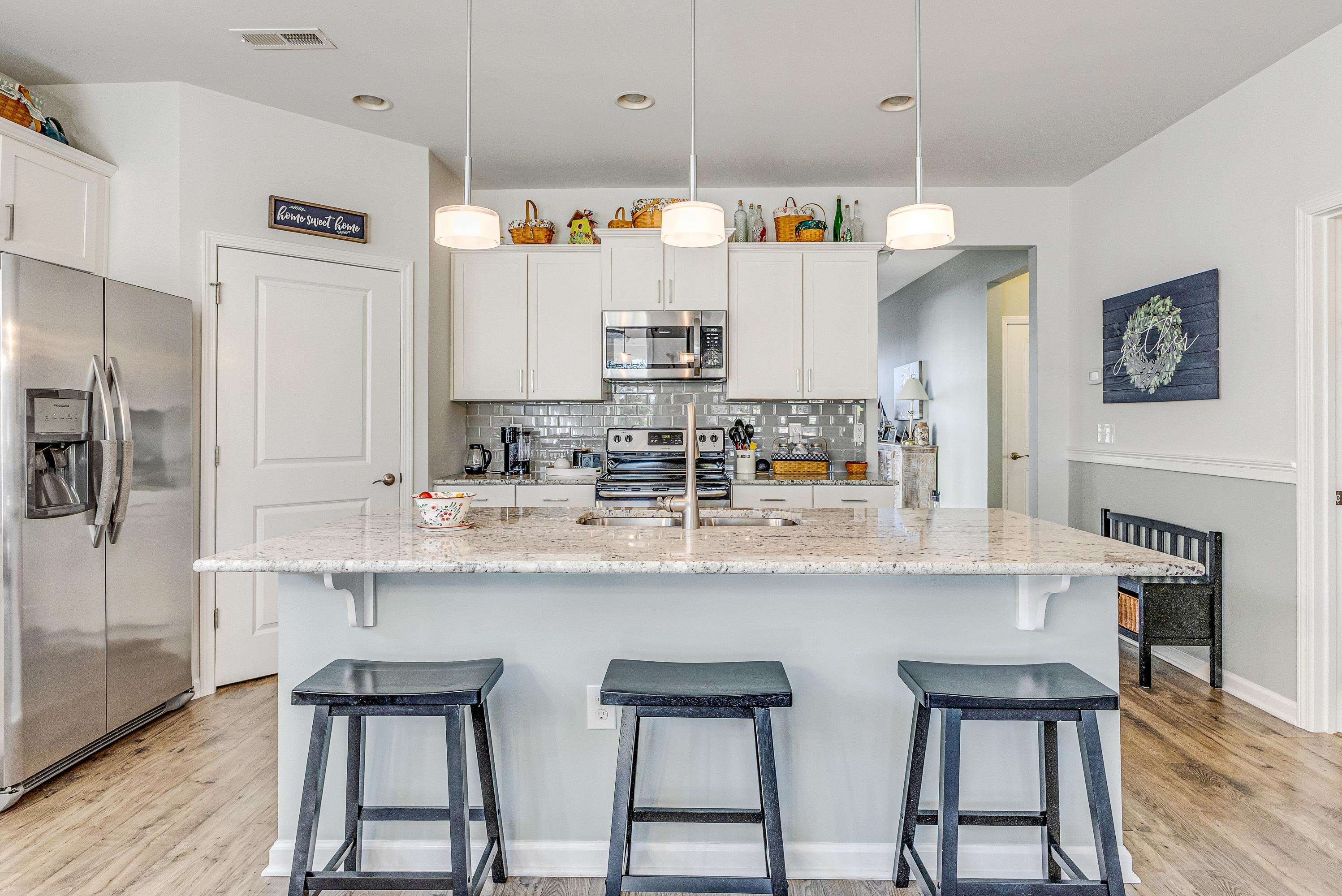 Better than new and beautifully maintained, this exceptional 3 bedroom, 2 bath home is located in the desirable Freedom Homes section of The Farm. Designed for comfort and easy living, the home features a bright, open floor plan with a spacious kitchen offering abundant cabinetry, granite countertops, tiled backsplash, work island with a breakfast bar, a huge walk-in pantry, and a welcoming dining area...perfect for everyday living and entertainment. Enjoy carefree laminate flooring throughout the living area and the master bedroom, with comfortable carpet in the guest bedrooms and tile flooring in the bathrooms and laundry room. A versatile flex room provides the ideal space for a home office, den, hobby room or an optional 4th bedroom (no closet). A beautiful, light-filled Carolina room is the perfect spot for morning coffee, a good book or just enjoying the tranquil backyard setting. The split bedroom floor plan has spacious guest rooms and a wonderful master bathroom. Cozy living room with gas log fireplace and a spacious dining area. The large rear patio offers cool breezes and evening shade for outdoor get-togethers. This move-in ready home combines modern features, functional design, and low-maintenance living in a highly sought after community. Affordable HOA fees include pool, cabana area, fitness room, internet, lawn maintenance, pruning of trees and shrubs and lawn irrigation. Low taxes and utilities. Home is perfectly located near the area's beaches, shopping, dining, golf courses and schools!