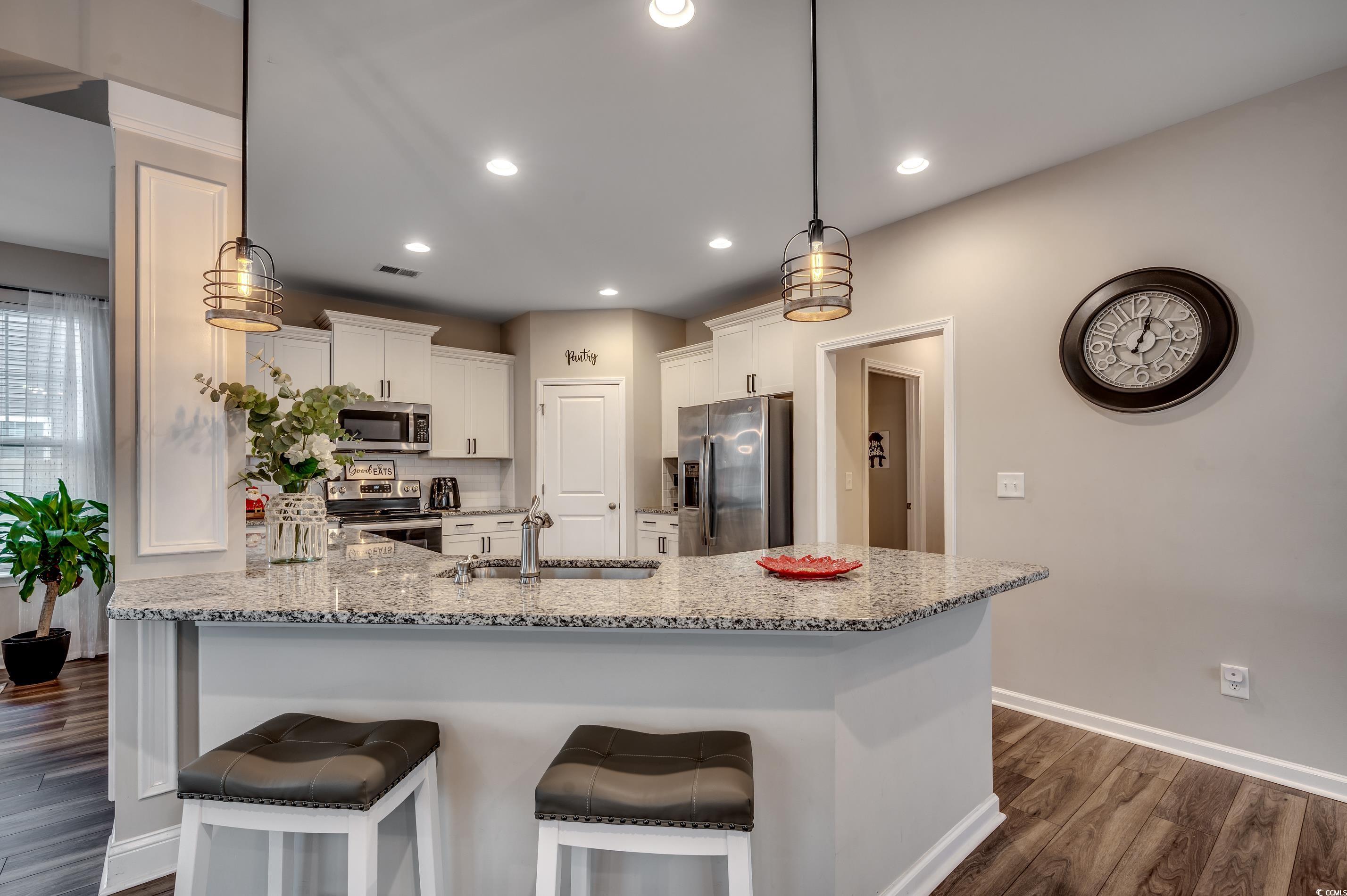 Step inside this beautiful home and be greeted by a charming foyer that flows effortlessly into a spacious, open-concept great room—perfect for entertaining and everyday living. The heart of the home is the kitchen, where the curved granite countertop has been upgraded to a single, expansive level, creating a massive counter space and seating for at least five. The kitchen also boasts stunning white cabinetry, a classic tile backsplash, stainless steel appliances, and a pantry for ample storage. Just off the kitchen, you’ll find a versatile bonus area designed for a home office and drop zone—practical and stylish. The adjacent family room exudes farmhouse charm with custom built-ins and shiplap details framing the cozy gas fireplace. Hosting dinner parties is a breeze in the formal dining room, which offers a seamless flow for entertaining. Step outside to enjoy the screened-in porch, leading to an oversized patio and a fully fenced backyard—spacious enough to add a pool! The large garage is a dream for hobbyists, featuring built-in shelving and a 220V outlet for all your projects. Upstairs, you’ll discover a generously sized master suite, two large guest bedrooms, and a loft area perfect for a playroom, rec room, or additional lounge space. This home is nestled in the highly sought-after Clear Pond community, where resort style amenities are abound! Clear Pond offers two sparkling pools, a clubhouse, a fitness center, walking trails around a serene lake, playgrounds and more. Conveniently located near top-rated schools, Coastal Carolina University, Conway Hospital, shopping, dining, golf, and just minutes from the Grand Strand’s beautiful beaches. Don't delay - arrange for a private showing today!