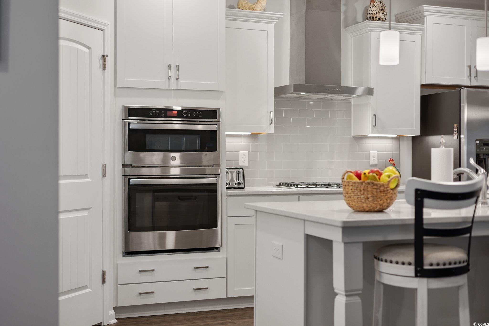 Welcome to a residence where refined design, modern comfort, and effortless sophistication come together nestled within one of the Grand Strand’s most coveted communities. This elegantly appointed 3-bedroom, 2.5-bath home with a versatile bonus room offers the perfect harmony of luxury and livability. From the moment you step onto the charming front porch, you’ll sense the attention to detail and timeless style that defines this home. Inside, an inviting foyer opens to a flexible space—ideal for a formal dining room, executive office, or serene study. The main living area showcases exquisite architectural ceiling beams, expansive windows that bathe the room in natural light, and a stunning gas fireplace that anchors the space with warmth and sophistication. At the heart of the home, the gourmet kitchen impresses with an oversized quartz island, designer tile backsplash, five-burner gas cooktop, built-in wall oven and microwave, and a spacious breakfast area overlooking the private backyard. Whether entertaining guests or preparing a quiet family dinner, this space combines beauty, function, and effortless flow. The first-floor primary suite serves as a private retreat, complete with a luxurious tiled shower, soft-step walk-in tub, dual vanities, and a generous walk-in closet. Throughout the main level, luxury vinyl plank flooring adds an elevated touch, while custom tile enhances each bathroom with lasting elegance. Upstairs, two additional bedrooms, a full bath, and a cozy loft offer flexible living—perfect for a media room, playroom, or guest retreat. Ample attic storage ensures practicality matches the home’s polished design. Outdoors, your personal oasis awaits. The screened-in porch, featuring a second gas fireplace, invites year-round enjoyment, while the paved patio provides the perfect setting for evening gatherings under the stars. A fully fenced backyard offers space for pets or play, enhanced by an in-ground sprinkler system and a serene, wooded backdrop for added privacy. Additional highlights include a two-car garage, custom window treatments by Budget Blinds, wood-tread stairs, upgraded lighting, and a whole-house Generac generator—ensuring comfort and peace of mind in every season. Energy-efficient upgrades such as a 15-SEER HVAC system and R-38 insulation deliver sustainability without compromise. Located just minutes from premier dining, boutique shopping, championship golf, and the area’s best beaches, this home offers a lifestyle of convenience and distinction. With Highway 31 nearby, you’ll enjoy seamless access to all the Grand Strand has to offer—from North Myrtle Beach to Murrells Inlet and beyond. This is more than a home—it’s a refined sanctuary designed for those who appreciate quality, privacy, and style. Schedule your private showing today and experience luxury coastal living at its finest.