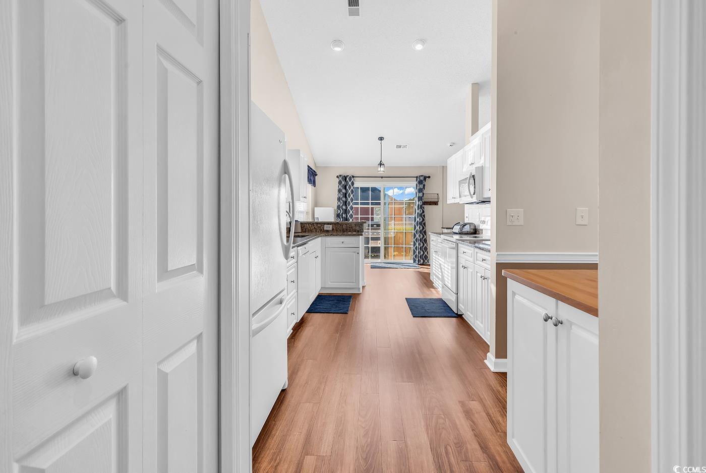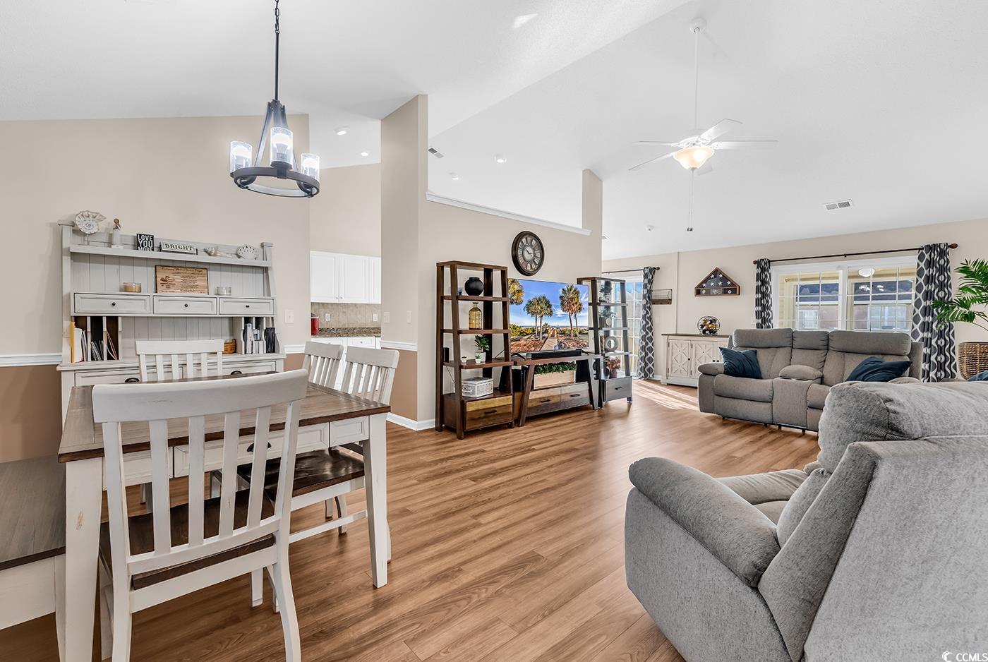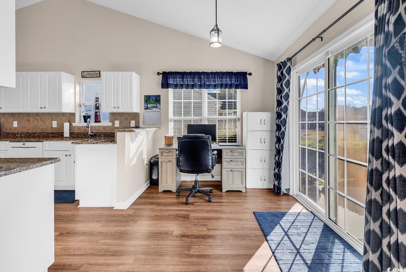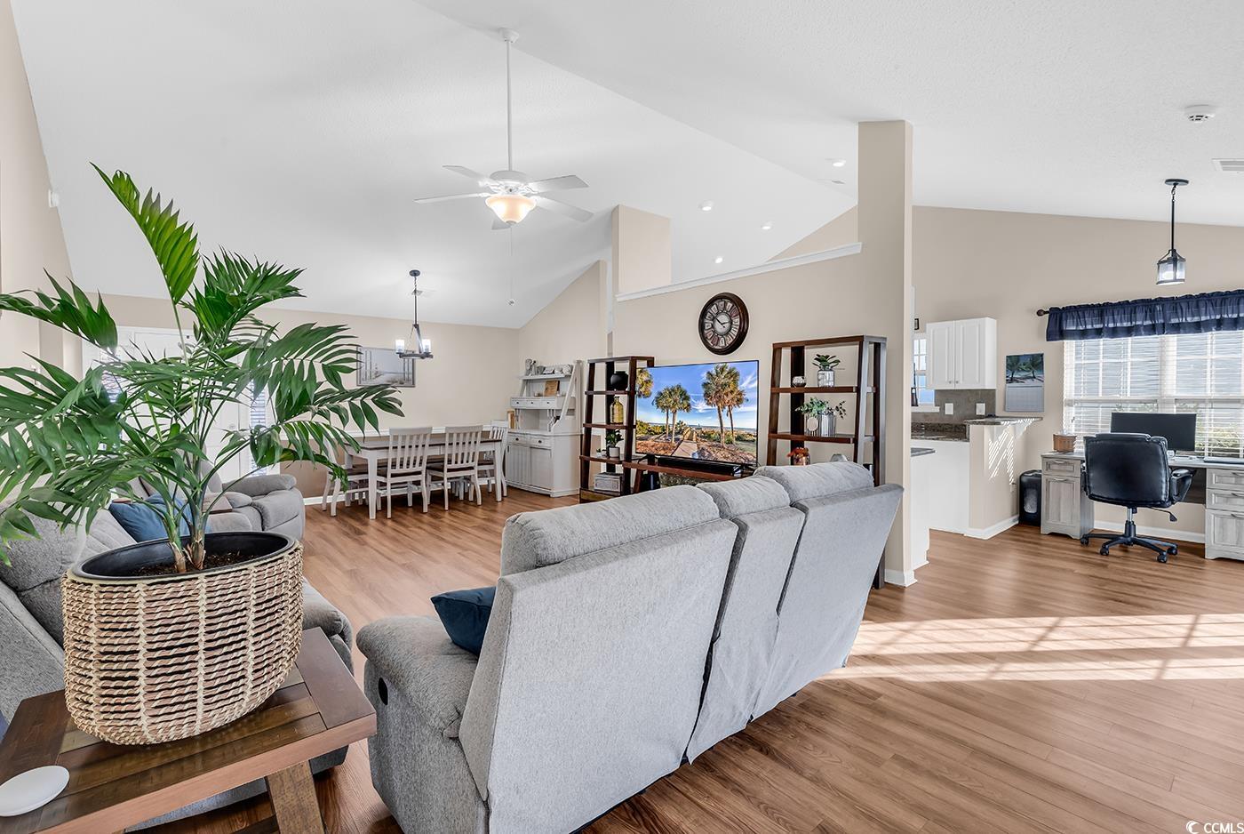 Open House Sunday Nov. 16th from 1-3 pm. Welcome to this 3-bedroom, 2-bath ranch in the desirable Queen’s Harbour community, offering single-level living at its best. Built in 2005 and thoughtfully updated, this move-in-ready home features a split floor plan and a spacious living room with a vaulted ceiling and beautiful luxury vinyl plank flooring, creating an open and inviting atmosphere the moment you step inside. The large kitchen is ideal for everyday living and entertaining, featuring abundant white cabinetry, granite countertops, a stylish tiled backsplash, a breakfast bar, a pantry, and a cozy breakfast table area. Sliding glass doors lead directly to the rear cement patio—perfect for grilling, relaxing, or enjoying the Carolina sunshine. An attached sunroom with EZ Breeze windows expands your living space and offers a bright, comfortable retreat year-round. The private primary en-suite features a large walk-in closet and a walk-in tiled shower, providing comfort and convenience. This well-maintained home also includes a new roof, HVAC replaced in 2018, and a new hot water heater installed in 2024, giving you peace of mind for years to come. Queen’s Harbour is a beautifully maintained community known for its sidewalk-lined streets, making it perfect for morning walks, bike rides, or evening strolls. Ideally located near shopping, dining, Market Common, golf, and the beautiful beaches of Myrtle Beach, this home truly offers the best of coastal living.