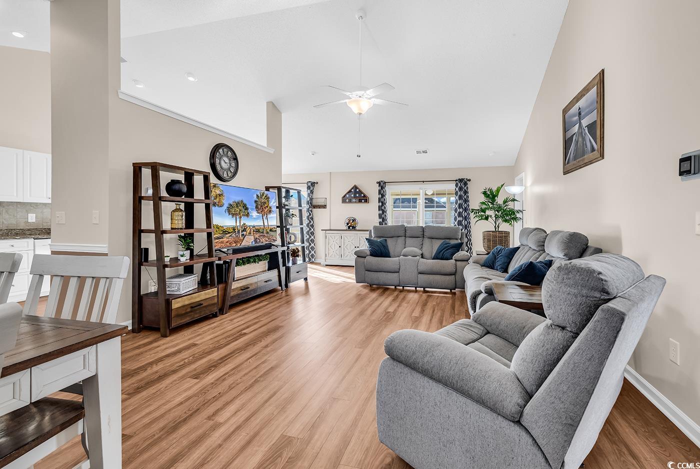Welcome to this 3-bedroom, 2-bath ranch in the desirable Queen’s Harbour community, offering single-level living at its best. Built in 2005 and thoughtfully updated, this move-in-ready home features a split floor plan and a spacious living room with a vaulted ceiling and beautiful luxury vinyl plank flooring, creating an open and inviting atmosphere the moment you step inside. The large kitchen is ideal for everyday living and entertaining, featuring abundant white cabinetry, granite countertops, a stylish tiled backsplash, a breakfast bar, a pantry, and a cozy breakfast table area. Sliding glass doors lead directly to the rear cement patio—perfect for grilling, relaxing, or enjoying the Carolina sunshine. An attached sunroom with EZ Breeze windows expands your living space and offers a bright, comfortable retreat year-round. The private primary en-suite features a large walk-in closet and a walk-in tiled shower, providing comfort and convenience. This well-maintained home also includes a new roof, HVAC replaced in 2018, and a new hot water heater installed in 2024, giving you peace of mind for years to come. Queen’s Harbour is a beautifully maintained community known for its sidewalk-lined streets, making it perfect for morning walks, bike rides, or evening strolls. Ideally located near shopping, dining, Market Common, golf, and the beautiful beaches of Myrtle Beach, this home truly offers the best of coastal living.