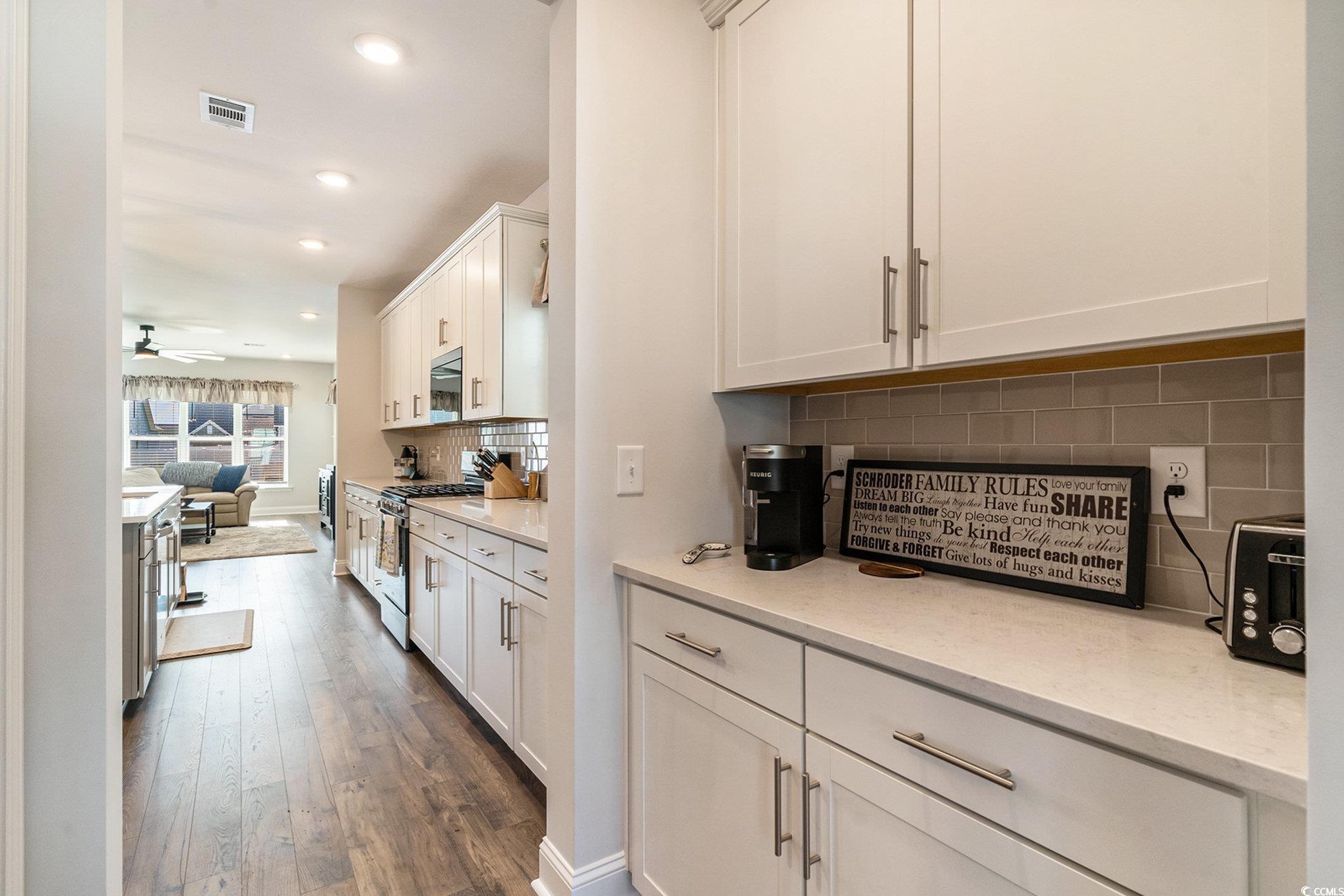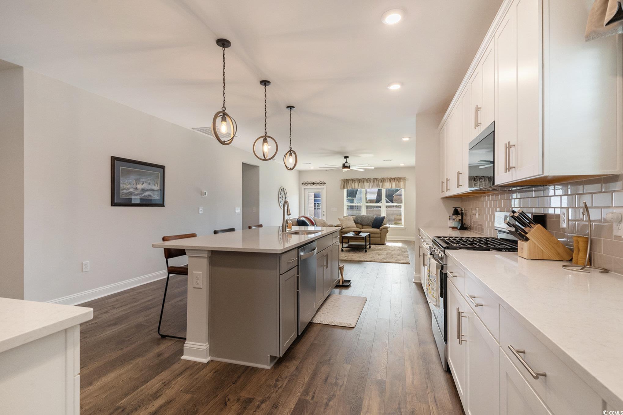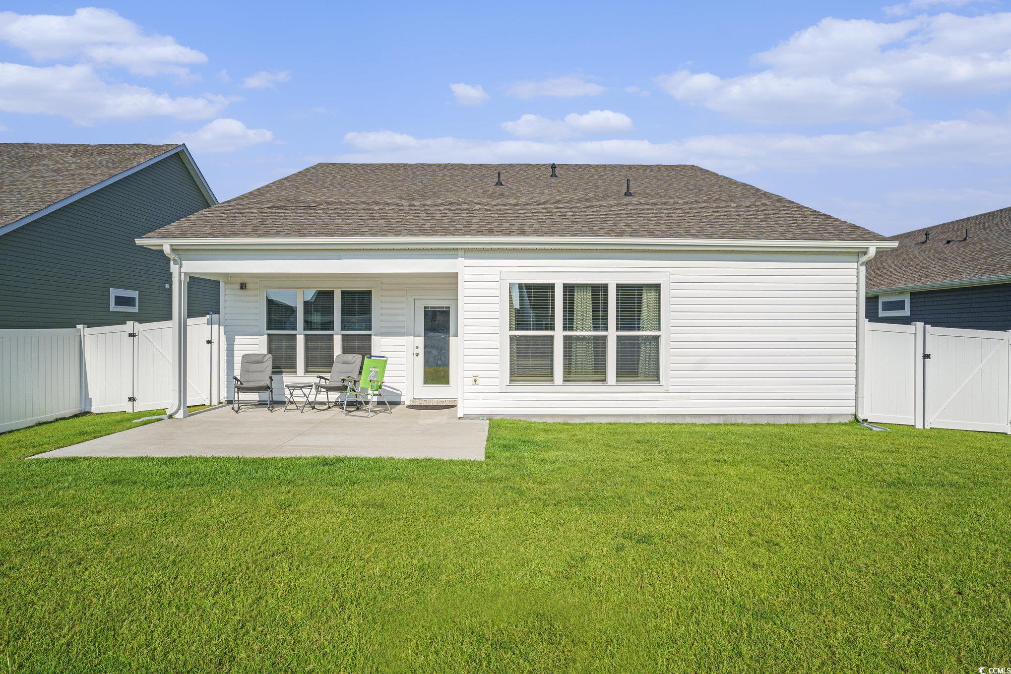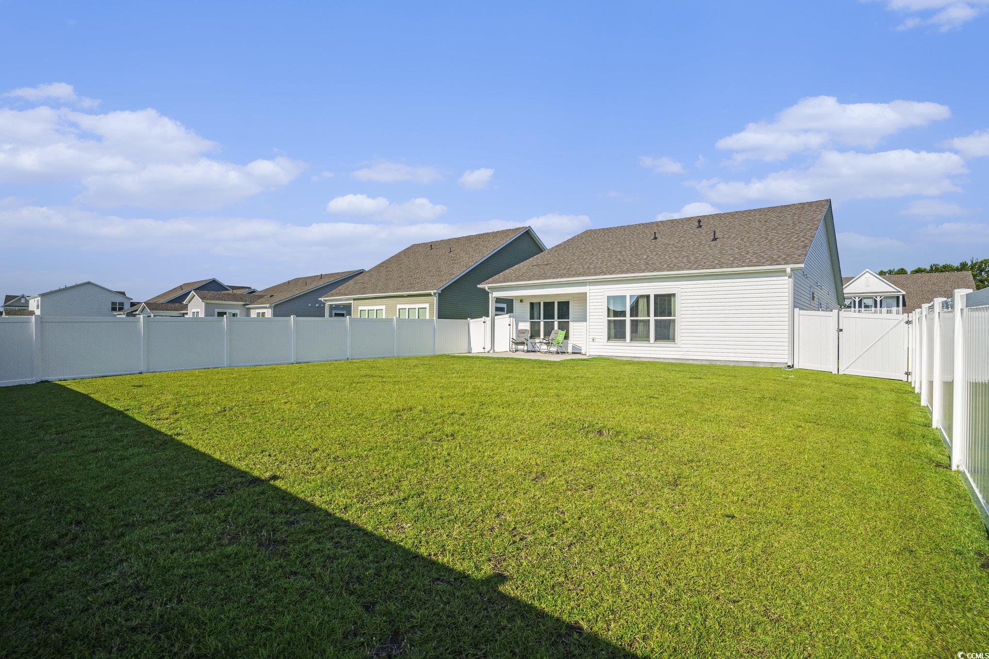 Welcome to your brand new dream home in the sought-after community of Bella Vita! Built in 2025, this stunning residence offers modern design, open-concept living, and high-end finishes throughout. Step inside to find luxury vinyl plank flooring, abundant natural light, and a large fenced in backyard perfect for your needs. As you step inside you’ll instantly be greeted by a bright and welcoming foyer. To your right, a formal dining room with large windows sets the stage for family gatherings or intimate dinners. Continuing forward, you pass a spacious pantry and enter the heart of the home—the open-concept living area and kitchen. The gourmet kitchen is a chef’s delight, featuring sleek countertops, white shaker cabinets, stainless steel appliances, a gas range, stylish tile backsplash, and an oversized island with bar seating. A walk-in pantry and convenient butler’s station provide additional storage and prep space. The kitchen flows seamlessly into the expansive living room, where natural light pours in through multiple windows, and a glass door leads to the covered back patio and fully fenced yard—perfect for relaxing or entertaining outdoors. From the living room, step into the private primary suite which is a true retreat, showcasing a tray ceiling, large windows, and a spa-like ensuite bathroom with dual sink vanities, and a large tiled walk-in shower. Additional bedrooms are generously sized, offering comfort for guests or home office space. The home also features a separate laundry room, two-car garage, and energy-efficient construction. Enjoy your mornings or evenings in the private, fully fenced backyard—ideal for pets, play, or relaxation. The Bella Vita community offers wonderful amenities, including an outdoor pool, all with low HOA fees. Located just minutes from shopping, dining, golf, and the sandy shores of Myrtle Beach, this home blends comfort, style, and convenience in one perfect package. From the first step in, to the last look at the backyard, this home is designed for comfort, style, and easy living. Don’t miss the opportunity to own your slice of paradise today. Buyer is responsible for verification.
