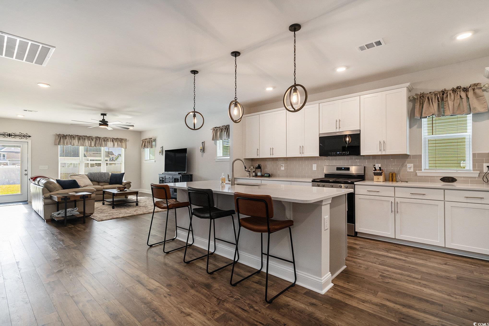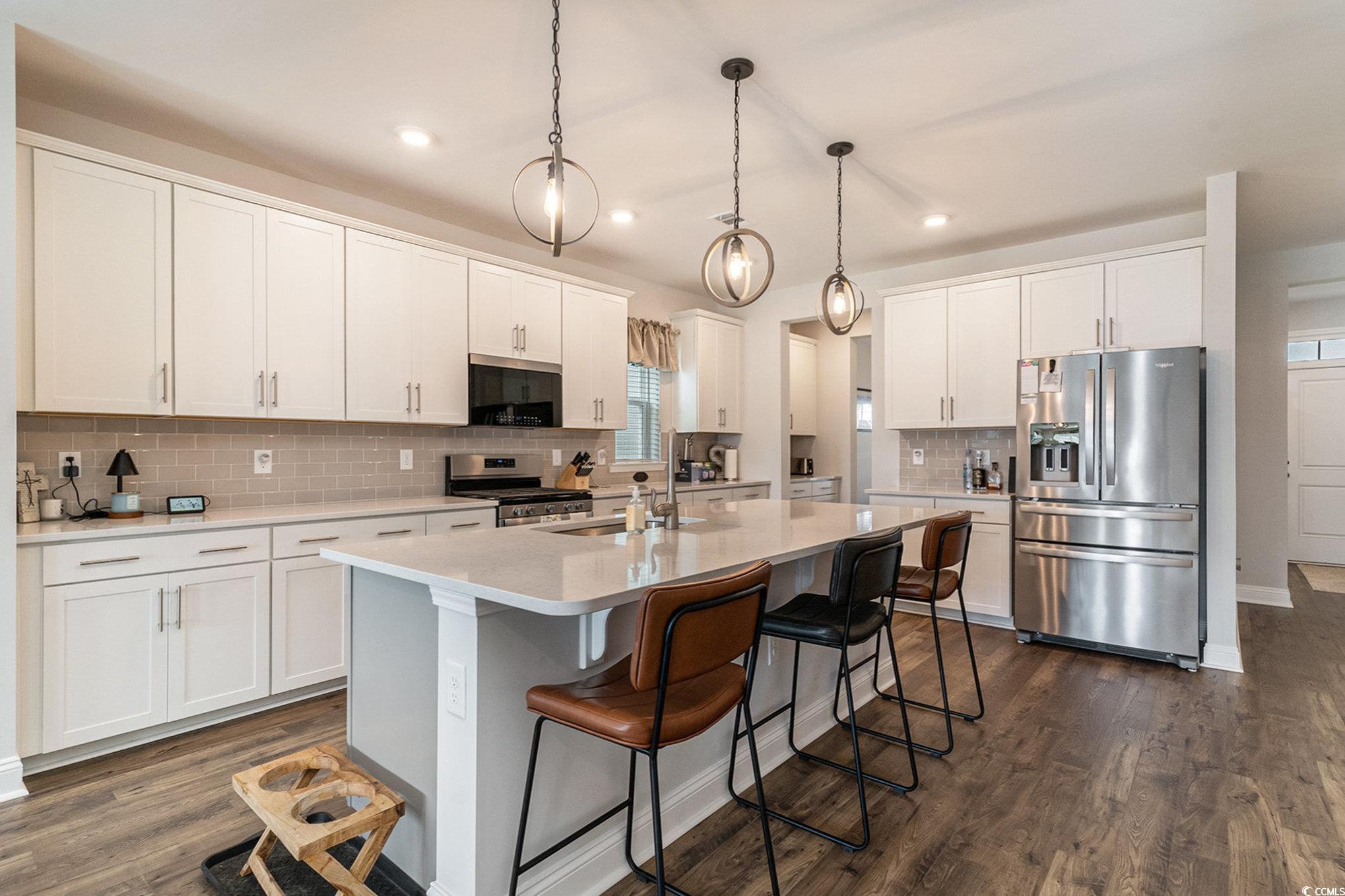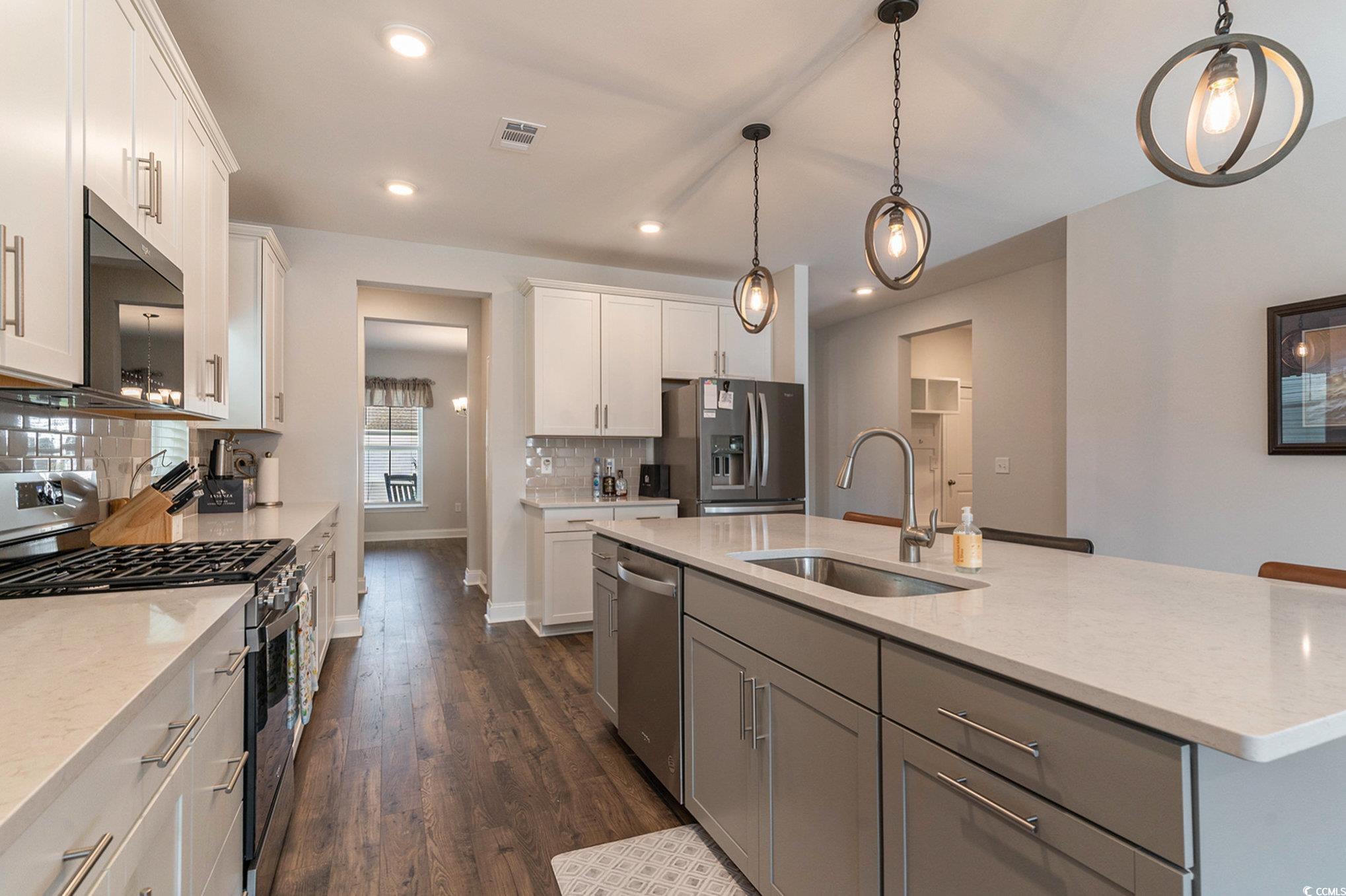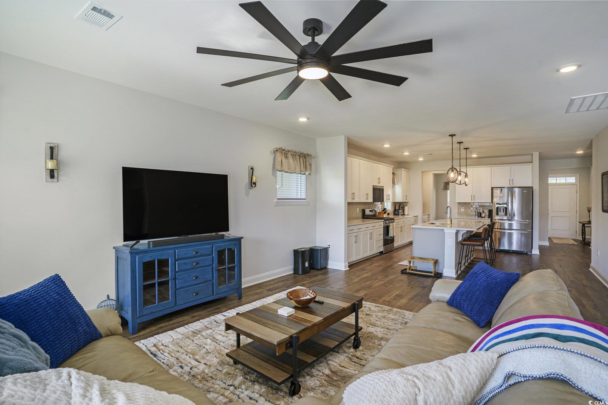 Welcome to your brand new dream home in the sought-after community of Bella Vita! Built in 2025, this stunning residence offers modern design, open-concept living, and high-end finishes throughout. Step inside to find luxury vinyl plank flooring, abundant natural light, and a large fenced in backyard perfect for your needs. As you step inside you’ll instantly be greeted by a bright and welcoming foyer. To your right, a formal dining room with large windows sets the stage for family gatherings or intimate dinners. Continuing forward, you pass a spacious pantry and enter the heart of the home—the open-concept living area and kitchen. The gourmet kitchen is a chef’s delight, featuring sleek countertops, white shaker cabinets, stainless steel appliances, a gas range, stylish tile backsplash, and an oversized island with bar seating. A walk-in pantry and convenient butler’s station provide additional storage and prep space. The kitchen flows seamlessly into the expansive living room, where natural light pours in through multiple windows, and a glass door leads to the covered back patio and fully fenced yard—perfect for relaxing or entertaining outdoors. From the living room, step into the private primary suite which is a true retreat, showcasing a tray ceiling, large windows, and a spa-like ensuite bathroom with dual sink vanities, and a large tiled walk-in shower. Additional bedrooms are generously sized, offering comfort for guests or home office space. The home also features a separate laundry room, two-car garage, and energy-efficient construction. Enjoy your mornings or evenings in the private, fully fenced backyard—ideal for pets, play, or relaxation. The Bella Vita community offers wonderful amenities, including an outdoor pool, all with low HOA fees. Located just minutes from shopping, dining, golf, and the sandy shores of Myrtle Beach, this home blends comfort, style, and convenience in one perfect package. From the first step in, to the last look at the backyard, this home is designed for comfort, style, and easy living. Don’t miss the opportunity to own your slice of paradise today. Buyer is responsible for verification.