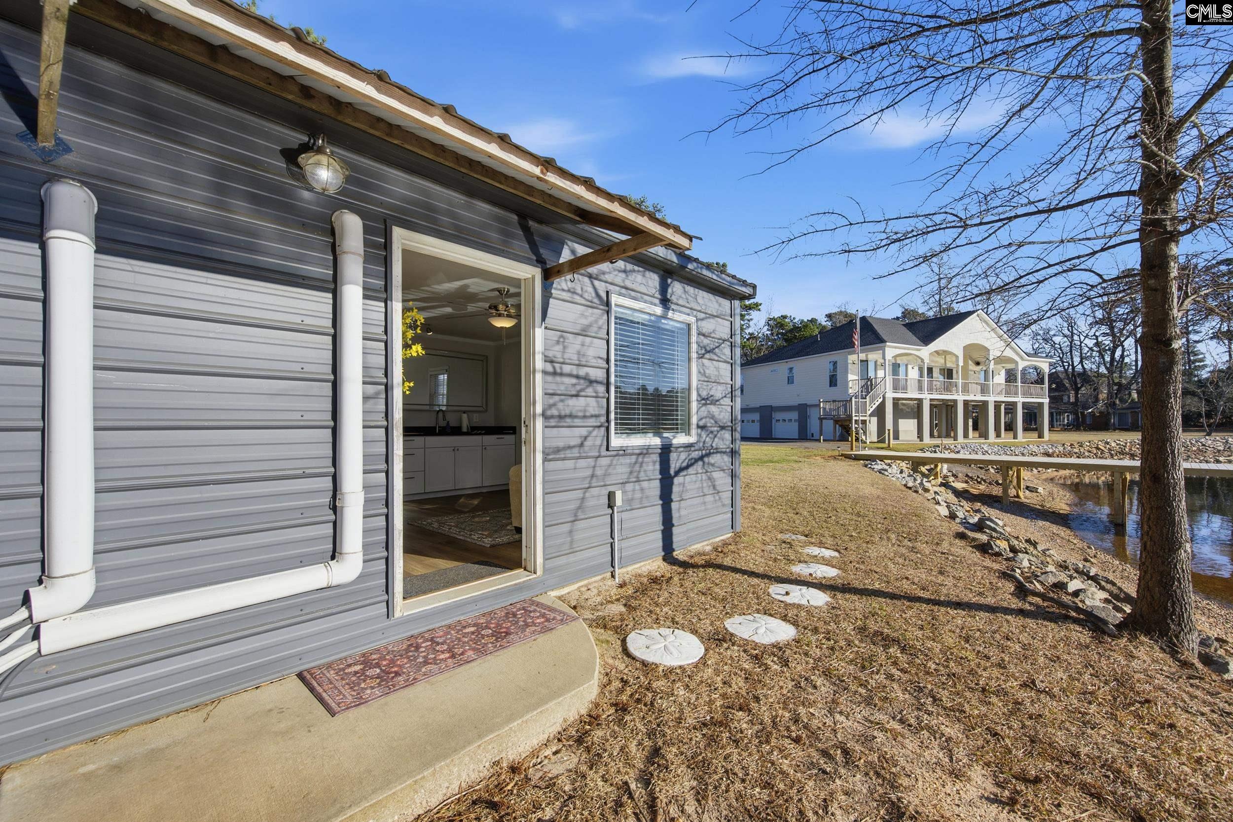 Water views from both the front and back of the home set this Lake Murray property apart — sunrise in one direction, sunset in the other! Set just over 1 acre in a quiet no-wake cove, this no HOA property features a 2022-built lakeside guest house, new private dock, and boat ramp. Before you even step inside the main home, the flexibility here stands out. The separate 350 SF 1-bedroom, 1-bath guest cottage sits right on the water and works beautifully for extended guests, multigenerational living, or rental income. A detached three-car garage with a workshop bay and 30amp RV hookup adds even more usable space. The main home captures lake views all day long. From the front porch, you can see toward the dam’s intake towers as the sun rises. In the evening, Pella sliding glass doors stretch across the lakeside rooms and open to a covered porch that spans the full width of the house. Inside, the layout includes 4 bedrooms (the 4th currently staged as an office) and 2.5 baths with an open floor plan that flows easily for everyday living and entertaining. With its flexible layout and desirable setting, the home also presents an excellent opportunity for short-term rental income or Airbnb potential. The kitchen offers bar seating, a full-access pantry, breakfast area, double ovens, and a formal dining room with French doors. The primary suite opens directly onto the covered porch and features tray ceilings, his and her closets, and a spacious bath with a fully tiled shower with eight showerheads, dual vanities, and a whirlpool tub. Additional highlights include an attached three-car garage, and a fully floored attic across the entire living area with 10–12 feet of headroom — providing strong potential for future expansion. Deep water access, riparian rights, city sewer, and lake-drawn irrigation well is already in place. Located on a privately maintained dead-end peninsula road in the heart of Lexington, zoned for Lexington County School District One including River Bluff High School, this property brings together views, privacy, and versatility in a way that’s hard to replicate. Water on both sides, guest house on the lake, sunset, sunrise, fireworks — all from home!