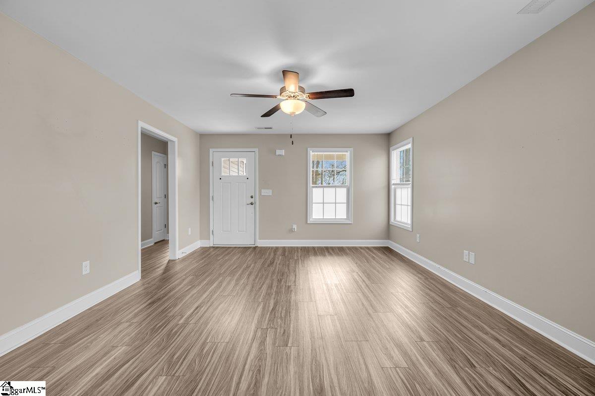 Motivated seller! Nestled on Spartanburg’s desirable north side, this like-new 3-bedroom, 2-bath home built in 2023 offers modern comfort, thoughtful design, and a layout perfect for everyday living and entertaining. The split-bedroom floor plan provides added privacy, featuring a spacious primary suite tucked away at the rear of the home, while two secondary bedrooms are located toward the front—ideal for guests, family, or a home office. The open-concept living, dining, and kitchen area creates a seamless flow for both hosting and daily living. Step outside to enjoy a generously sized yard offering the potential to add a garage ( Please see photo #6 for parking options) providing flexibility for future expansion, additional storage, or enhanced functionality (buyer to verify). Conveniently located just minutes from the new Spartanburgers Baseball Stadium, Walking distance to HUB City Farmers Market,Chapman Cultural Center, Wofford College, VCOM, and Spartanburg Regional Healthcare, this home places you close to everything Sparkle City has to offer. Whether you’re a first-time buyer, downsizing, or seeking a nearly new home in a prime location, this property delivers comfort, privacy, and opportunity. Down payment assistance (DPA) is available through NDG (Northside Development Group), Carolina Foothills FCU, and CommunityWorks Ask me how!