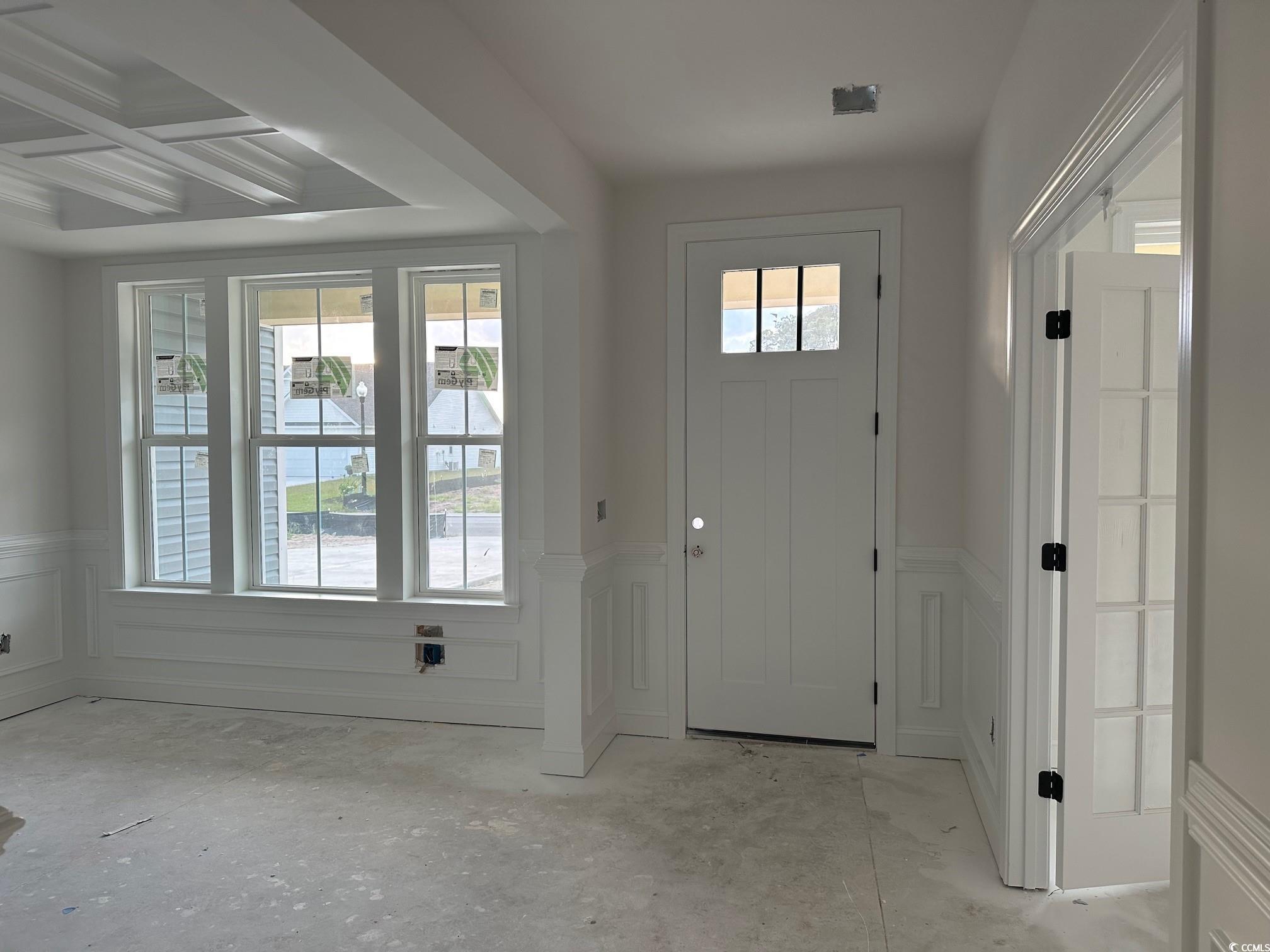 3 in-suite Baths! Total of 4 bedrooms, 4.5 baths, a Study with French doors, a formal Dining room, an eat-in Gourmet Kitchen with a Butler's pantry, a loft, and a 3-car garage. A .46-acre lot that offers a peaceful wooded backyard retreat. Coastal, Southern living in an Arts & Crafts design. This beautiful Ivey home boasts a welcoming foyer open to the study and dining room which features a coffered ceiling and a butler's pantry entry into the Gourmet kitchen. The great room includes a 12x8 slider, soaring ceilings and the enjoyment of the open kitchen and breakfast nook. The Gourmet kitchen features rich Maple Rye and Sage kitchen cabinets, a wrapped kitchen island, Calcutta Royale quartz counter tops, Whirlpool appliances (exhaust hood vented outside, dishwasher, wall oven, wall microwave), a Kitchen-aid induction cooktop, under cabinet lights, pendant lights, and a white cast iron Kohler apron sink. The first-floor primary bedroom includes a huge walk-in closet and a generous bathroom with a 5ft walk-in tile shower and double vanity. Upstairs offers 3 bedrooms, 3 baths, and a loft. Easy maintenance sunbathed pecan Mohawk REV Wood floors throughout downstairs, oak treads leading upstairs, Daltile in all baths, Quartz countertops in all baths, black Progress Lighting fixtures, a designer trim package, and black bath plumbing fixtures. A DOE Zero Energy Ready Home, 100% Energy Star Certified and EPA Indoor AirPlus Qualified featuring the complete Tyvek house wrap system, a Broan Energy Recovery Ventilated Fresh Air system, spray foam insulation, and 2x6 construction which means improved energy efficiency and indoor air quality to give you a healthier, and more comfortable home with less noise, less air loss, and a lower utility cost. Dec 2025 Anticipated completion date. Just 1 mile from the Murrells Inlet waterfront. A boutique community of only 57 lots from .46-acre.