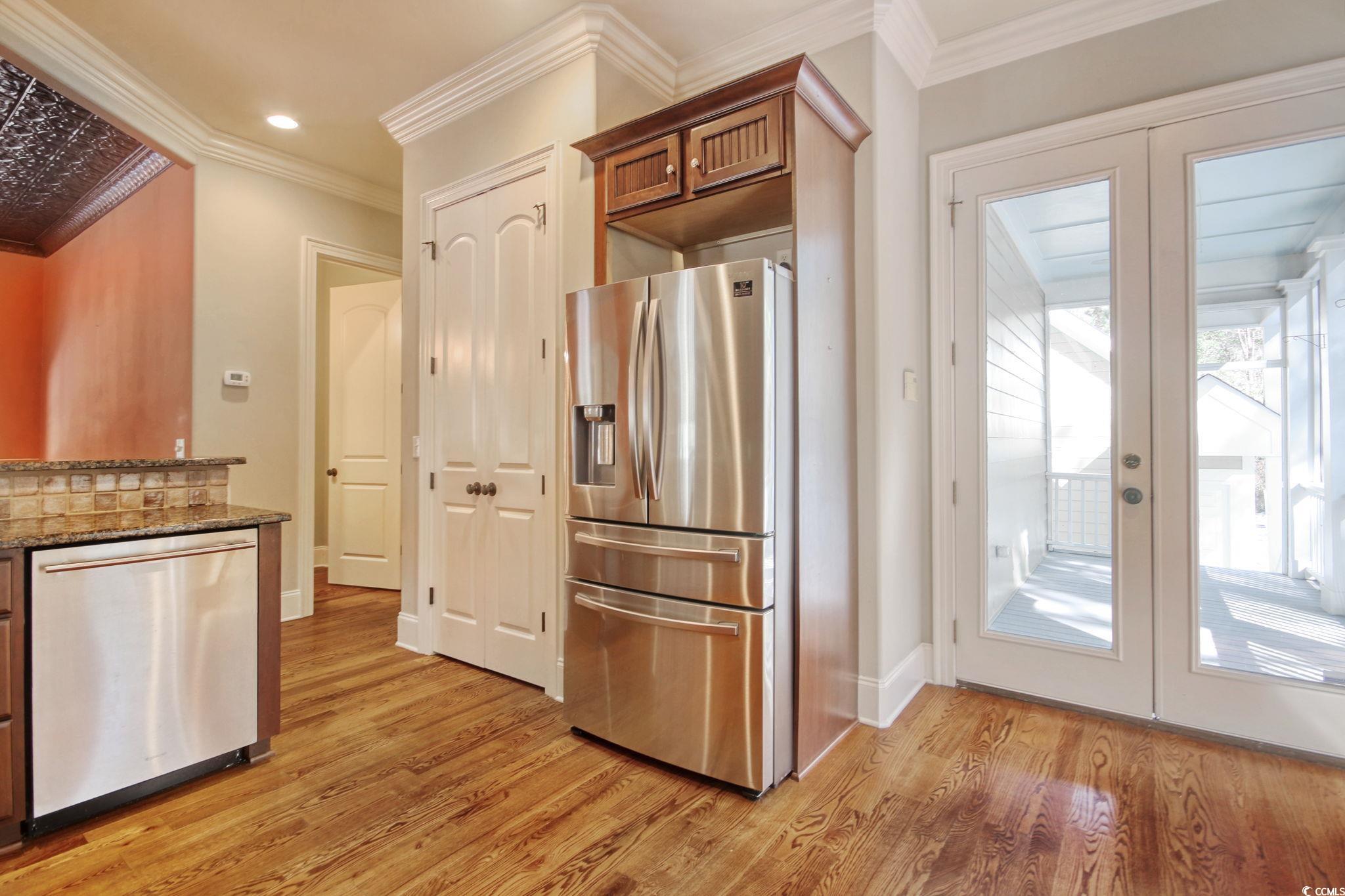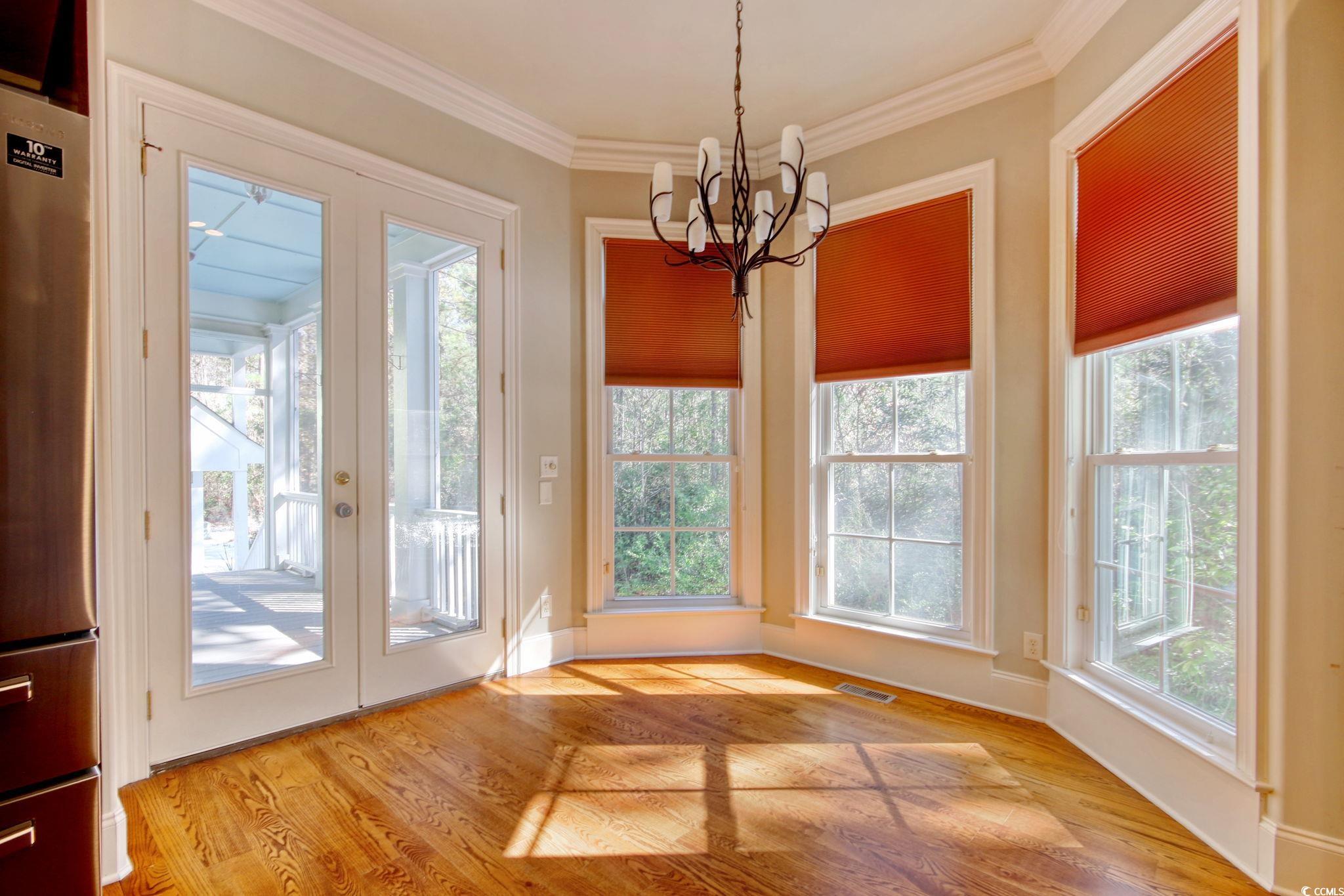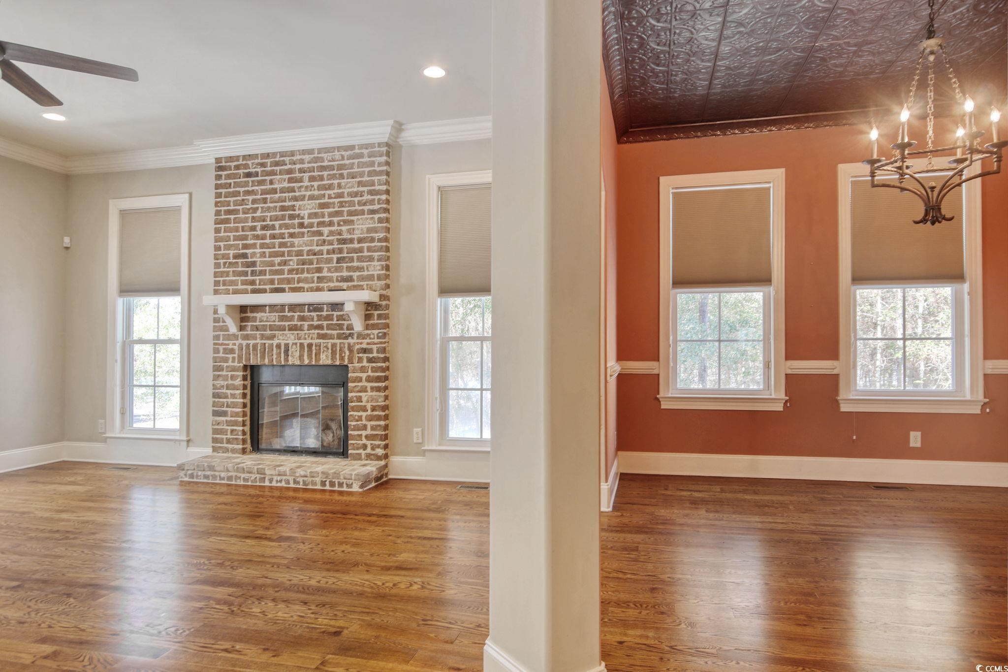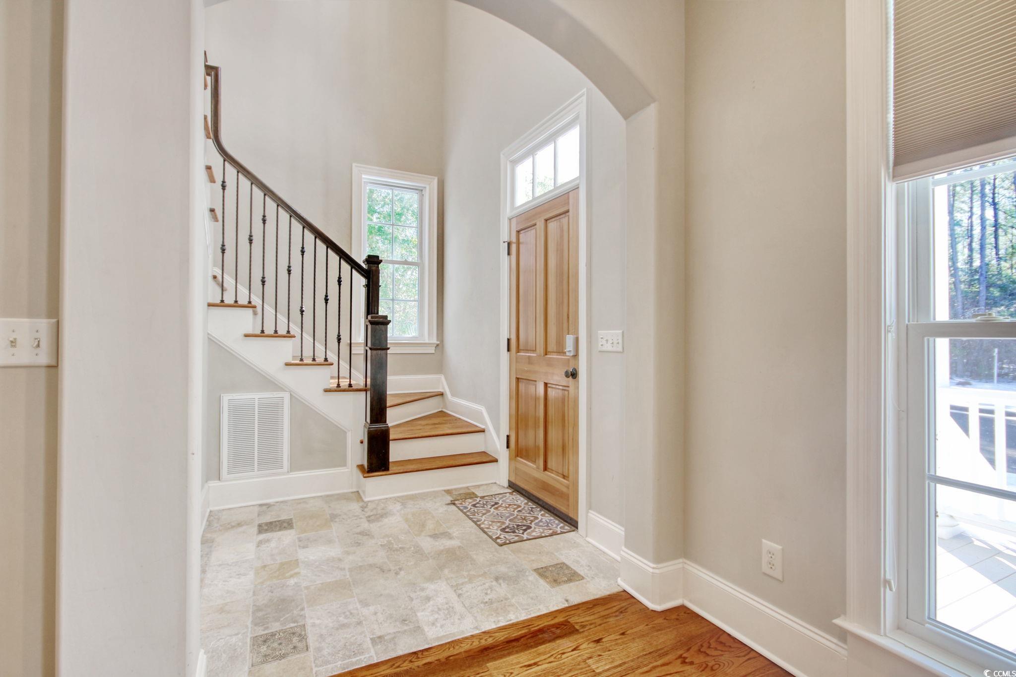 Step into Lowcountry elegance with this Charleston-style home with fresh curb appeal. This meticulously maintained home is a summer dream, offering expansive double front porches perfect for sipping sweet tea and soaking in the warm breeze, or for enjoying peaceful shade on the back porch. Inside, 10-foot ceilings, crown molding, and hardwood floors set the stage for refined Southern charm. The gas log, brick fireplace adds cozy ambiance, while the formal dining room’s copper tin ceiling tiles bring a touch of sophistication. The gourmet kitchen is a chef’s delight, featuring stainless steel appliances, a five-burner gas cooktop, and a breakfast bar—ideal for summer brunches and evening gatherings. The spacious primary suite, on the first floor, is a true retreat boasting two walk-in closets and an ensuite bath with double vanities, a walk-in shower, and a soaking tub. Upstairs, find three additional bedrooms, two full baths, and a large bonus/media room—perfect for movie nights or crafting. Outdoor living shines with a screened-in back porch and a wooden deck, offering a serene escape for summer barbecues or quiet relaxation. A detached two-car garage with a covered walkway adds convenience and charm. Nestled in Harmony Township, this private community provides exclusive access to a boat landing and a marina with slips available for purchase, leading out to the Sampit River and Winyah Bay—a paradise for boating enthusiasts. Embrace the vibrant energy of summer and refined Lowcountry living at 55 Pineberry Dr, where every season feels like a getaway! Seller offering additional peace of mind with a 1 year Home Warranty!