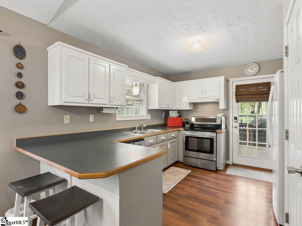 Tucked just off scenic Highway 11 in charming Travelers Rest, this adorable home offers the perfect blend of privacy, character, and convenience. Nestled in a small community surrounded by mature trees and rolling terrain, the setting delivers a peaceful, mountain-like feel that’s hard to find. The approach is welcoming from the start, with a freshly graveled driveway (March 2026), a stacked stone retaining wall, and vibrant azaleas lining the way. A cozy covered front porch invites you to slow down and stay awhile, complete with a storm door entry. Just steps away, a tranquil koi pond with a waterfall adds a touch of charm and serenity. Inside, the open-concept living, dining, and kitchen area feels bright and spacious, highlighted by a vaulted ceiling that spans the entire main living space. A gas log fireplace creates a warm focal point, while durable laminate flooring flows throughout. The kitchen offers a pantry closet and includes the refrigerator, making move-in easy. The primary suite is privately situated at the rear of the home and features a walk-in closet and full bath. Two additional bedrooms share a well-placed hall bath, ideal for family or guests. Out back, the fully fenced yard is designed for easy living and low maintenance, with minimal grass to maintain and plenty of shade from mature trees. Enjoy a covered rear deck perfect for relaxing or entertaining, along with a large outbuilding complete with full power, propane gas heat, and a convenient roll-up door, ideal for a workshop, hobby space, or extra storage. A tall crawl space provides even more storage options. Additional upgrades and features include an owned propane tank, gutter guards for added convenience, a new water heater installed in 2025, and consistently low power bills, helping keep day-to-day living efficient and affordable. Located in a quiet, tucked-away area, this home feels like an escape while still being convenient to everything. You’re just minutes from Hotel Domestique, Pleasant Ridge County Park, and Cherokee Valley Golf Club. Plus, enjoy easy access to Highway 25, the Swamp Rabbit Trail, and all the dining and charm of downtown Travelers Rest. If you’ve been looking for a peaceful setting with personality, efficiency, and convenience, this one checks all the boxes.