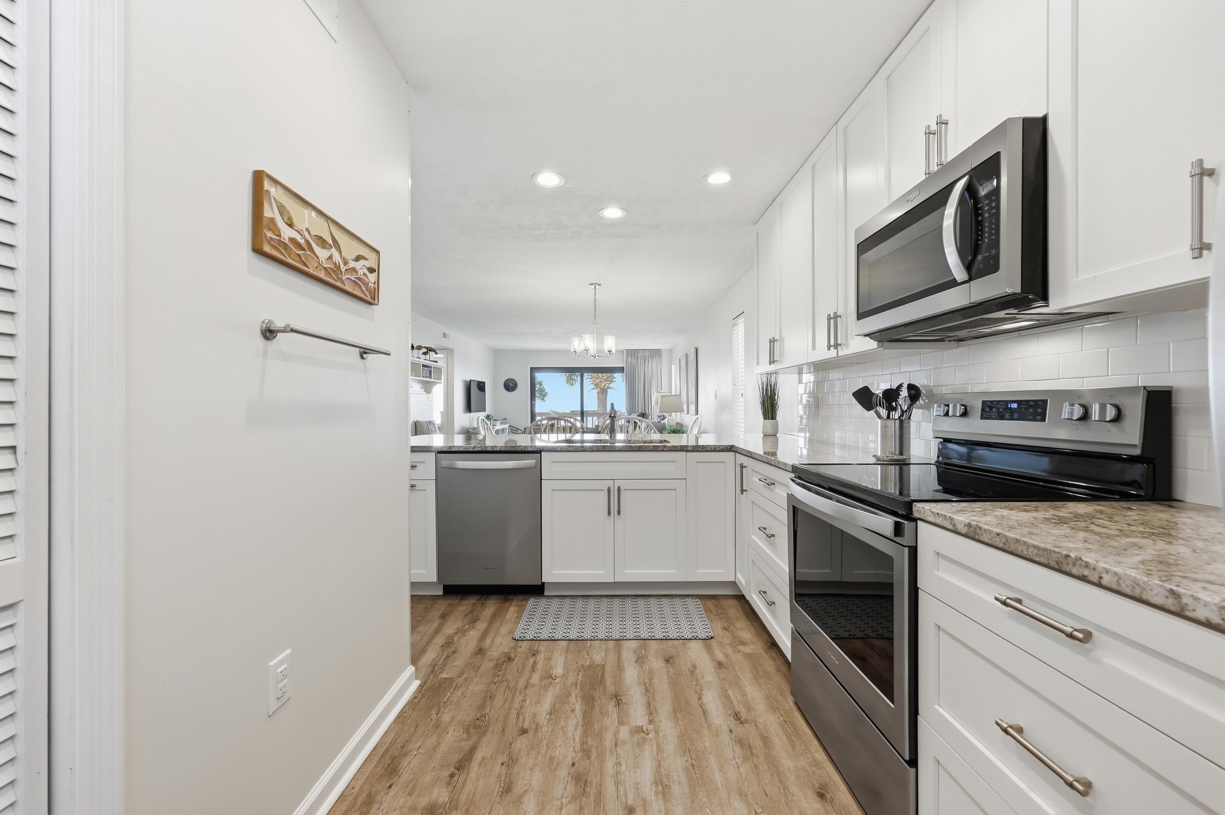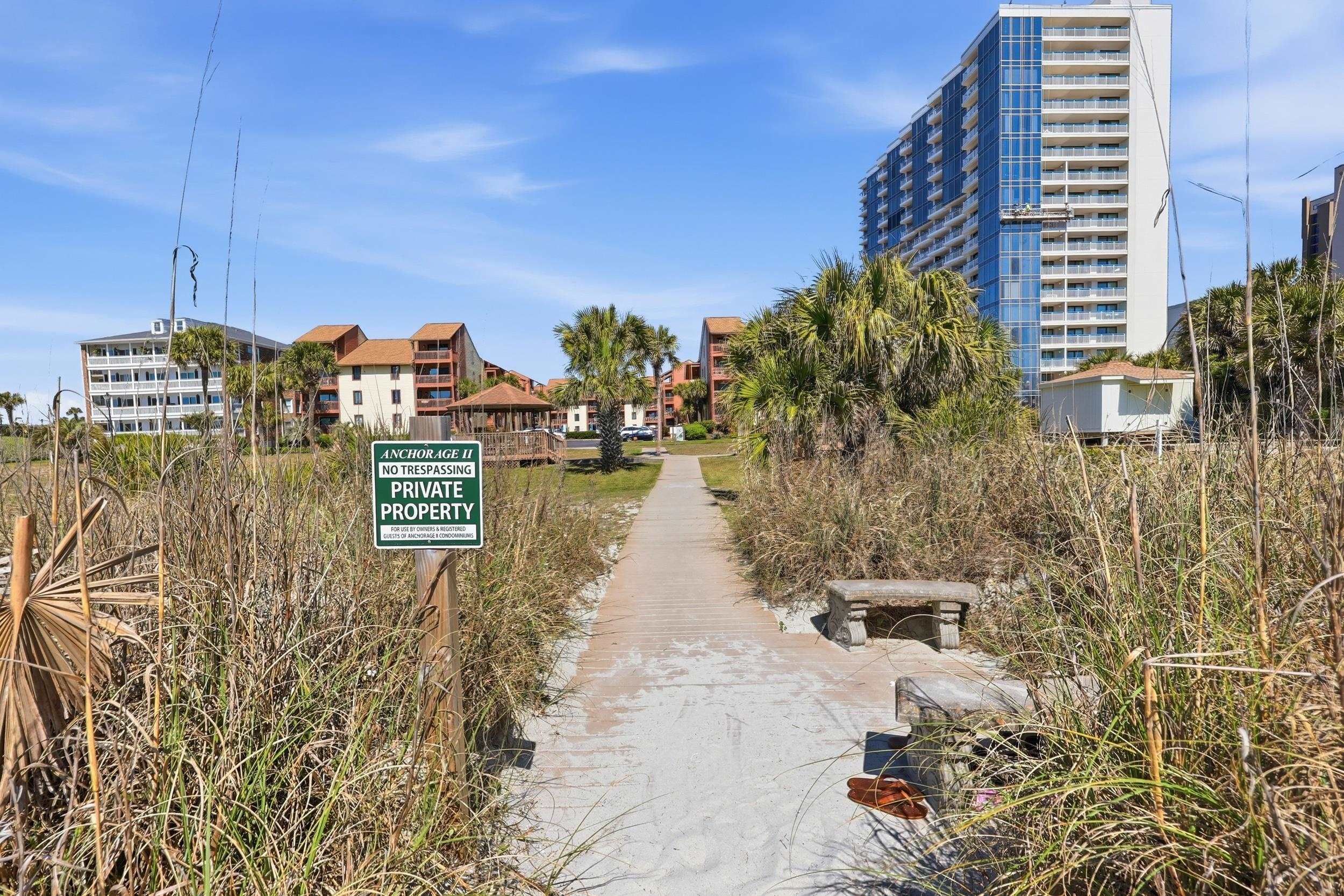 Experience the beautiful ocean views from your balcony of this fully renovated turn key condo! Location is everything! This stunning, spacious and updated condo is unbeatable while only steps away to the beach and oceanfront. Fully renovated kitchen is complete with granite countertops, and stainless steel appliances, bathrooms with primary bedroom having a walk in shower, double vanity and lvp flooring in main living areas. New HVAC in 2020, new hurricane rated patio doors in living room and primary bedroom 2019. This 2 bedroom 2 bath condo is well appointed with tasteful decor and is move in ready. It is perfectly suited as a private getaway or as a high performing rental unit. The well manicured property surrounds a community pool to lounge and unwind by, and the building is equipped with an elevator for access for all. Anchorage II #202 will check all the boxes! Don't wait - call for a showing today!!!