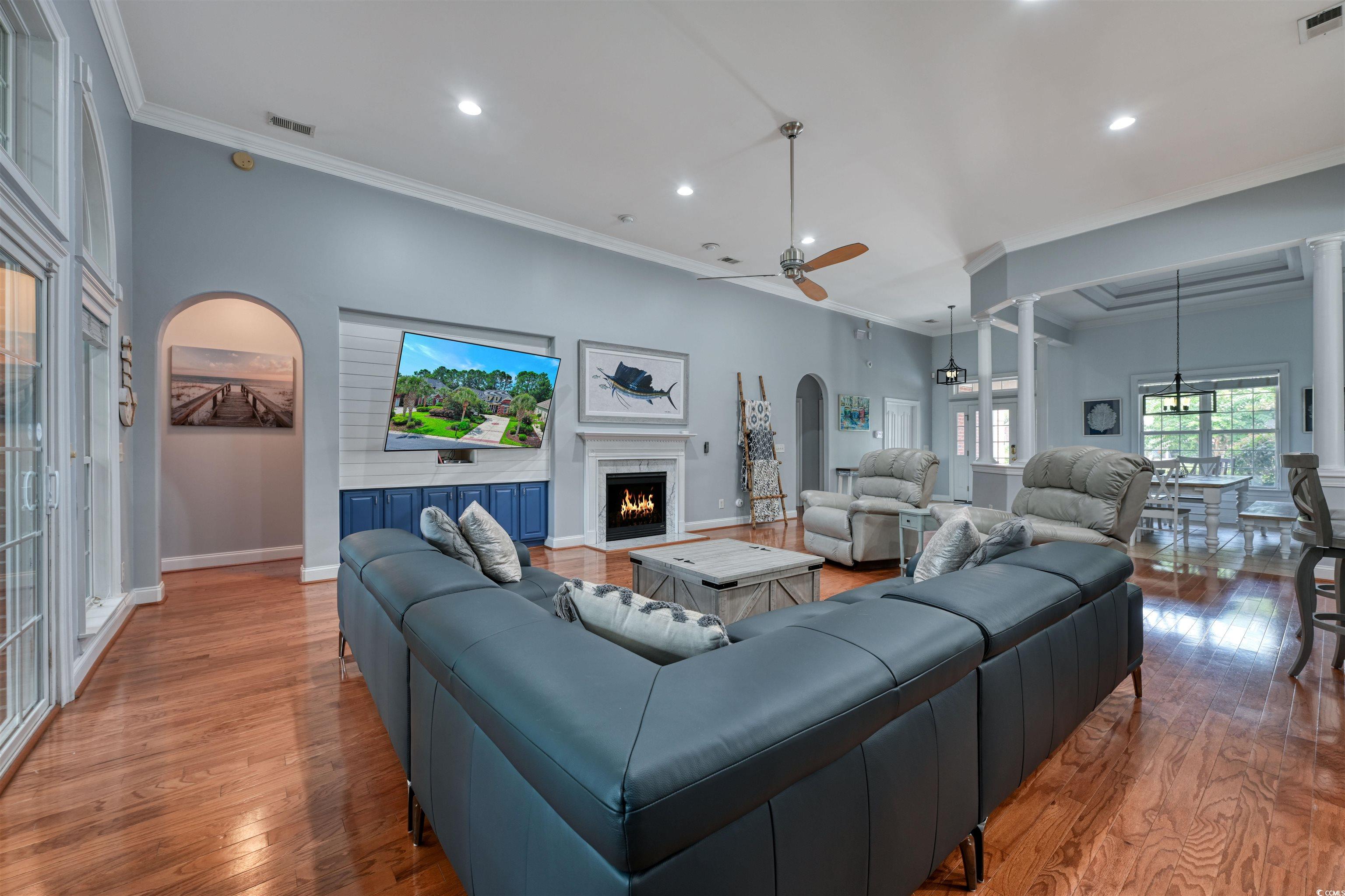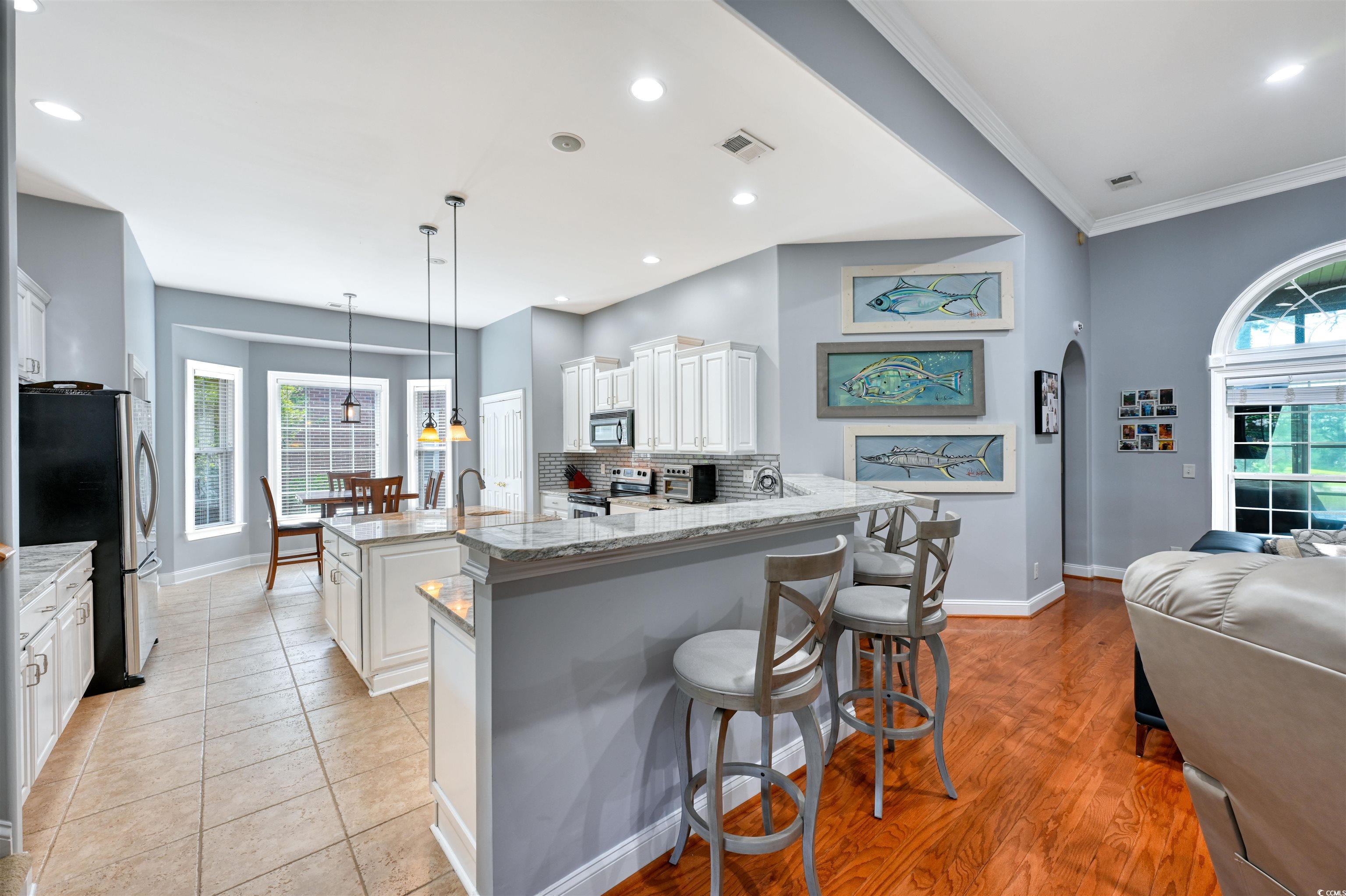 Experience an elevated beach lifestyle in the gated community of Leatherleaf at Barefoot Resort. This all-brick 4-bedroom residence with study blends timeless craftsmanship with modern updates, offering both luxury and peace of mind. Designed with an open floor plan, the home invites you to relax and entertain seamlessly, with spaces that flow naturally from one to the next. Step inside to find generous living areas, a light-filled study, and a spacious kitchen refreshed in 2021 with new paint and countertops. A new roof (2020) and new hot water heater (2019) add to the comfort of 3 knowing these major systems are already taken care of. With a 2-car garage plus additional space for a golf cart, convenience is built into everyday living. Outdoors, the backyard is framed by beautiful Carolina pines, adding privacy and a tranquil setting. Living in Leatherleaf is more than owning a home—it’s a lifestyle. This neighborhood offers the privacy of a gated entrance and access to resort-style amenities. Residents enjoy a private beach cabana, two community pools, and a fitness center. The community is also golf cart accessible, making trips to the beach or local conveniences an easy ride. This property includes a transferable Barefoot Resort golf membership (with a transfer fee), providing access to four renowned courses designed by Greg Norman, Davis Love III, Tom Fazio, and Pete Dye. Barefoot Resort’s golf program has earned accolades across the Carolinas and offers one of the most sought-after experiences in the region. Whether enjoying a morning round, lounging by the pool, or heading to the beach cabana, every day can feel like a retreat. North Myrtle Beach’s dining, shopping, and entertainment options are all within close reach, ensuring you’ll find everything you need without ever straying far from home. And yet, with the comfort, amenities, and setting of this property, you may never want to leave. This spacious Kingsland floorplan offers approximately 3,281 heated sq ft and 4,401 total under roof, with the option to purchase furnished under the right terms, including a custom dining table built specifically for the space. Luxury living at the beach has never been this effortless. Owner is in a limited service broker agreement and is a licensed SC agent in referral. Buyer is responsible for verifying square footage and specific HOA amenities.