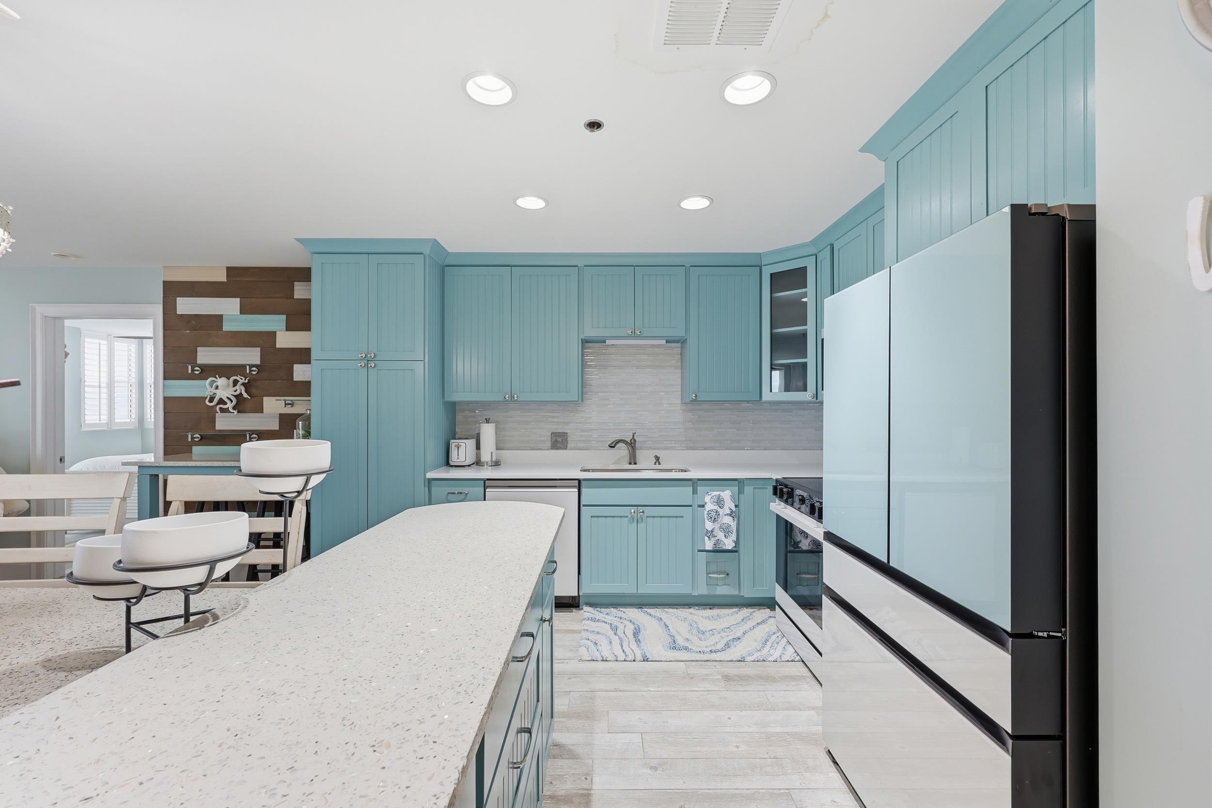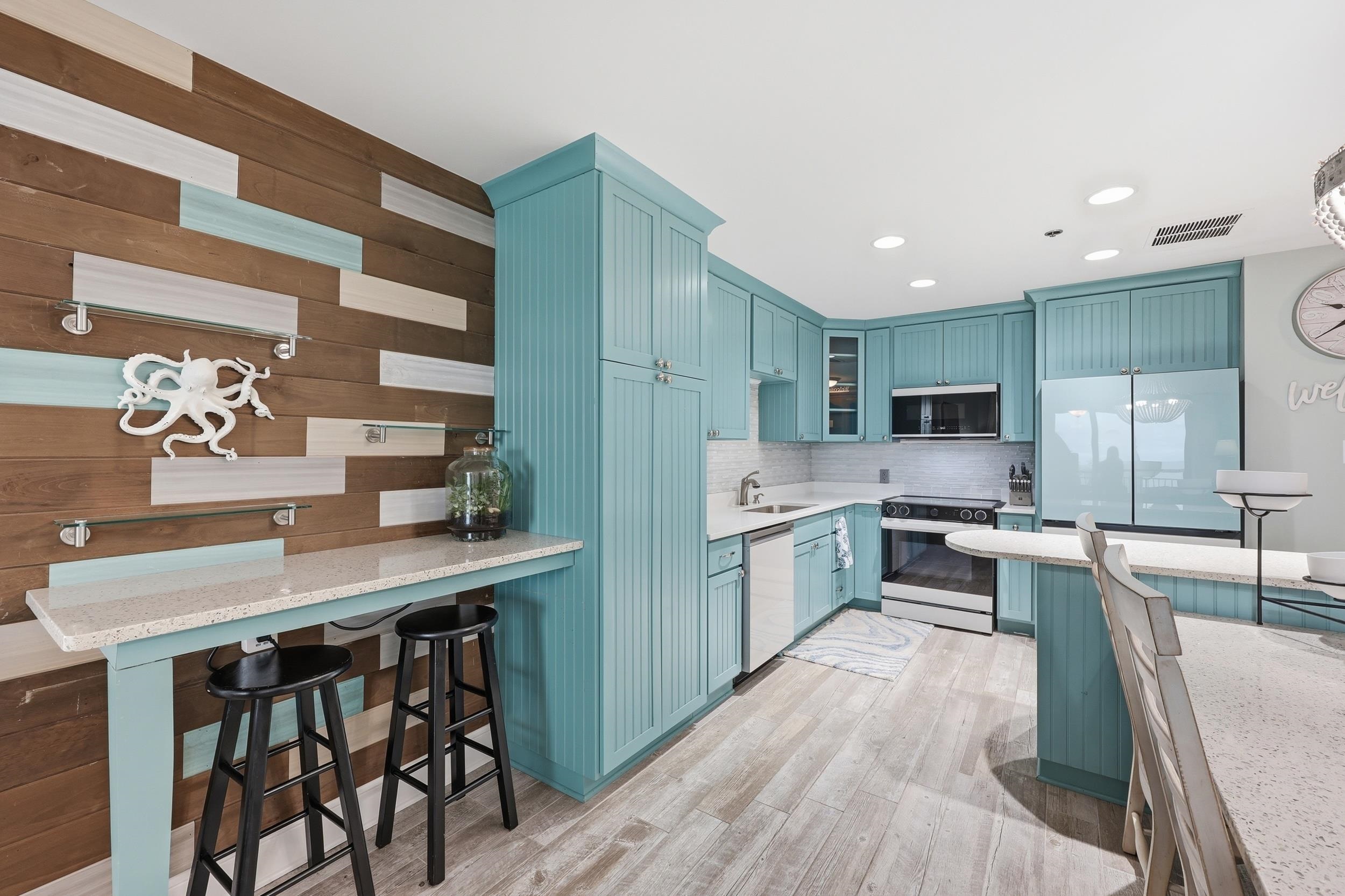 Experience oceanfront living that feels less like a rental and more like home in this beautifully maintained 2-bedroom, 2-bath residence at Hyperion Towers in the sought-after Cherry Grove area of North Myrtle Beach. With limited inventory in this building, opportunities like this are rare. Located on the 6th floor of a 7-story building, this fully furnished condo offers a more private, residential feel with stunning ocean views that immediately draw you in. The open layout is filled with natural light and designed for easy coastal living. The kitchen features quartz countertops, stainless steel appliances (all less than a year old), and distinctive teal cabinetry that adds style and character. Luxury vinyl plank flooring runs throughout for a clean, low-maintenance finish. The living area and primary bedroom both open to the oceanfront balcony, creating a seamless indoor-outdoor flow and a peaceful setting to enjoy the sights and sounds of the coast. The primary suite offers comfort with a newer mattress and and the guest bathroom has been remodeled; while the second bedroom adds flexibility with both a queen and twin Murphy bed along with built-in storage. Additional updates include HVAC (2022), new front door, updated ceiling fan, and a lightly used Lovesac couch. A dedicated exterior storage closet provides convenient space for beach gear and owner storage; an added bonus not always found in oceanfront condos. Hyperion Towers offers an oceanfront pool, sundeck, fitness area, and game room for owners and guests. Its smaller size creates a quieter, more relaxed atmosphere compared to larger resorts. Whether you're looking for a primary residence, second home, or investment opportunity, this property delivers comfort, style, and location. Schedule your showing today.