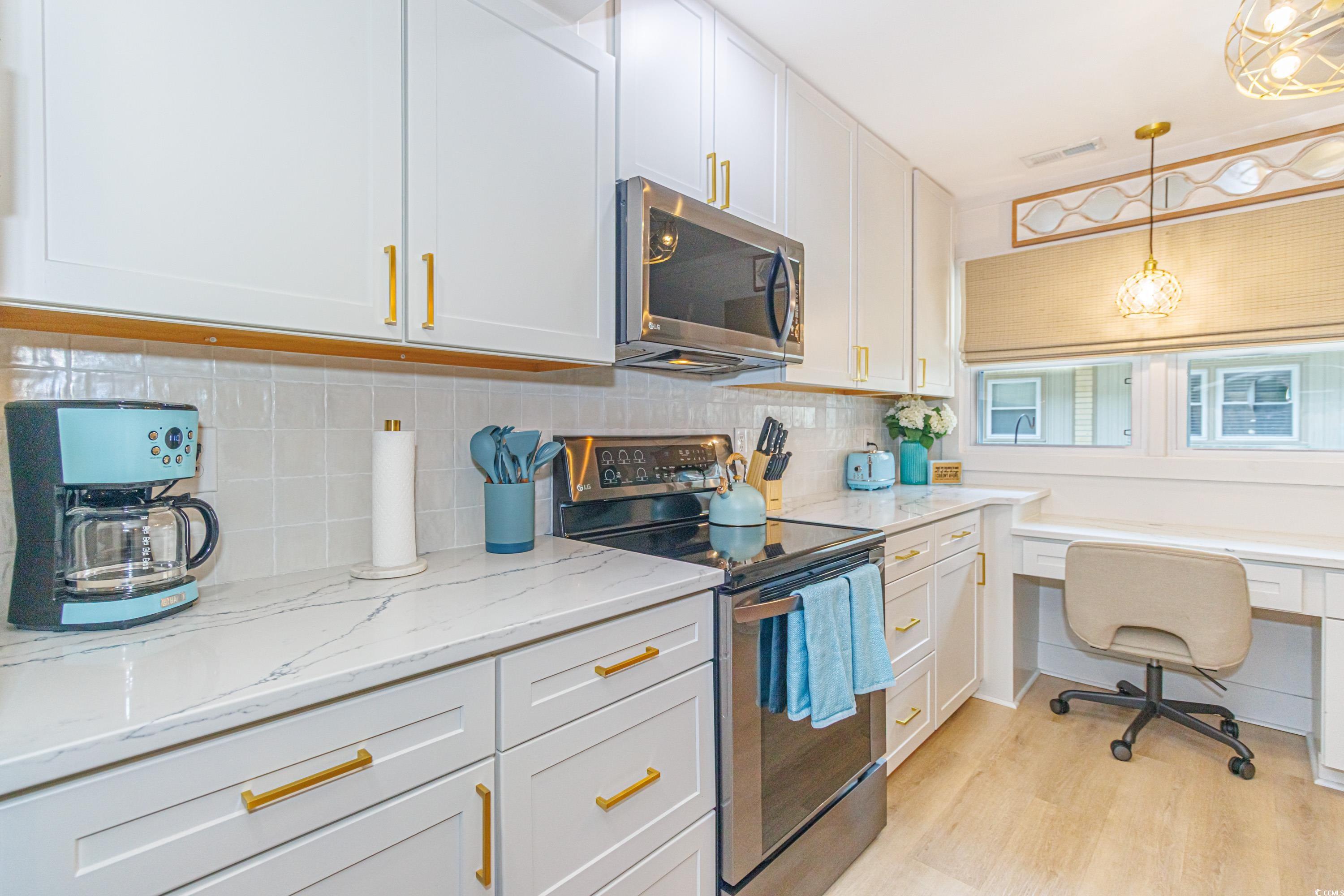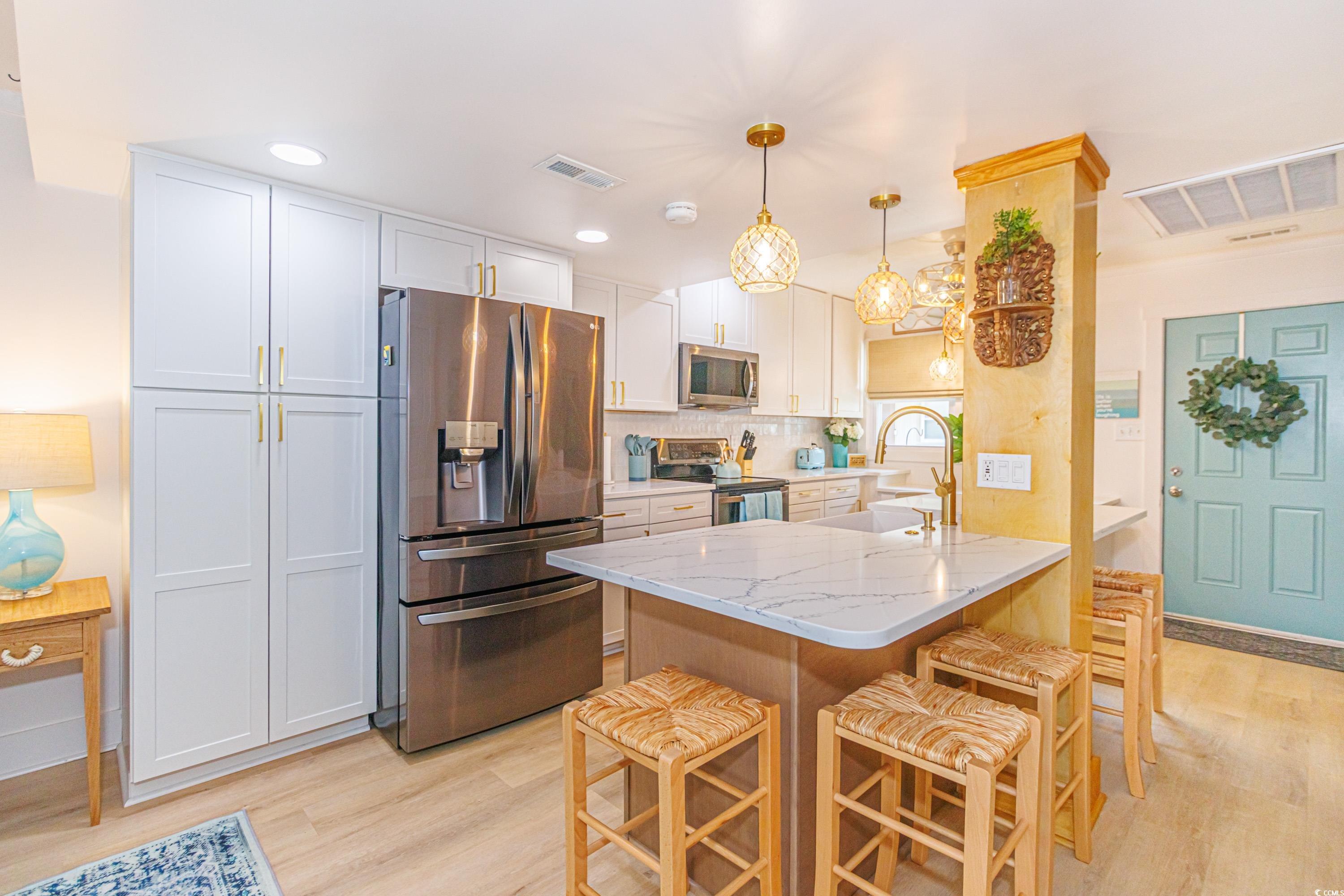 Beach? Yes please! This beautifully remodeled, fully furnished, 2 bedroom, 1.5 bath, located in the heart of the exclusive “Golden Mile,” is a mere two minute walk to the beach. On the first floor, you'll find a modern, open-concept layout featuring a large kitchen island, quartz countertops, high end appliances and fixtures and custom cabinetry. In the living room, custom built-ins flank a gorgeous fireplace surrounded by opalescent tile. Upstairs you'll find plenty of upgrades while still maintaining some of the original vintage charm. There are two generously sized bedrooms, hardwood floors, and a remodeled bathroom. Outside, you’ll find your own private, fully fenced courtyard. Completely maintenance free, this space features a lovely cobblestone patio and artificial turf. There is also attached outdoor storage with washer and dryer. And the best part, your back gate opens to a direct path to the beach. You’ll love the convenience of being able to store all your beach gear out back and not have to bring it through the house. This place packs in the storage with ample cabinetry, shelved storage under the stairs and in the laundry, coat closet, linen closet, walk-in closet in one bedroom and two large closets closets in second bedroom. A beautiful barn door has been installed in the main bath, opening a large space for additional shelving or a vanity. Porcher Villas is an intimate community with only 15 units and features an outdoor pool just a few steps from your front door. Whether you're looking for a primary residence, beach getaway, or income-producing property, this one checks all the boxes!