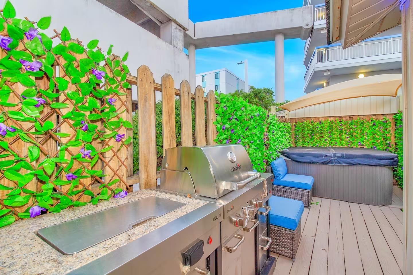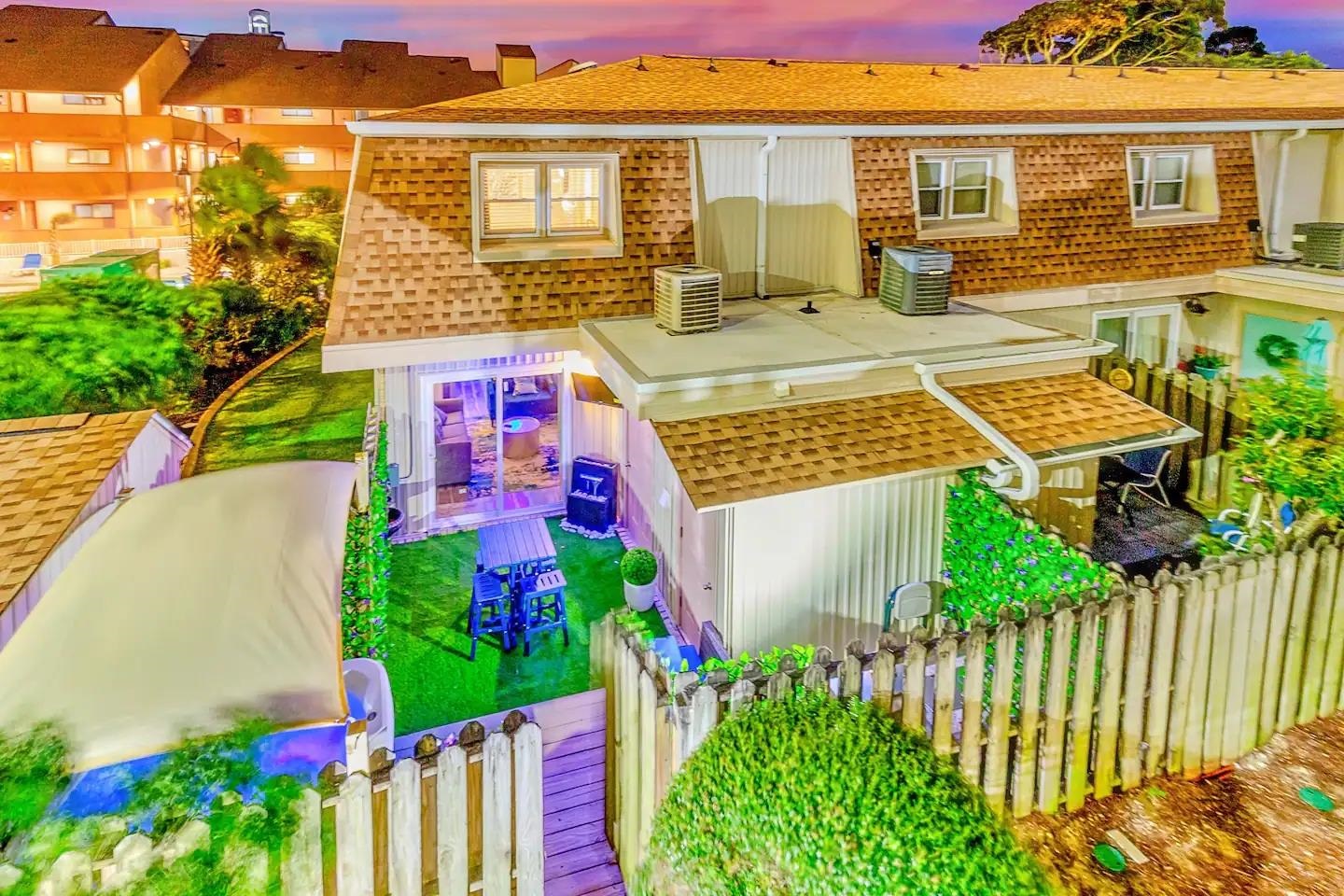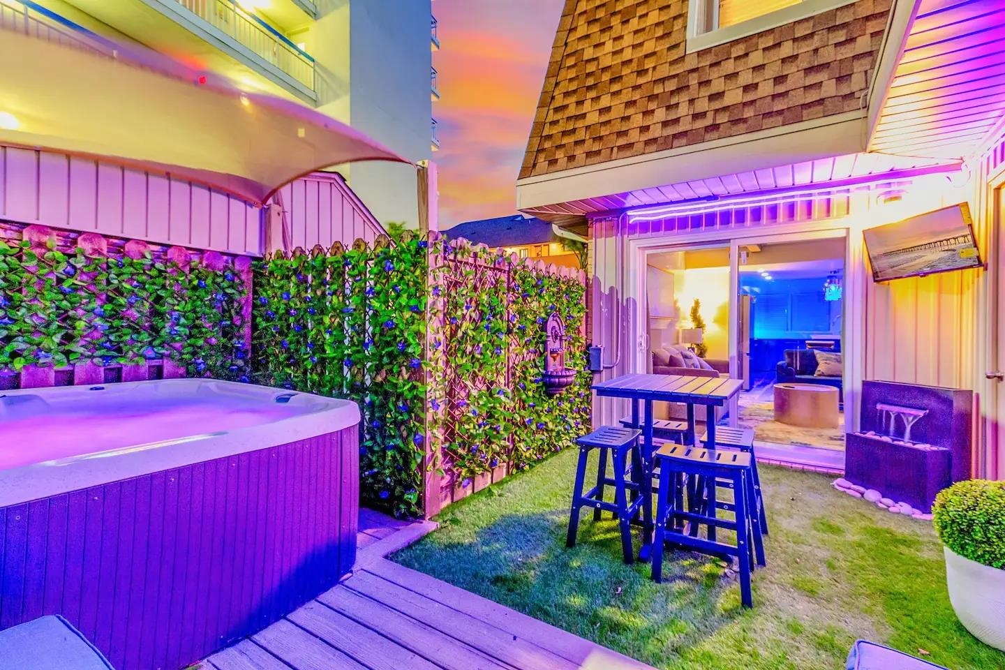 Just steps away from the best stretch of beach in the area, This beautiful newly remodeled end unit is a one of a kind with an extended large outdoor patio area. This gorgeous home is completely opened up with an amazing kitchen with extra cabinets, high end countertops , all new stainless-steel appliances with gold accents throughout the home. The half bath downstairs is fully remodeled with shiplap and gold touches. The large living room has a custom shiplap fireplace and all new furnishings. Along with being on the end, the back patio area is larger than the other 14 units. Outside you will find and outdoor kitchen, large 7-person hot tub, grass and decking , outside sitting area with tv, and even an outdoor custom enclosed shower. Upstairs you will find 2 large bedrooms with new furnishings and a beautiful updated bathroom with all gold touches making it absolutely stunning. All furnishing, TVs, and appliances are included in the sale. This is truly turn key. Can make this beautiful home your primary, second home or a short term rental or a little bit of everything. Why not.. A home like this rarely comes out on the market so will go fast. In the northern part of Myrtle Beach where you are close to everything the Grande Strand has to offer, Broadway at the Beach,Barefoot Landing, entertainment venues, shopping, Golf and great dining.