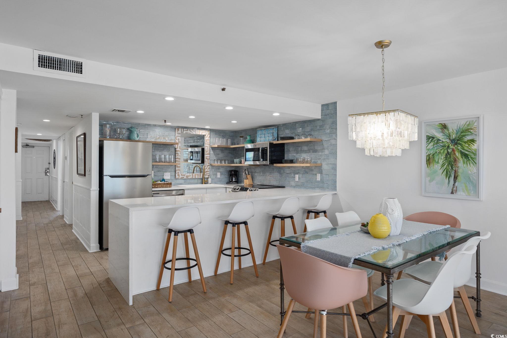 Step into your dream coastal retreat—this turnkey vacation rental is just steps away from the beach and a prime addition to your investment portfolio. Whether you're searching for a second home, primary residence, or a luxury getaway, this unit will exceed your expectations. Located in the exclusive Cabana District just north of the coveted Golden Mile of Myrtle Beach, this 3-bedroom, 2.5-bathroom condo boasts sweeping, unobstructed south-facing ocean views that are truly one-of-a-kind. From the moment you enter, the open-concept living area with floor-to-ceiling windows and modern furnishings invite you to relax in style. The modern kitchen and beautifully updated bathrooms add a touch of elegance. The private balcony offers unique sunrise and sunset views. The master suite is a true sanctuary, featuring the same breathtaking ocean views, an en-suite spa-inspired bath with a walk-in tiled shower, and a spacious walk-in closet. Two additional bedrooms offer ample space for family and guests, making this property ideal for personal use or as a high-performing rental. This unit is HUGE compared to most in similar type buildings. Fully furnished and already a successful self-managed vacation rental, this unit offers a rare turnkey investment opportunity. Guests rave about this unit. Forest Dunes has direct beach access just a few steps away and also includes resort-like amenities such as a lazy river, indoor/outdoor pools, hot tub, gym, and even a beachside restaurant.