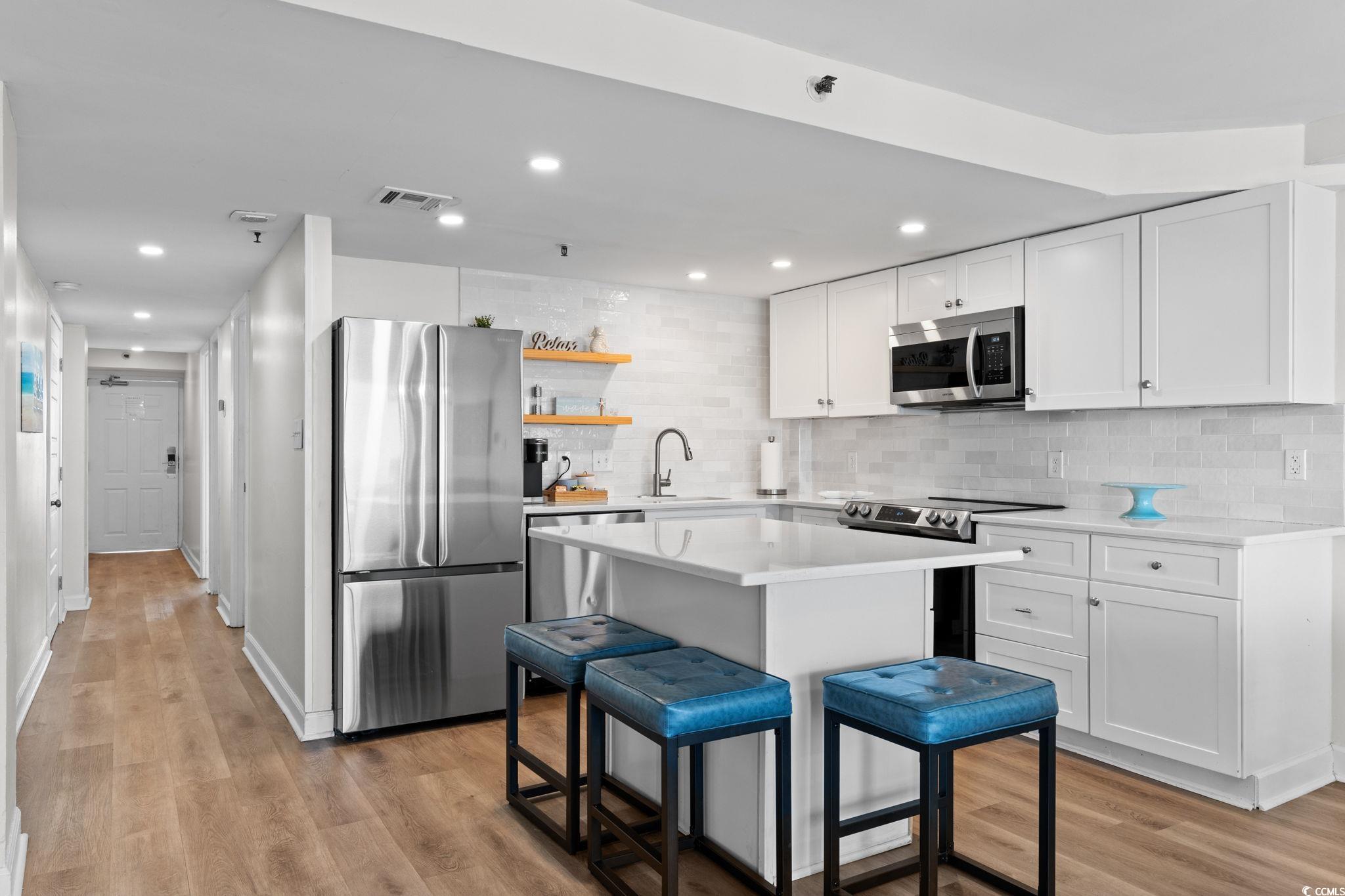 Experience true oceanfront living at 5511 N Ocean Blvd, Unit 1604, located in the iconic Ocean Forest Plaza along Myrtle Beach’s highly coveted Golden Mile. This rare 3-bedroom, 2-bath condo offers direct ocean views and an expansive private balcony where sunrise views and ocean breezes become part of your daily routine. Inside, the bright and open floor plan is designed to maximize both comfort and views, making it ideal for everyday living, entertaining, or investment use. The kitchen features granite countertops, stainless steel appliances, and ample cabinetry, while updated flooring, modern fixtures, and fresh finishes throughout create a clean, move-in-ready feel. The primary suite includes a private en-suite bath and direct balcony access, allowing you to wake up to the sights and sounds of the Atlantic. Ocean Forest Plaza offers resort-style amenities including indoor and outdoor pools, hot tub, sauna, fitness area, and on-site laundry facilities—all just steps from the sand. Centrally located near Broadway at the Beach, Myrtle Beach Boardwalk, golf courses, dining, and shopping, this property combines location, lifestyle, and income potential. Rarely does a 3-bedroom oceanfront condo in this location become available. Whether you’re seeking a primary residence, second home, or high-performing rental, this is an exceptional opportunity to own oceanfront on the Golden Mile.