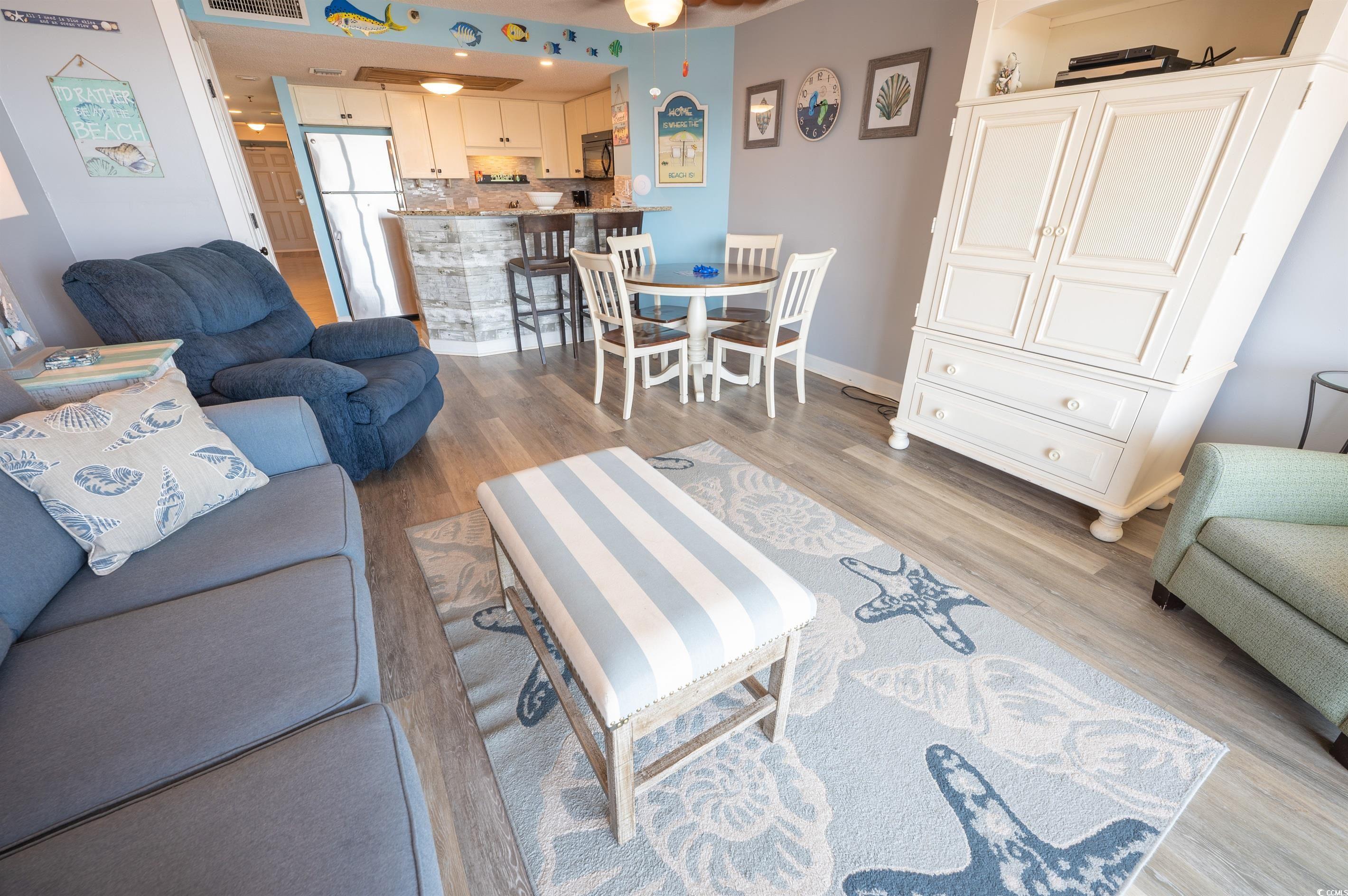 Updated & Fully Furnished 1 Bedroom, 1.5 Bath Condo in Forest Dunes is Priced to Sell! This beautifully renovated and fully furnished condo is located in the highly sought after Forest Dunes section of Myrtle Beach. Although the building sits second row, it boasts unobstructed ocean and beach views thanks to the charming, colorful day cabanas along the oceanfront. Plus, this unique one-mile Cabana Section features a scenic oceanfront public park and fitness trail complete with multiple outdoor exercise stations. Inside, the unit shows like a model and has been updated throughout with wainscoting, granite countertops, a tiled shower, luxury vinyl and tile flooring, upgraded kitchen cabinets, and modern bathroom vanities. The kitchen comes fully equipped with appliances and is perfect for the chef in the family. Step onto your private balcony and take in breathtaking views of the ocean and beach a rare find in a second-row building. Forest Dunes Resort offers impressive amenities including indoor and outdoor pools, a lazy river, hot tub, kiddie pool, and fitness center. You are also just minutes from the area's top attractions, dining, golf, and shopping. This turn key condo is the perfect choice for a vacation retreat, rental investment, or full-time beach living and it absolutely deserves a spot at the top of your list!