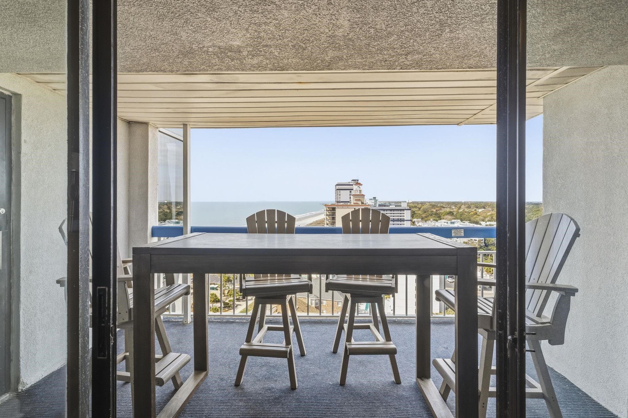 3BR oceanfront condo on Myrtle Beach Golden Mile - high-floor views, fully furnished, resort-style amenities! Set high above the shoreline along Myrtle Beach, this 3 bedroom, 2.5 bathroom oceanfront condo in Forest Dunes delivers the kind of lifestyle buyers are searching for - panoramic Atlantic views, effortless indoor-outdoor living, and strong flexibility as a primary home, second residence, or income-producing investment. From the moment you step inside, the natural light and expansive sightlines immediately draw you toward the ocean, creating a calm, elevated coastal atmosphere where mornings begin with sunrise over the water and evenings unwind to the sound of the waves. The floor plan is designed with both comfort and connection in mind. The kitchen greets you with granite countertops, abundant cabinetry, and a breakfast bar that opens seamlessly into the dining and living areas - perfect for casual mornings or entertaining guests. The dining space transitions easily into the main living room, where floor-to-ceiling glass doors frame breathtaking ocean views and lead to a private balcony, creating a true extension of the living space. The primary suite is positioned to maximize both privacy and scenery, offering direct access to the balcony - ideal for stepping out to enjoy the ocean breeze at any time of day. This space also features a walk-in closet and ensuite bath, creating a comfortable retreat. Two additional bedrooms provide versatility for guests, or rental use, with a thoughtfully designed layout that supports both privacy and functionality. A dedicated laundry area with washer and dryer adds everyday convenience. Perched on a high floor, this fully furnished residence showcases tasteful upgrades throughout, including durable LVP flooring, a bright open layout, and expansive windows that bring the outdoors in. The large balcony, accessible from both the living area and primary suite, becomes a favorite place to relax, dine, or simply take in the sweeping coastline views. Forest Dunes is known for its exceptional amenities, offering both indoor and outdoor pools, a lazy river, and an onsite bar and grill, all designed to enhance the coastal living experience. Located in one of Myrtle Beach's most desirable stretches, residents enjoy quick access to top dining, shopping, golf courses, and entertainment, all while being just steps from the beach. This turn-key oceanfront condo offers a rare combination of location, views, and versatility - ideal for short-term or long-term rental opportunities, a vacation getaway, or a full-time coastal residence. Measurements are not guaranteed. Buyer is responsible for verifying.