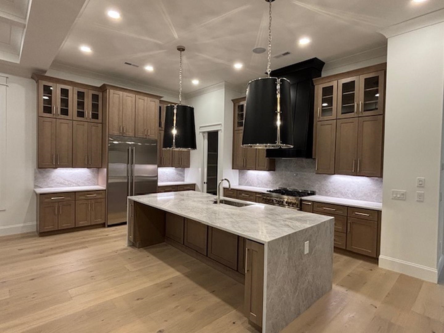 Experience refined coastal living just one block off the ocean in the highly sought-after Golden Mile. This newly constructed custom residence offers the perfect blend of modern elegance, thoughtful design, and an unbeatable location. From the moment you arrive, the home’s striking exterior showcases clean architectural lines, metal roof accents, and a welcoming covered entry. Inside, soaring ceilings and a dramatic coffered great room create an impressive yet inviting space ideal for both everyday living and entertaining. Oversized sliding glass doors seamlessly connect the main living area to the covered outdoor patio, allowing for effortless indoor-outdoor living. The designer kitchen is a true showpiece, featuring custom cabinetry, quartz countertops, a statement vent hood, and a large center island perfect for gathering. Outfitted with JennAir Professional-grade appliances, this space is designed to meet the expectations of even the most discerning chef. A spacious scullery/butler’s pantry provides additional prep and storage space, keeping the main kitchen pristine and functional. Step outside to your private covered outdoor living area complete with a fully equipped summer kitchen—perfect for grilling and entertaining year-round. The beautifully finished tongue-and-groove wood ceiling and mounted fan add warmth and comfort to the outdoor space. The home’s thoughtful floor plan offers generous bedrooms, upscale finishes, and abundant natural light throughout. High-end details include wide-plank flooring, designer lighting, custom millwork, and impact-rated windows and doors. Located in one of the area’s most prestigious coastal neighborhoods, residents enjoy the serenity and exclusivity of the Golden Mile with the added benefit that no short-term rentals are allowed, preserving the community’s residential character and long-term value. This is a rare opportunity to own a luxury coastal retreat just steps from the beach in one of the most desirable stretches of shoreline.
