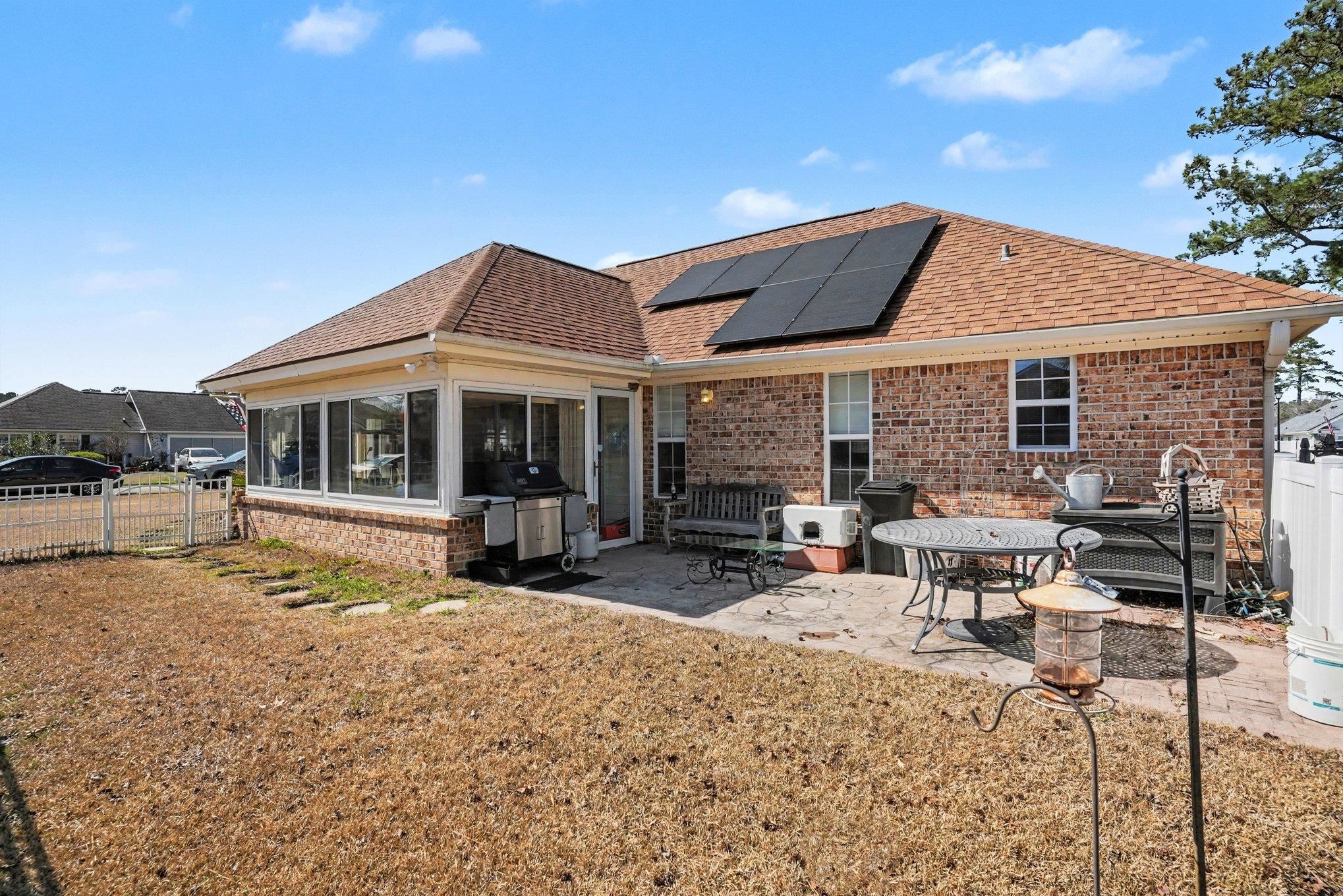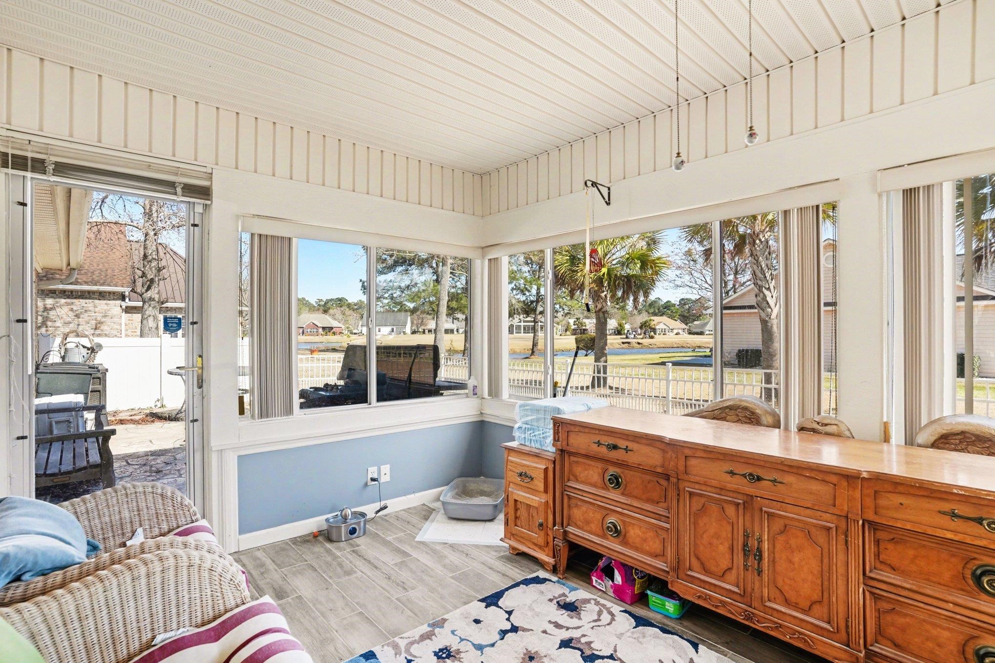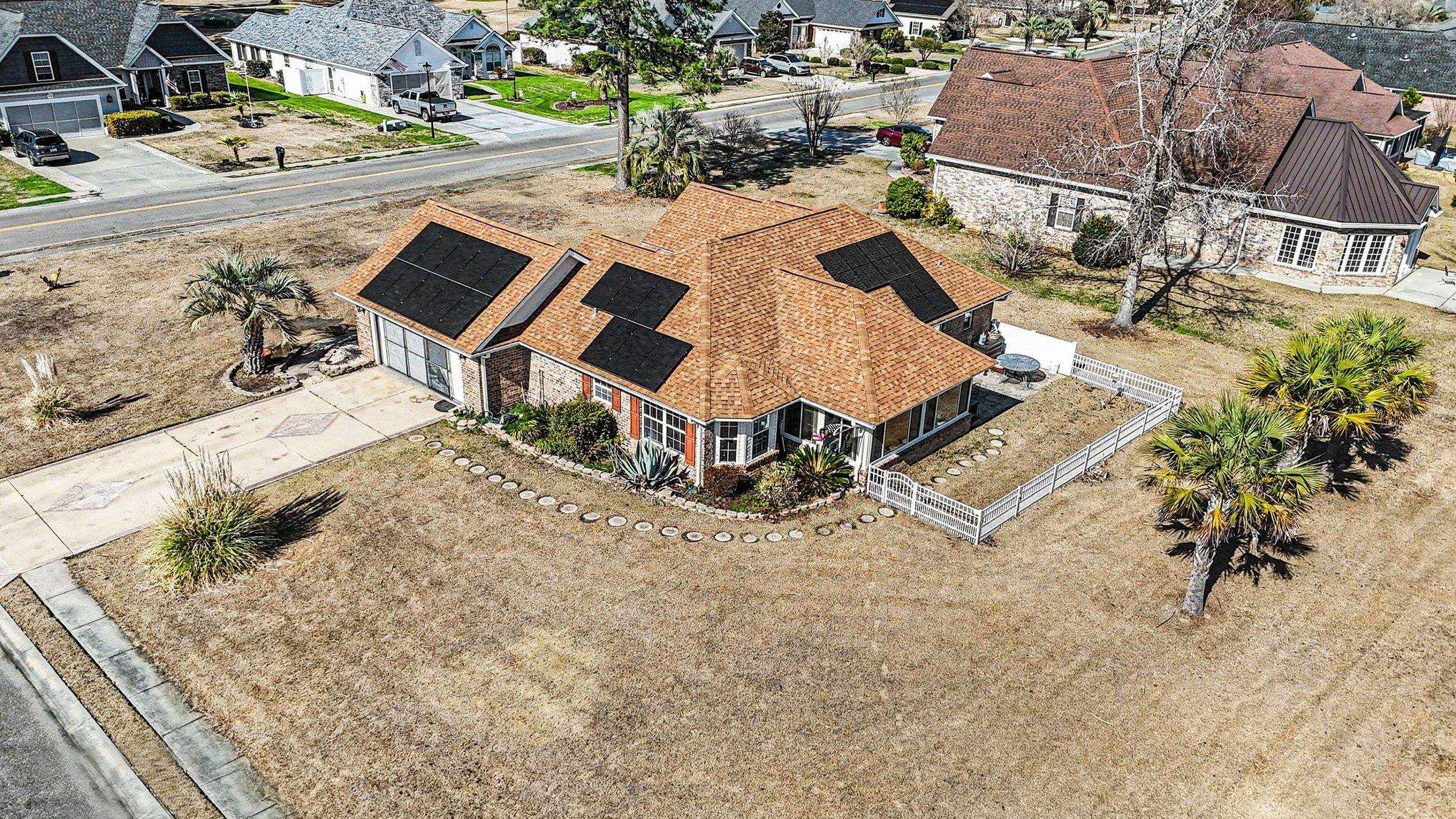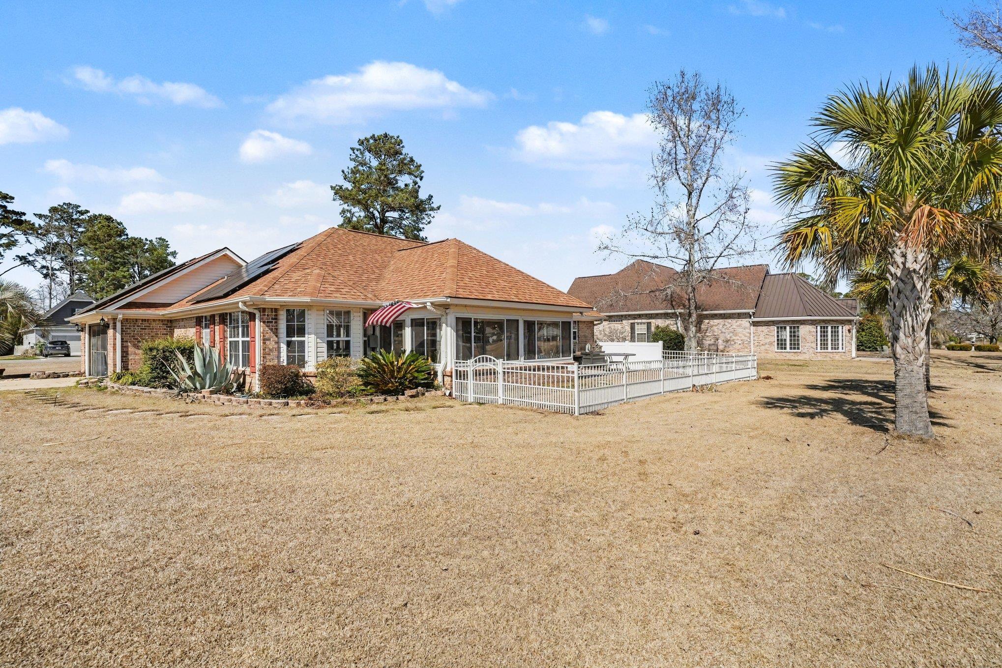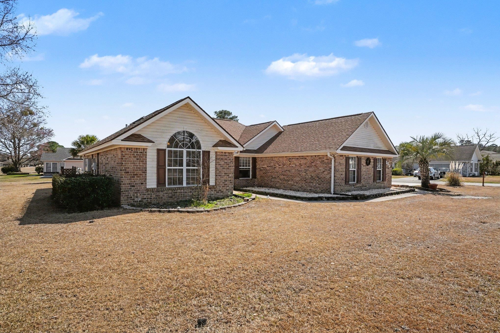 Welcome home to 552 Bucks Trl! This move-in-ready 3-bedroom, 2-bath all-brick home is beautifully positioned on an oversized corner lot overlooking the 8th tee at Aberdeen Golf Club, with peaceful lake and golf course views. Inside, you’ll find luxury vinyl plank flooring, soaring vaulted ceilings, and a formal dining room that sets the tone for both everyday living and entertaining. The spacious living room is filled with natural light and features an impressive 14-foot ceiling for an open, airy feel. The kitchen is well-appointed with brand-new stainless steel appliances, ample cabinetry, a pantry, and a sunny breakfast area—perfect for enjoying your morning coffee. The primary suite offers a tray ceiling, ceiling fan, walk-in closet, and a private bath with a walk-in shower. Two additional generously sized bedrooms, a full guest bath, and a conditioned Carolina room complete the interior living space. Step outside to the rear patio and take in tranquil views of the lake and golf course, creating a relaxing outdoor retreat. Additional highlights include: ceiling fans throughout, irrigation system & fresh curbscaping, dog-run fencing, low HOA fee (includes community pool access). Set in a quiet, well-established community, Aberdeen Golf Club features a classic 27-hole links-style course and a convenient location near Hwy 9, dining, shopping, Hwy 31, and Cherry Grove Beach—offering both serenity and accessibility.