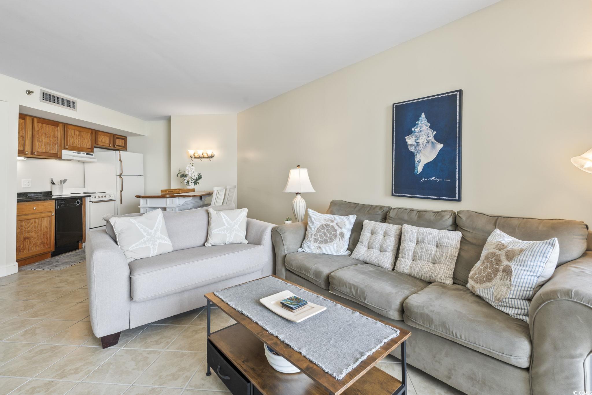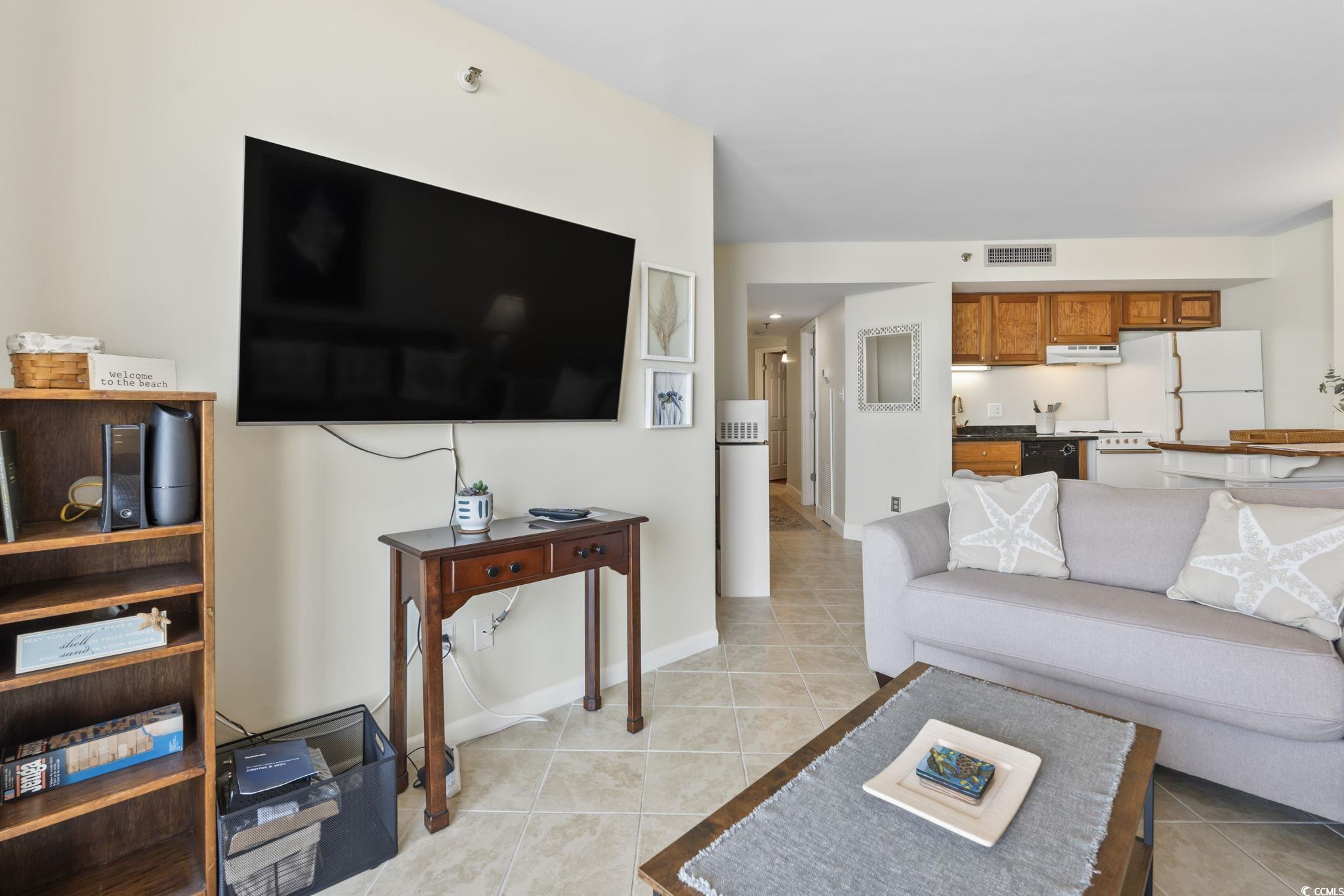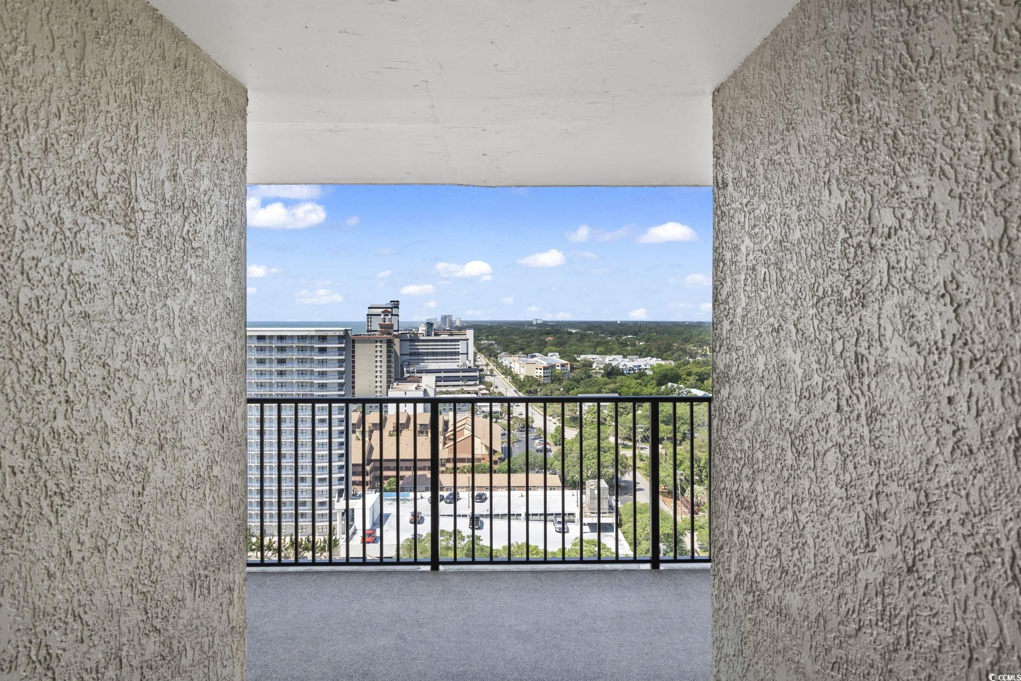 Located in the highly desirable Golden Mile, this 19th-floor side-unit condo at Ocean Forest Plaza offers stunning ocean and landscape views along with the perfect mix of comfort, style, and convenience—True turnkey coastal living. This move-in ready condo features tile flooring in the main living areas and luxury vinyl plank in the bedroom, blending elegance with durability. The fully equipped kitchen includes a movable island for added versatility, and the entire unit has been freshly painted for a bright, welcoming atmosphere. New A/C unit, installed in August 2024, provides year-round comfort and peace of mind. Residents enjoy a full range of resort-style amenities, including indoor and outdoor pools, a jacuzzi, sauna, fitness center, and private owner-only areas. Owners are allowed pets, making it ideal for those who want to bring their furry companions. Whether as a primary residence, vacation retreat, or investment property, this condo truly checks every box. Perfectly positioned in Myrtle Beach, you’re just minutes from championship golf, entertainment, ocean piers, dining, shopping, and everyday conveniences like grocery stores, banks, and medical centers.