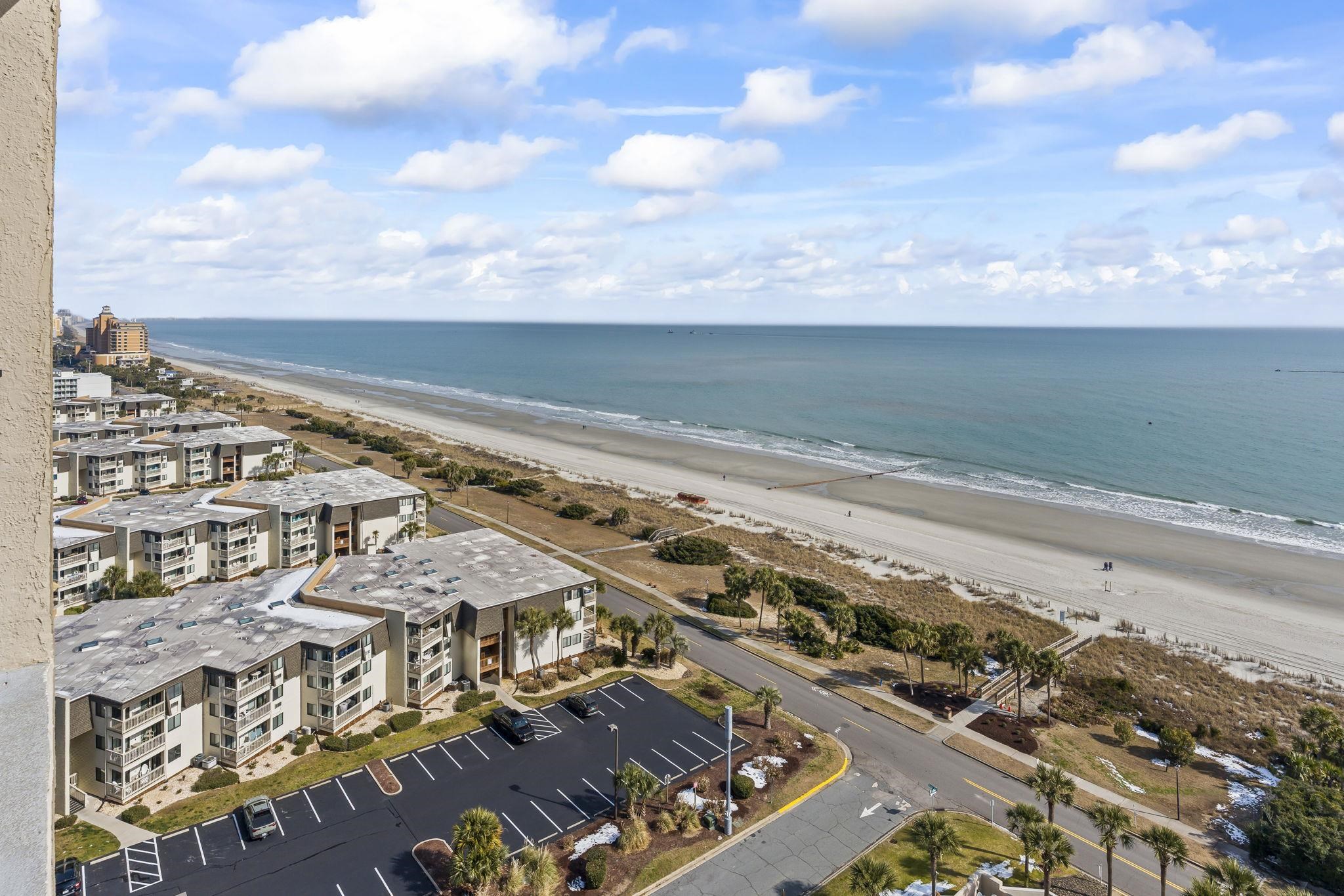 Golden Mile oceanfront 1-bedroom condo located in one of Myrtle Beach’s most desirable areas. Positioned on the 17th floor, this unit offers sweeping ocean views from the private balcony—ideal for enjoying sunrises and ocean breezes. The interior features a bright, open living area with fresh paint and new carpet, complemented by tile flooring in the kitchen and entry. The kitchen offers updated cabinets, a full appliance package, and a practical layout for everyday living or rental use. The bathroom includes a brand-new vanity with ample storage and a tub/shower combination. Offered unfurnished, this condo provides a blank canvas for personalization or investment. Short-term and long-term rentals are permitted. Resort-style amenities include an indoor pool, hot tub, outdoor pool, and sauna. Additional owner benefits include an owners-only laundry room and private owners lounge. Owners only are allowed pets, motorcycles, and golf carts. Prime oceanfront living on the iconic Golden Mile—perfect as a primary residence, vacation retreat, or income-producing opportunity.